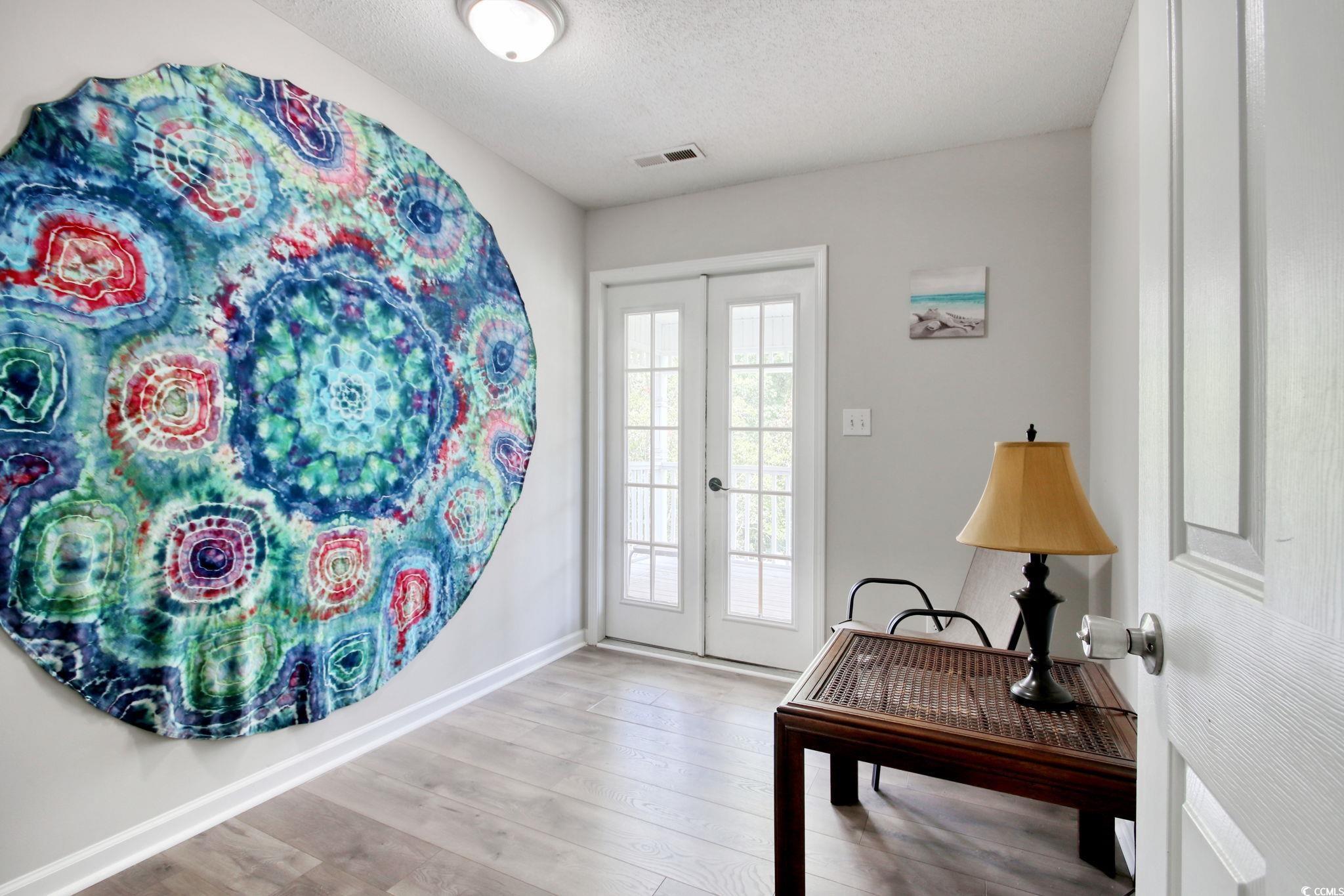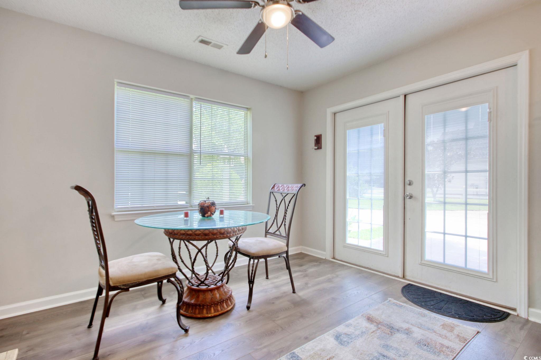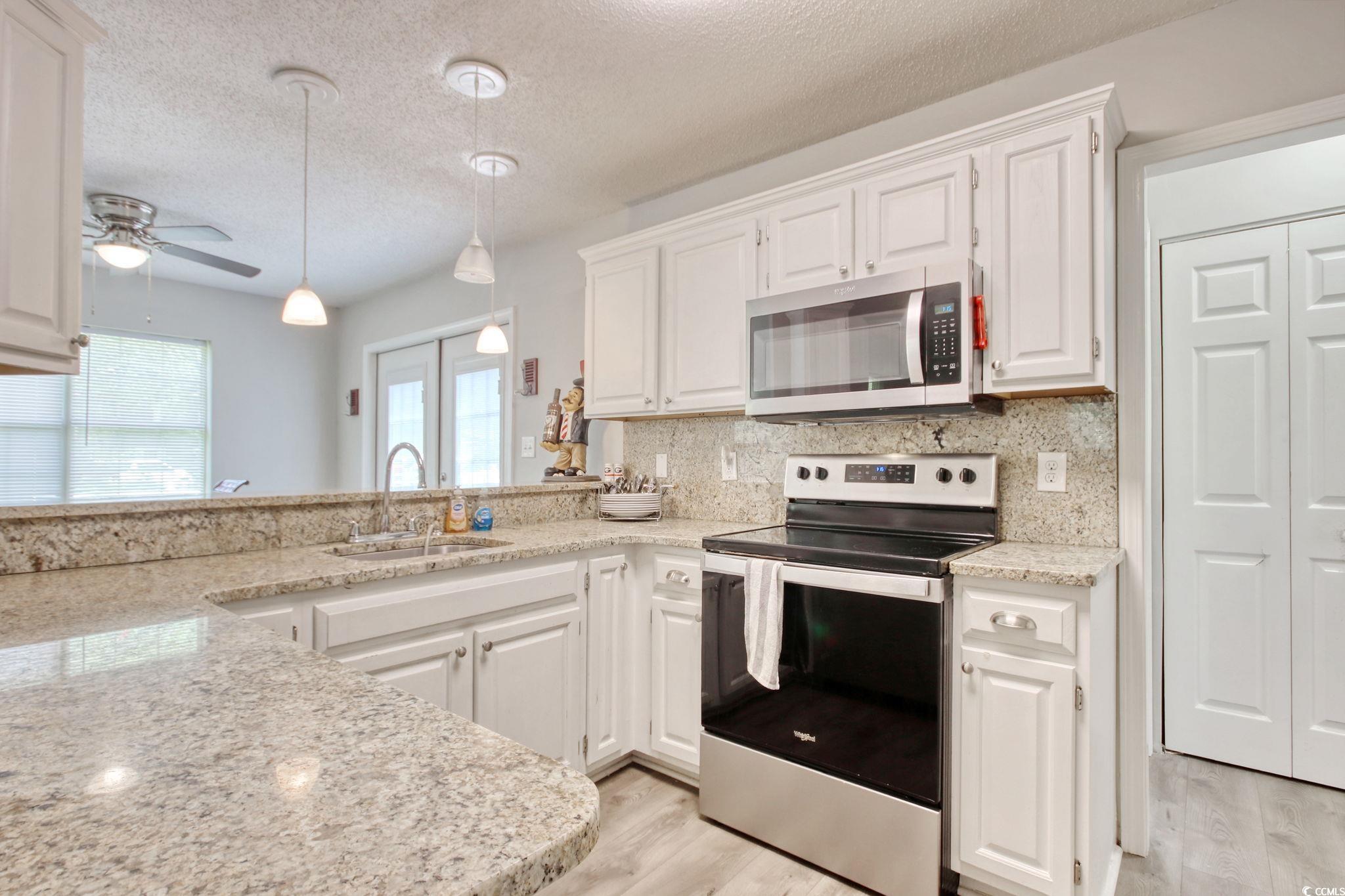 Welcome to the Farmington community, ideally located near Arrowhead Golf Course just off Burcale Road. This neighborhood offers convenient access to Coastal Grand Mall, Tanger Outlets, and is only a short drive from the beach. This charming 3-bedroom, 2-bathroom two-story home features beautiful flooring throughout, stainless steel appliances, stylish tile showers, and ample closet space. You'll find two bedrooms upstairs and one on the main floor, offering flexible living options. Situated on a desirable corner lot, the home also includes a detached two-car garage with overhead storage, a welcoming front porch, a spacious driveway, and an upstairs balcony overlooking the front yard.