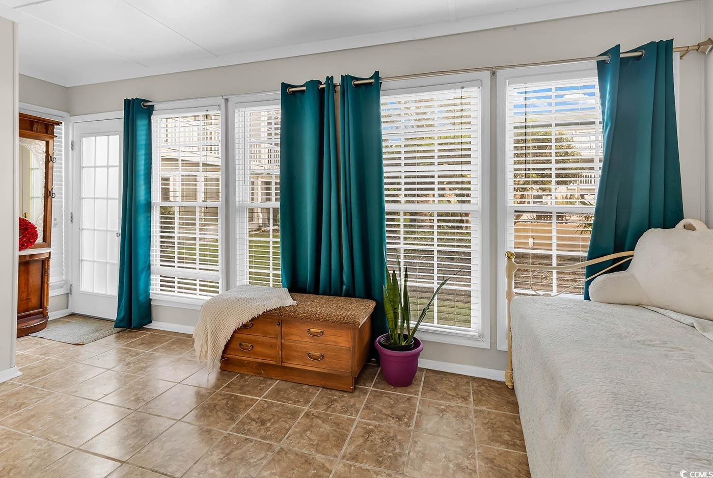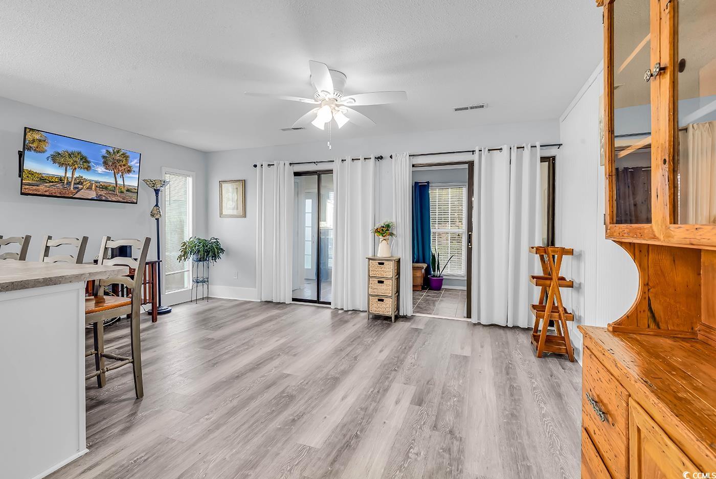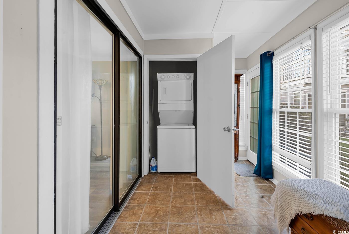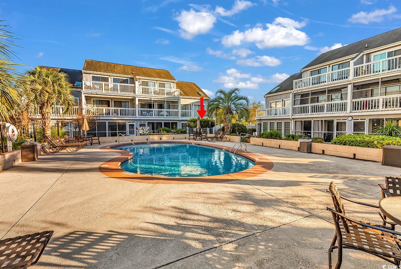 This is THE ONE!! FIRST-FLOOR END UNIT! Just steps from your back door to the pool—this beautifully updated 1-bedroom, 1.5-bath condo offers comfort, convenience, and coastal charm. The enclosed 4-season sun room provides tons of light and comfort for use as an extra room all year long overlooking beautiful landscaping and the pool. The spacious bedroom features a large closet, and three additional hall closets provide extra storage. As an end unit, the home is filled with natural light from extra windows. Recent updates include luxury vinyl plank flooring throughout, 6-inch baseboards, and beadboard accents on the kitchen island and living-room wall with added sound-reducing insulation. The remodeled full bath features a large walk-in shower, new vanity, lighting, and comfort-height toilet. The half bath for your guests has been updated as well with new lighting, mirrors, toilet and vanity. The kitchen shines with stainless steel appliances including refrigerator that conveys, new cabinets, tile backsplash, and countertops. A very generous sized pantry provides even more space for your kitchen items. A large closet off the four-season room includes a full size stackable washer and dryer that also convey. Great location near Hwy 9, 17, 31, and 90, you’ll be less than five miles from North Myrtle restaurants & shopping and Cherry Grove Beaches and across from McLeod Hospital and other medical facilities. Included furnishings: Vizio 50" TV, three barstools, kitchen appliances including Stainless Refrigerator, stackable washer and dryer and all window treatments. LOW HOA includes exterior insurance, internet/cable TV, water & sewar, trash, pest control and indoor and outdoor pool maintenance.—just bring your suitcase and start living the beach life. Ideal for full time first floor living, as a vacation home or an investment property. Home has been virtually staged.