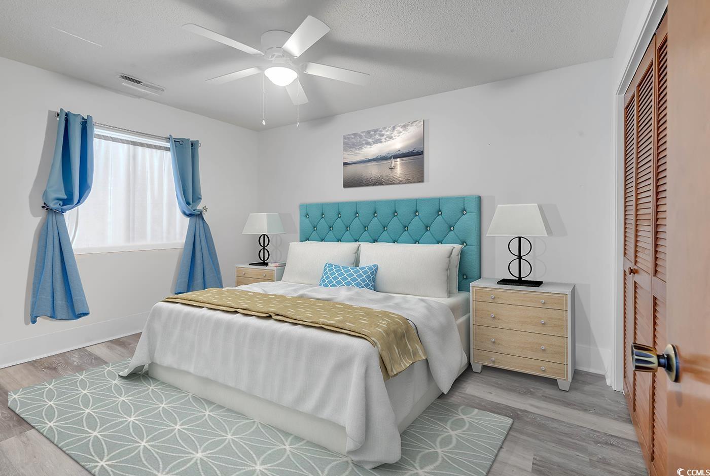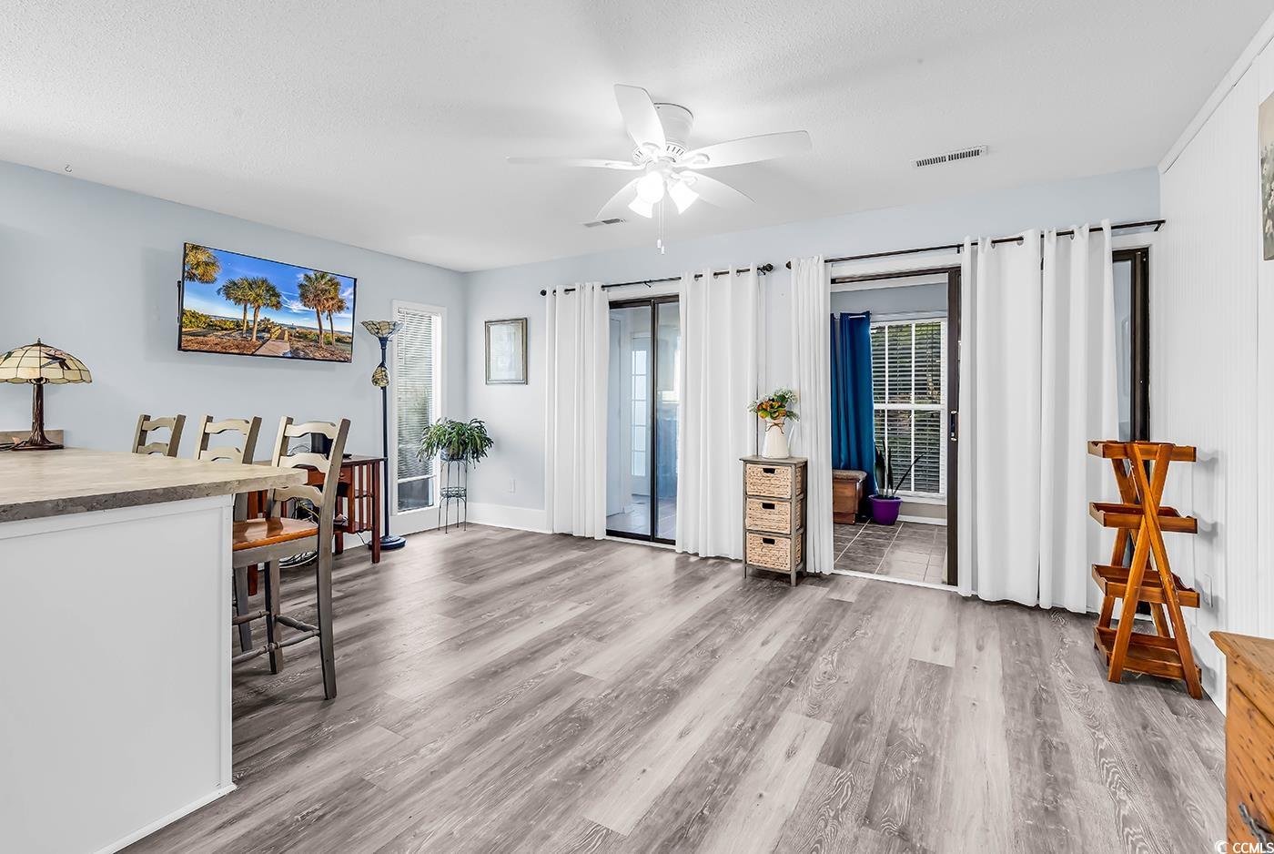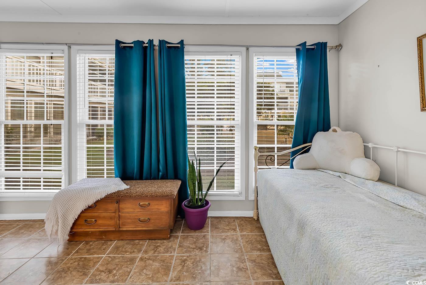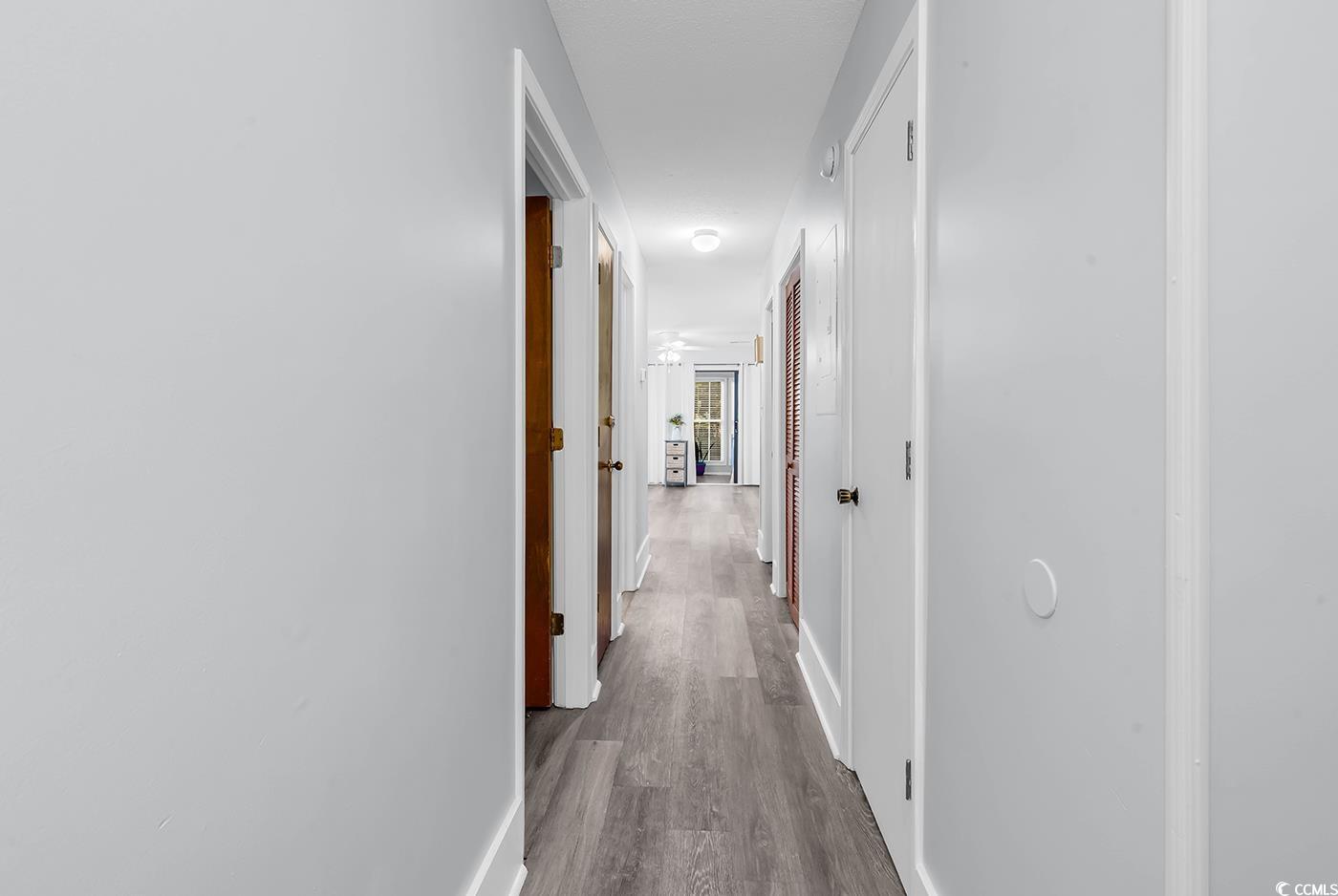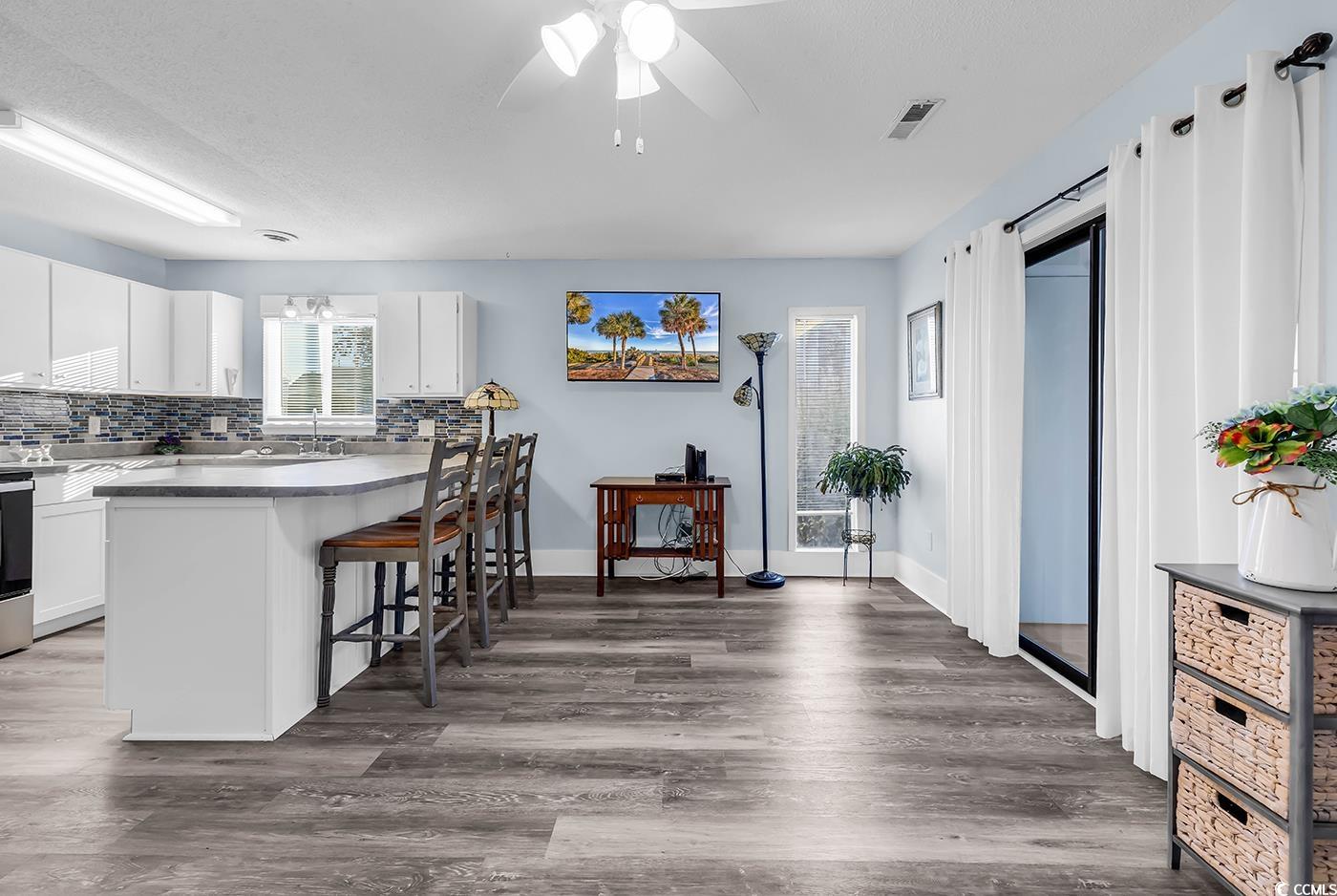 This is THE ONE!! FIRST-FLOOR END UNIT! Just steps from your back door to the pool—this beautifully updated 1-bedroom, 1.5-bath condo offers comfort, convenience, and coastal charm. The enclosed 4-season sun room provides tons of light and comfort for use as an extra room all year long overlooking beautiful landscaping and the pool. The spacious bedroom features a large closet, and three additional hall closets provide extra storage. As an end unit, the home is filled with natural light from extra windows. Recent updates include luxury vinyl plank flooring throughout, 6-inch baseboards, and beadboard accents on the kitchen island and living-room wall with added sound-reducing insulation. The remodeled full bath features a large walk-in shower, new vanity, lighting, and comfort-height toilet. The half bath for your guests has been updated as well with new lighting, mirrors, toilet and vanity. The kitchen shines with stainless steel appliances including refrigerator that conveys, new cabinets, tile backsplash, and countertops. A very generous sized pantry provides even more space for your kitchen items. A large closet off the four-season room includes a full size stackable washer and dryer that also convey. Great location near Hwy 9, 17, 31, and 90, you’ll be less than five miles from North Myrtle restaurants & shopping and Cherry Grove Beaches and across from McLeod Hospital and other medical facilities. Included furnishings: Vizio 50" TV, three barstools, kitchen appliances including Stainless Refrigerator, stackable washer and dryer and all window treatments. LOW HOA includes exterior insurance, internet/cable TV, water & sewar, trash, pest control and indoor and outdoor pool maintenance.—just bring your suitcase and start living the beach life. Ideal for full time first floor living, as a vacation home or an investment property. Home has been virtually staged.