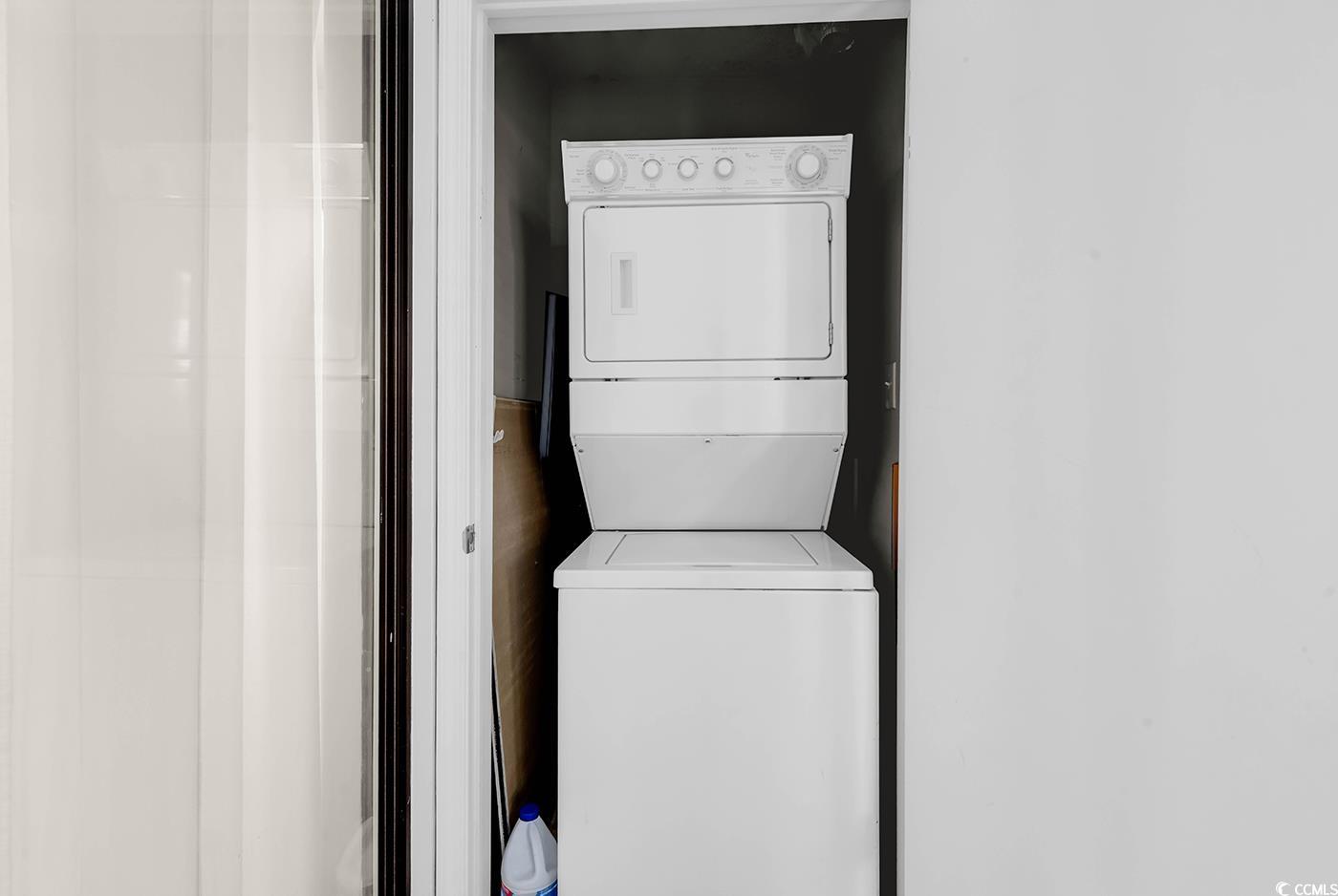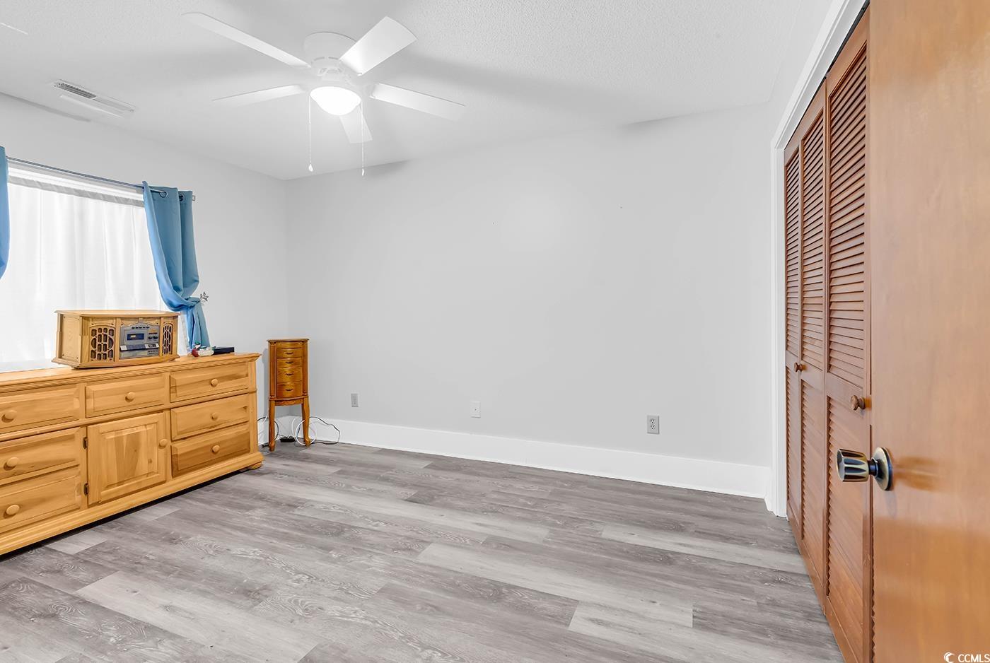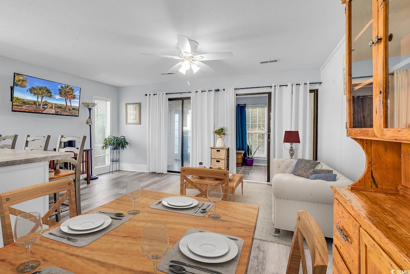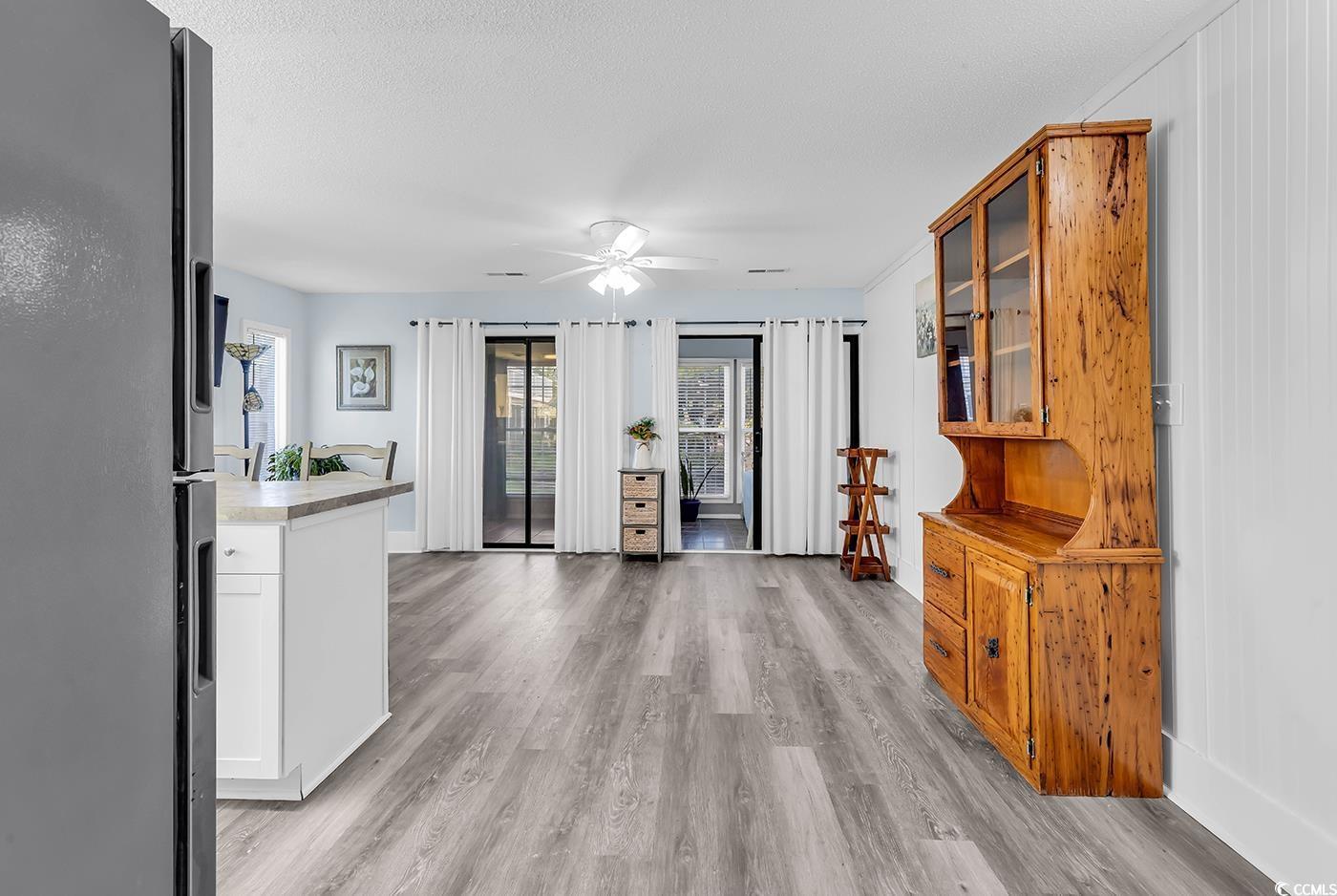 This is THE ONE!! FIRST-FLOOR END UNIT! Just steps from your back door to the pool—this beautifully updated 1-bedroom, 1.5-bath condo offers comfort, convenience, and coastal charm. The enclosed 4-season sun room provides tons of light and comfort for use as an extra room all year long overlooking beautiful landscaping and the pool. The spacious bedroom features a large closet, and three additional hall closets provide extra storage. As an end unit, the home is filled with natural light from extra windows. Recent updates include luxury vinyl plank flooring throughout, 6-inch baseboards, and beadboard accents on the kitchen island and living-room wall with added sound-reducing insulation. The remodeled full bath features a large walk-in shower, new vanity, lighting, and comfort-height toilet. The half bath for your guests has been updated as well with new lighting, mirrors, toilet and vanity. The kitchen shines with stainless steel appliances including refrigerator that conveys, new cabinets, tile backsplash, and countertops. A very generous sized pantry provides even more space for your kitchen items. A large closet off the four-season room includes a full size stackable washer and dryer that also convey. Great location near Hwy 9, 17, 31, and 90, you’ll be less than five miles from North Myrtle restaurants & shopping and Cherry Grove Beaches and across from McLeod Hospital and other medical facilities. Included furnishings: Vizio 50" TV, three barstools, kitchen appliances including Stainless Refrigerator, stackable washer and dryer and all window treatments. LOW HOA includes exterior insurance, internet/cable TV, water & sewar, trash, pest control and indoor and outdoor pool maintenance.—just bring your suitcase and start living the beach life. Ideal for full time first floor living, as a vacation home or an investment property. Home has been virtually staged.