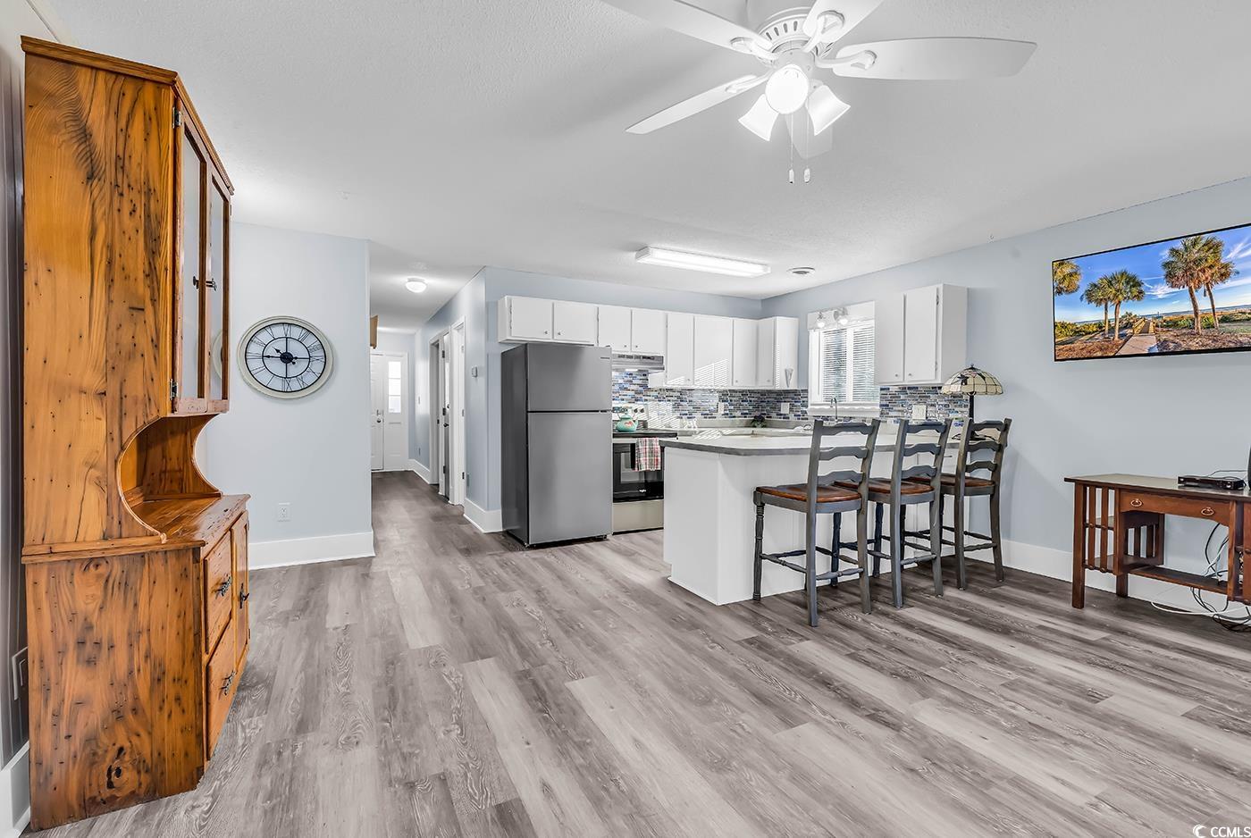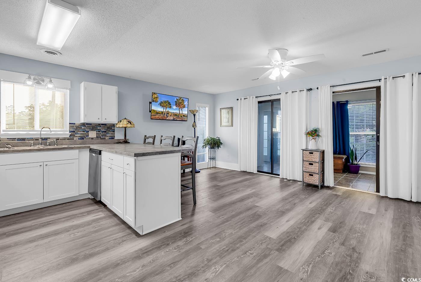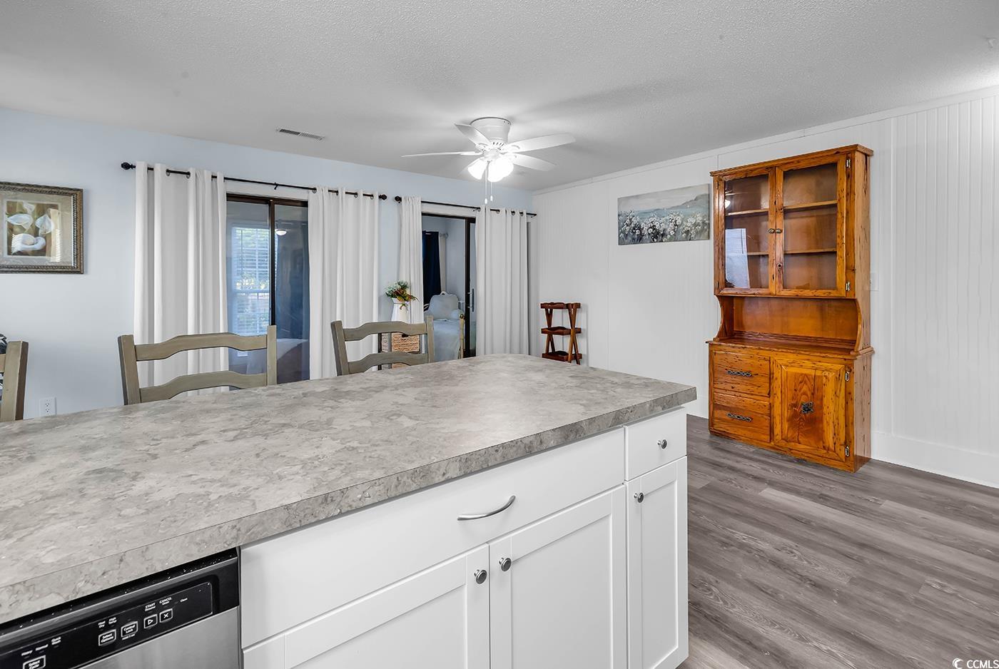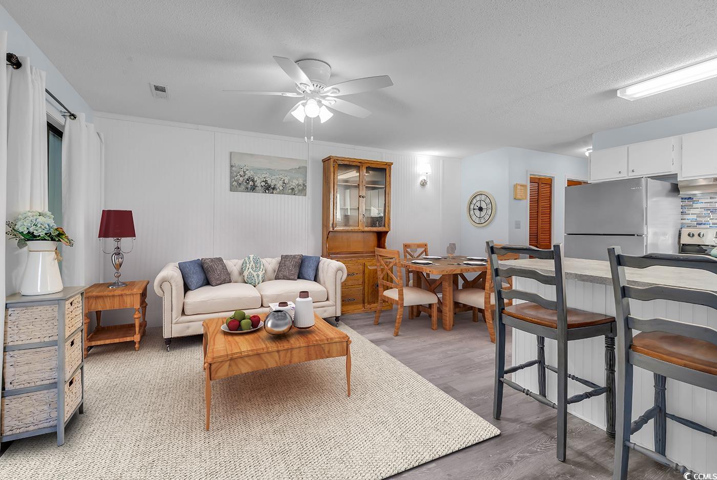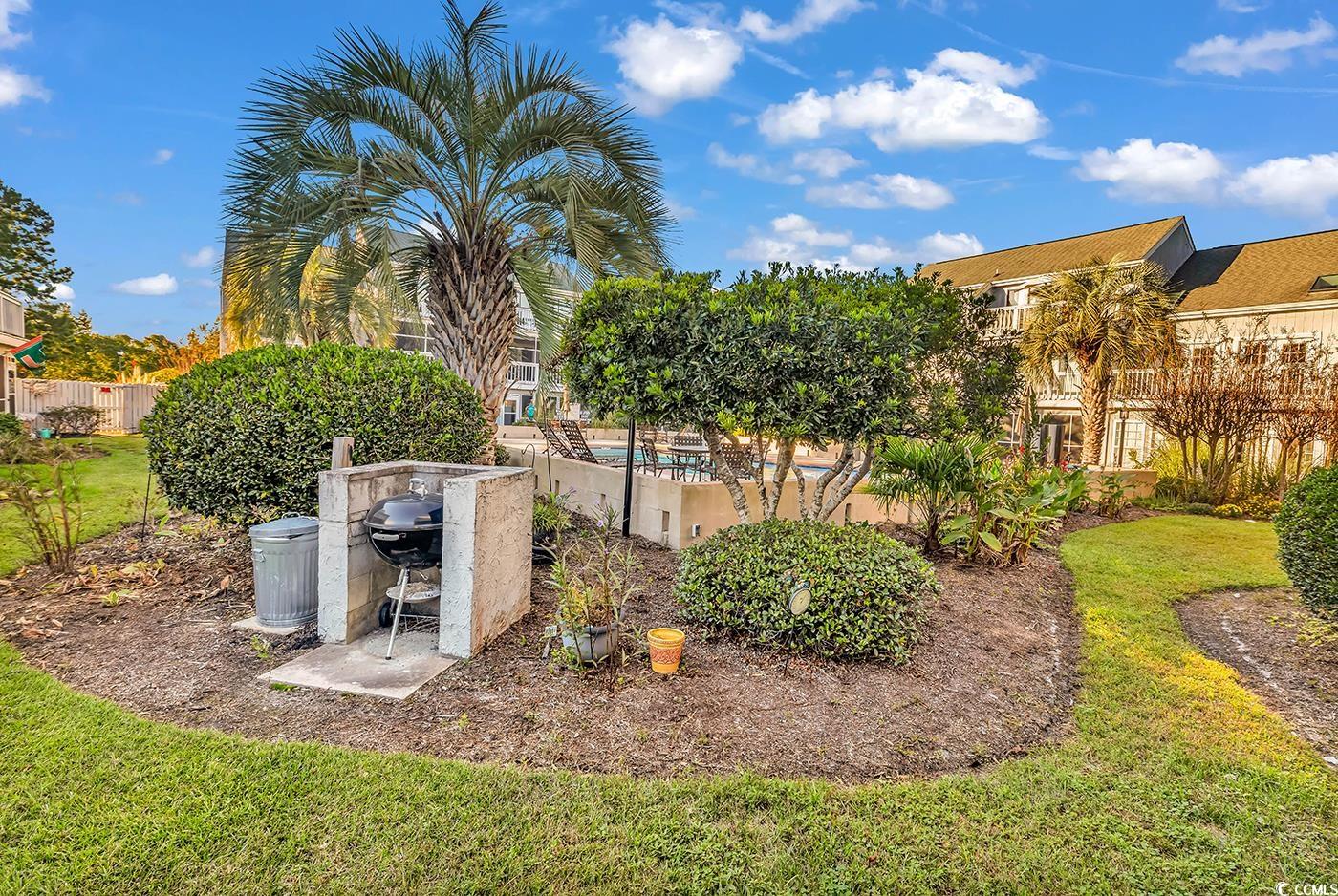 This is THE ONE!! FIRST-FLOOR END UNIT! Just steps from your back door to the pool—this beautifully updated 1-bedroom, 1.5-bath condo offers comfort, convenience, and coastal charm. The enclosed 4-season sun room provides tons of light and comfort for use as an extra room all year long overlooking beautiful landscaping and the pool. The spacious bedroom features a large closet, and three additional hall closets provide extra storage. As an end unit, the home is filled with natural light from extra windows. Recent updates include luxury vinyl plank flooring throughout, 6-inch baseboards, and beadboard accents on the kitchen island and living-room wall with added sound-reducing insulation. The remodeled full bath features a large walk-in shower, new vanity, lighting, and comfort-height toilet. The half bath for your guests has been updated as well with new lighting, mirrors, toilet and vanity. The kitchen shines with stainless steel appliances including refrigerator that conveys, new cabinets, tile backsplash, and countertops. A very generous sized pantry provides even more space for your kitchen items. A large closet off the four-season room includes a full size stackable washer and dryer that also convey. Great location near Hwy 9, 17, 31, and 90, you’ll be less than five miles from North Myrtle restaurants & shopping and Cherry Grove Beaches and across from McLeod Hospital and other medical facilities. Included furnishings: Vizio 50" TV, three barstools, kitchen appliances including Stainless Refrigerator, stackable washer and dryer and all window treatments. LOW HOA includes exterior insurance, internet/cable TV, water & sewar, trash, pest control and indoor and outdoor pool maintenance.—just bring your suitcase and start living the beach life. Ideal for full time first floor living, as a vacation home or an investment property. Home has been virtually staged.