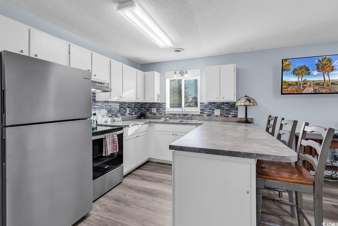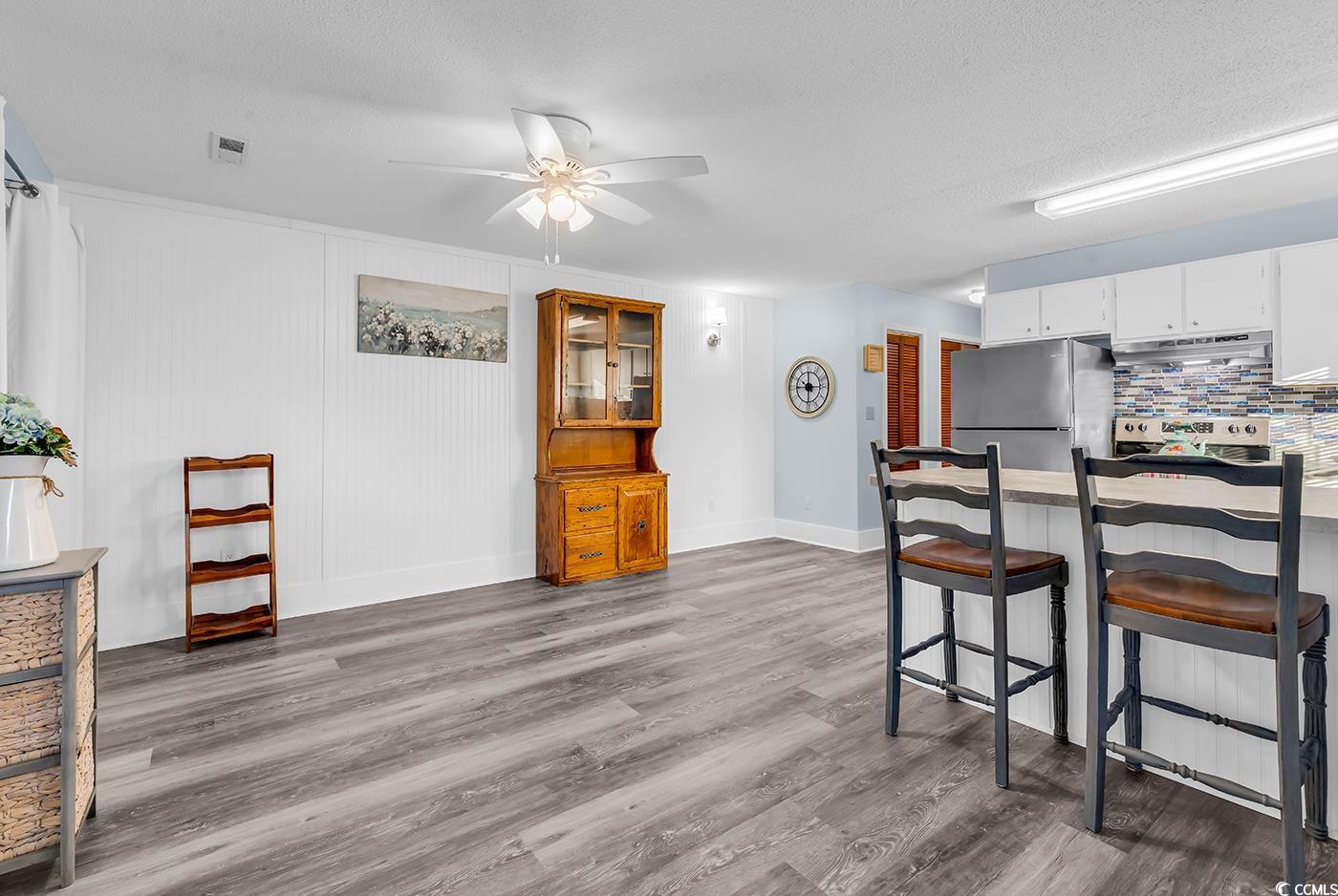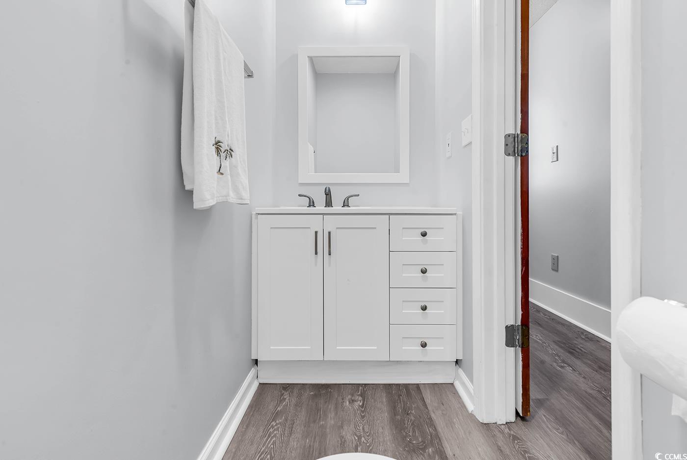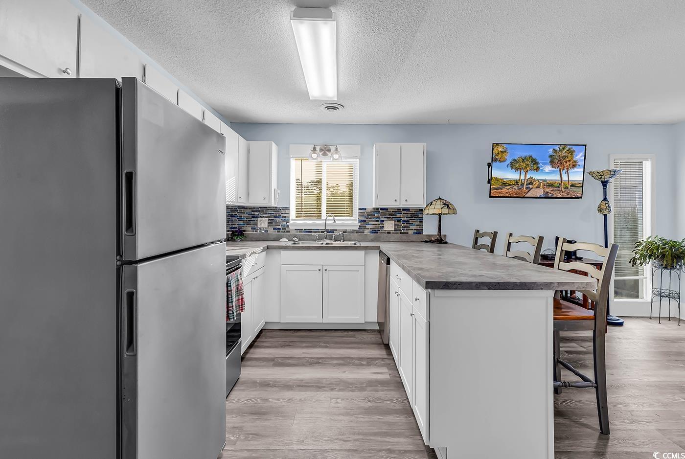 This is THE ONE!! FIRST-FLOOR END UNIT! Just steps from your back door to the pool—this beautifully updated 1-bedroom, 1.5-bath condo offers comfort, convenience, and coastal charm. The enclosed 4-season sun room provides tons of light and comfort for use as an extra room all year long overlooking beautiful landscaping and the pool. The spacious bedroom features a large closet, and three additional hall closets provide extra storage. As an end unit, the home is filled with natural light from extra windows. Recent updates include luxury vinyl plank flooring throughout, 6-inch baseboards, and beadboard accents on the kitchen island and living-room wall with added sound-reducing insulation. The remodeled full bath features a large walk-in shower, new vanity, lighting, and comfort-height toilet. The half bath for your guests has been updated as well with new lighting, mirrors, toilet and vanity. The kitchen shines with stainless steel appliances including refrigerator that conveys, new cabinets, tile backsplash, and countertops. A very generous sized pantry provides even more space for your kitchen items. A large closet off the four-season room includes a full size stackable washer and dryer that also convey. Great location near Hwy 9, 17, 31, and 90, you’ll be less than five miles from North Myrtle restaurants & shopping and Cherry Grove Beaches and across from McLeod Hospital and other medical facilities. Included furnishings: Vizio 50" TV, three barstools, kitchen appliances including Stainless Refrigerator, stackable washer and dryer and all window treatments. LOW HOA includes exterior insurance, internet/cable TV, water & sewar, trash, pest control and indoor and outdoor pool maintenance.—just bring your suitcase and start living the beach life. Ideal for full time first floor living, as a vacation home or an investment property. Home has been virtually staged.