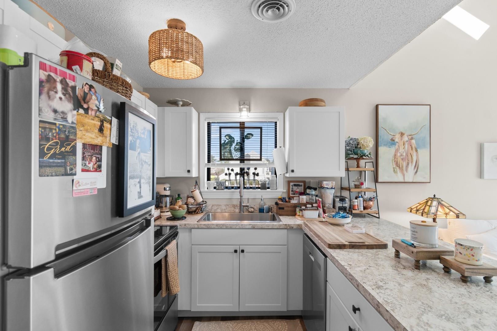If you've been looking for a place that feels both stylish and easy to live in, this 2-bedroom, 2-bath condo might be exactly what you've been waiting for. Step inside and you're immediately welcomed by a bright, open living room with vaulted ceilings that give the space an airy, comfortable feel--perfect for relaxing or entertaining. The home feels fresh throughout with luxury vinyl plank flooring and a clean, modern look. The updated kitchen features sleek countertops and stainless steel appliances, making it a great place to cook, gather, or enjoy your morning coffee. The main-level primary bedroom offers its own sense of retreat with a vaulted ceiling and a skylight that fills the room with natural light. Upstairs, the spacious loft bedroom provides privacy and flexibility, complete with its own full bathroom and a large walk-in closet--ideal for guests, a home office, or a second primary suite. One of the standout features is the expansive balcony overlooking the community pool, a perfect spot to unwind, entertain friends, or enjoy a peaceful evening outdoors. As a resident of Baytree Golf Colony, you'll enjoy access to both indoor and outdoor pools, adding even more value and convenience. Whether you're searching for a primary home, a second residence, or a low-maintenance coastal lifestyle, this condo truly checks all the boxes!