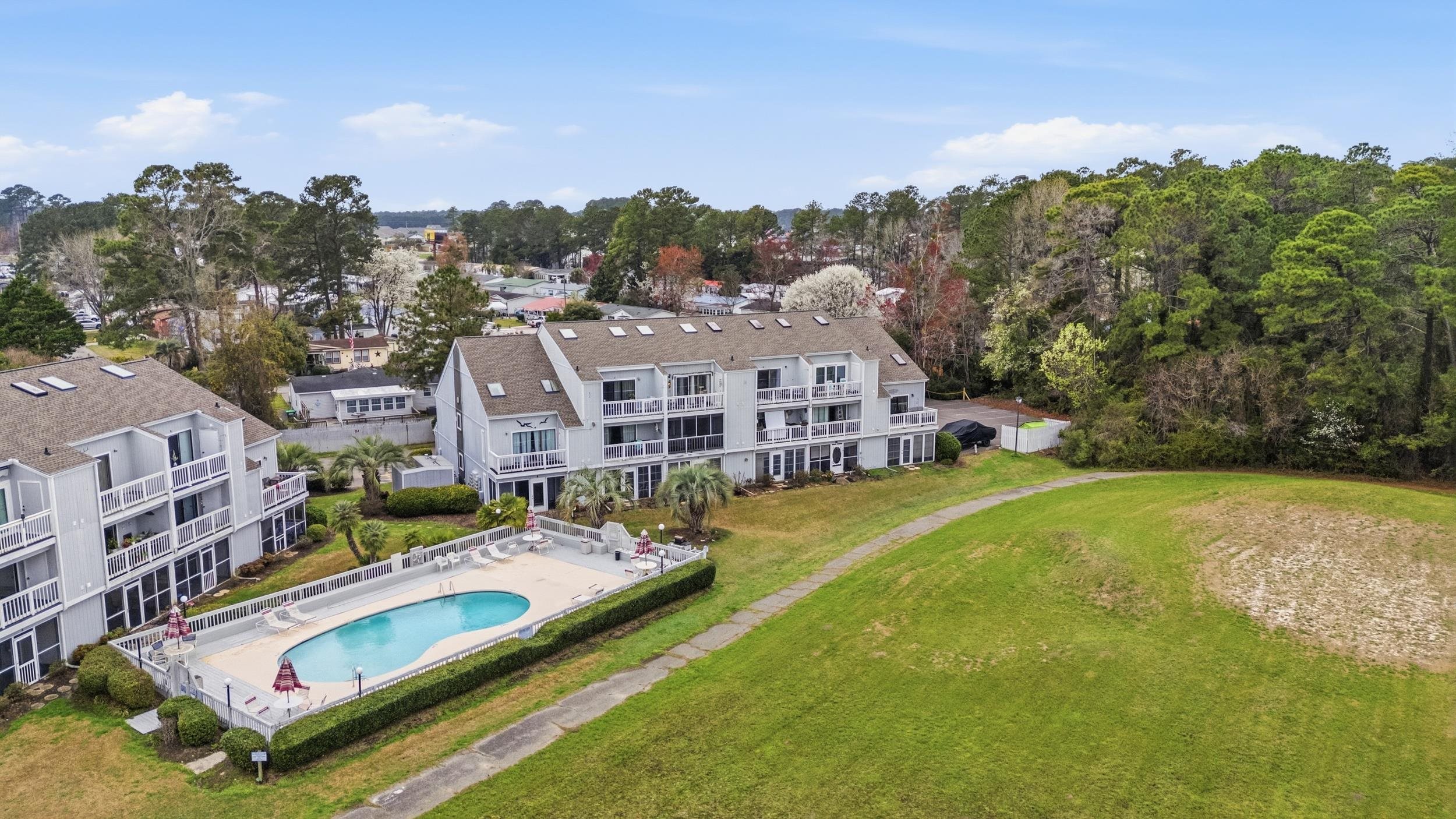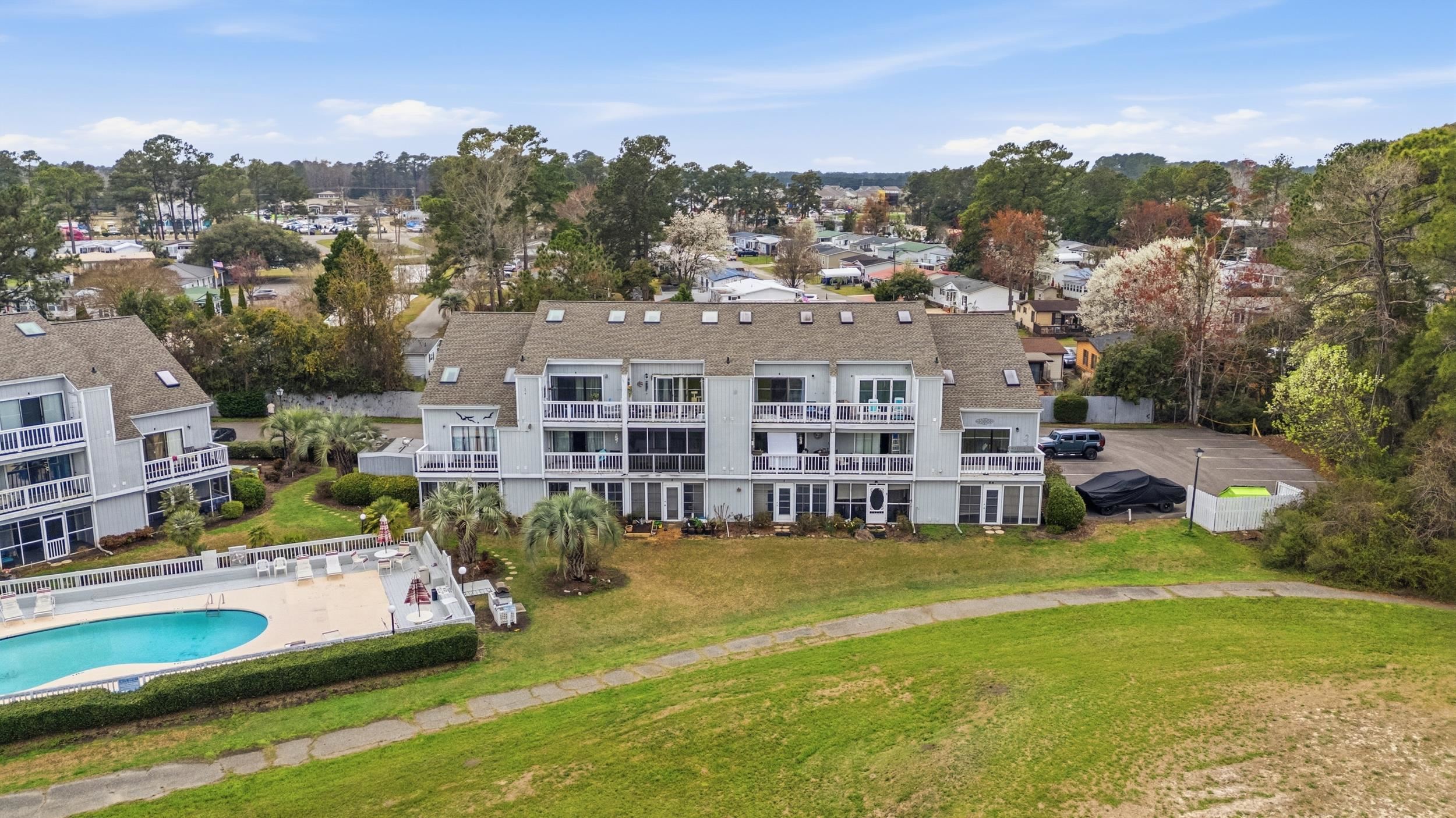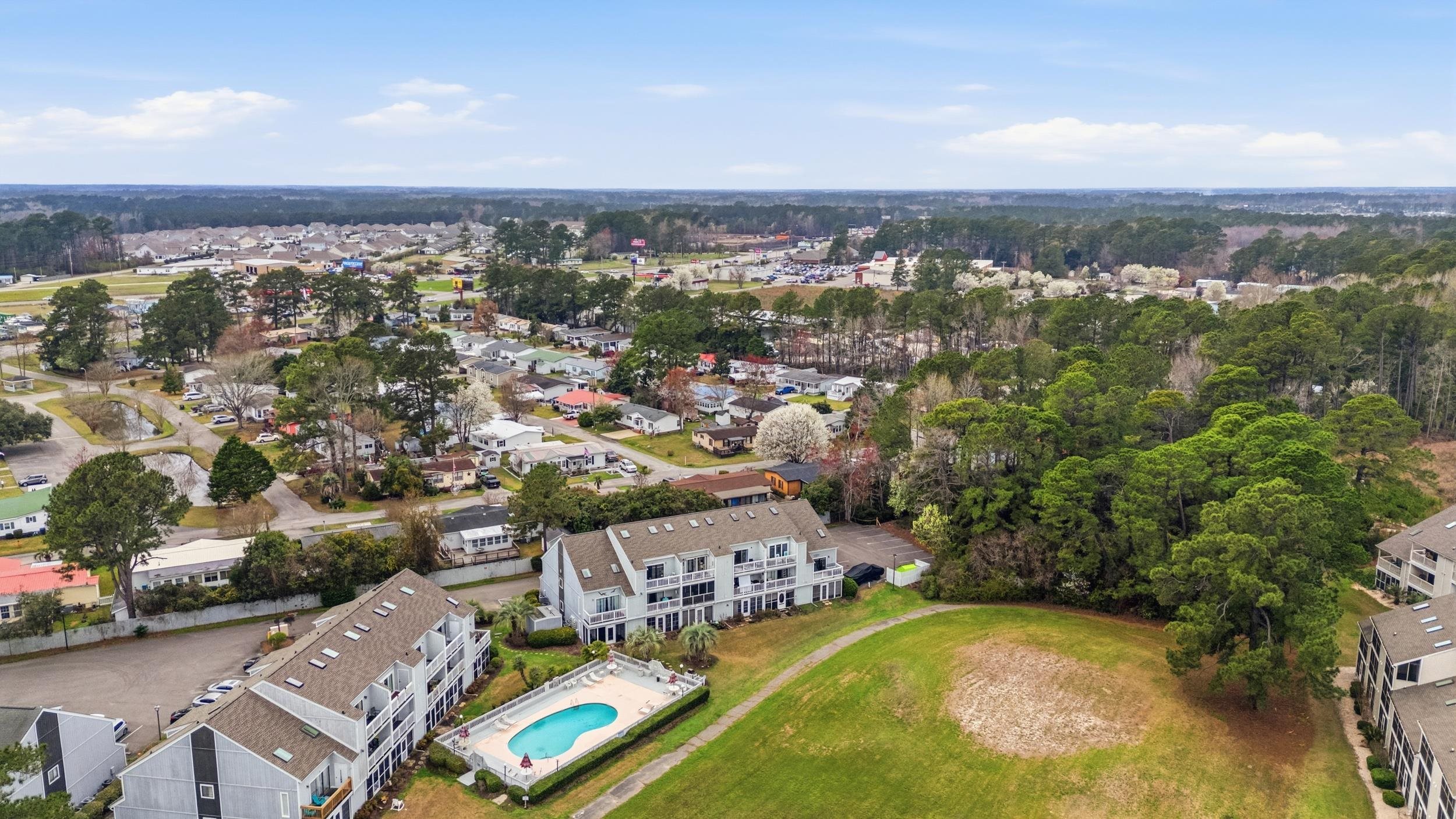 Natural light, soaring ceiling, and short-term rental potential make this Little River condo a standout opportunity for both coastal living and investment. The main living area immediately draws your attention with a vaulted ceiling and skylights, filling the space with natural light and creating an open, airy feel. The open floor plan connects the living room, dining area, and kitchen, making the space functional for everyday living, entertaining, or hosting guests. The home features luxury vinyl plank flooring throughout, offering a clean, modern look that is both durable and low maintenance. Sliding glass doors lead to a private balcony, providing a comfortable outdoor space to relax with morning coffee or unwind in the evening while enjoying views of the surrounding community. The kitchen offers generous counter space, ample cabinetry, and a layout that opens directly to the living area, allowing you to stay connected while cooking or entertaining. A spiral staircase leads to the loft, which doubles as the second bedroom, creating a distinctive architectural feature. The large closet, full bath, skylight, and high ceiling make this a perfectly flexible space that works well for guests, a home office, a hobby space, or entertainment lounge ~ there are so many options! The primary bedroom is located on the main level and provides comfortable space along with convenient access to a full bathroom. The community also features a community pool, giving owners and guests a place to relax during the warmer months. Located in Little River, South Carolina, this condo is close to Seacoast Medical Center, shopping, dining, and is just about 4 miles from Cherry Grove Beach, as well as roughly 4.5 miles from both Main Street in North Myrtle Beach and the Little River waterfront. With the opportunity for long-term or short-term rentals (3 night min), this property offers strong potential as a vacation rental, investment property, or coastal getaway while still being capable of functioning comfortably as a primary residence. Washer, Dryer, Kitchen appliances and some furnishings convey; ask for details. Roof 2025. HVAC Air Handler 2021. Water Heater 2021. Pets allowed with restrictions. Schedule your private tour TODAY! Not all bedrooms are conforming; contact agent for full bedroom details.