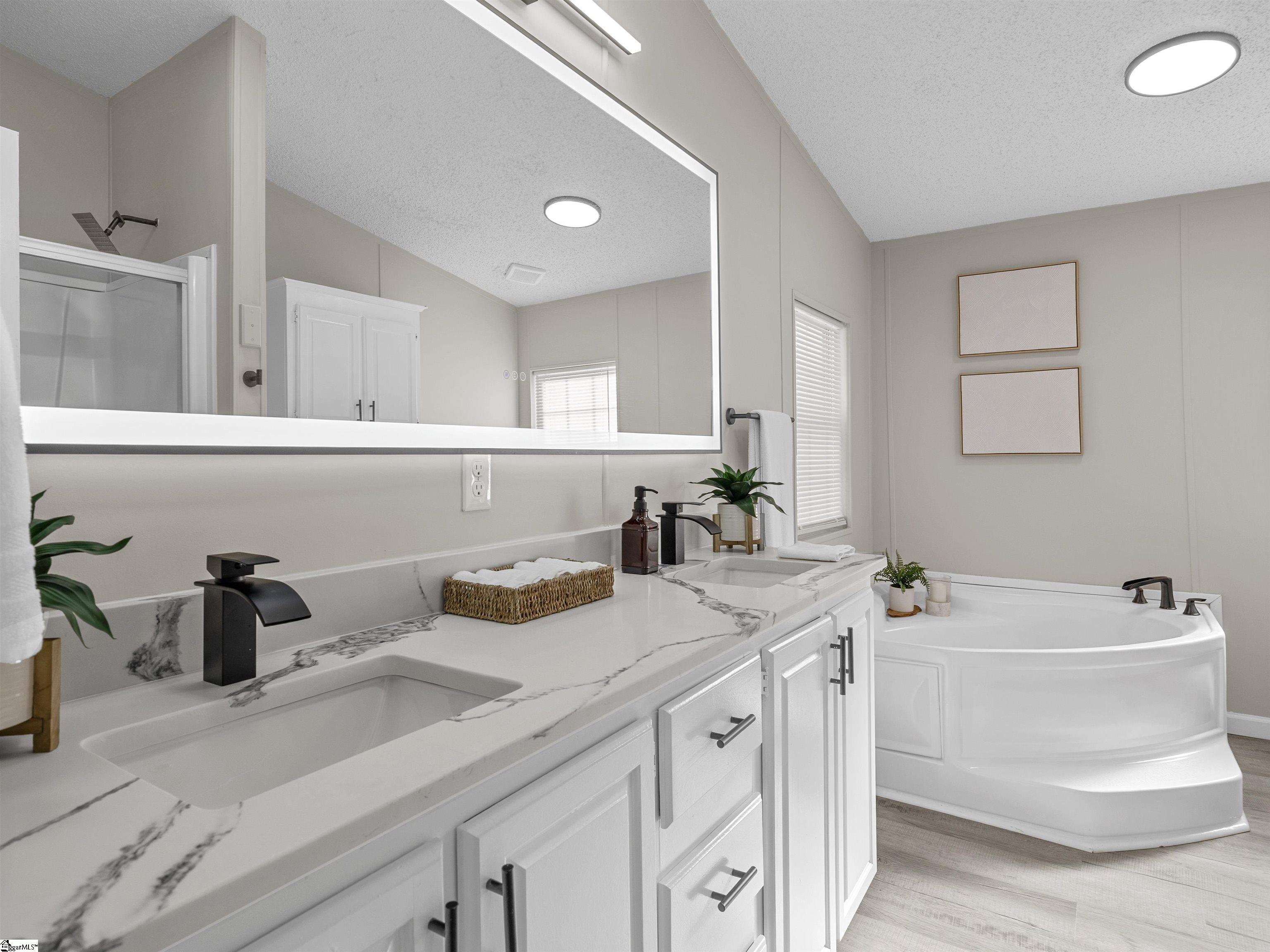 Welcome home to 371 Forest Dale Rd in Marietta, SC. This updated 3 bedroom, 2 bath double-wide sits on a quiet .75-acre lot with no HOA. Inside, you’ll find durable LVP floors throughout and a fully remodeled kitchen. The kitchen features quartz countertops, stainless steel appliances, and fresh finishes that feel clean and modern. Both bathrooms have new vanities with quartz countertops, giving the home a polished look. The primary bedroom includes custom built closet cabinetry for smart storage and easy organization. Step outside and enjoy the 16x20 deck, perfect for grilling, relaxing, or hosting friends. With plenty of space around you, this property offers privacy, freedom, and room to breathe. If you want a move-in ready home with land, updates, and no HOA, this one checks the boxes. Schedule your showing today.