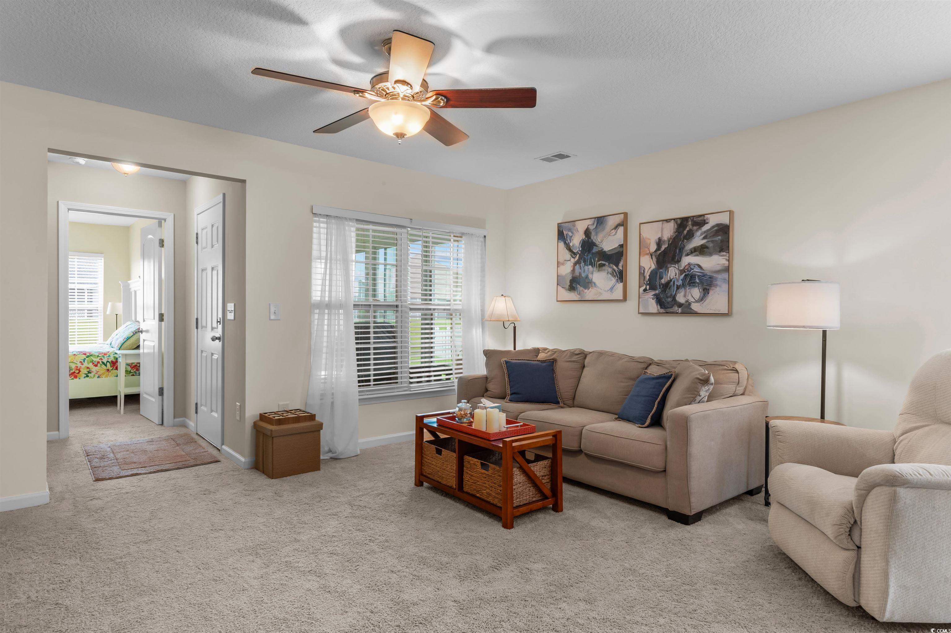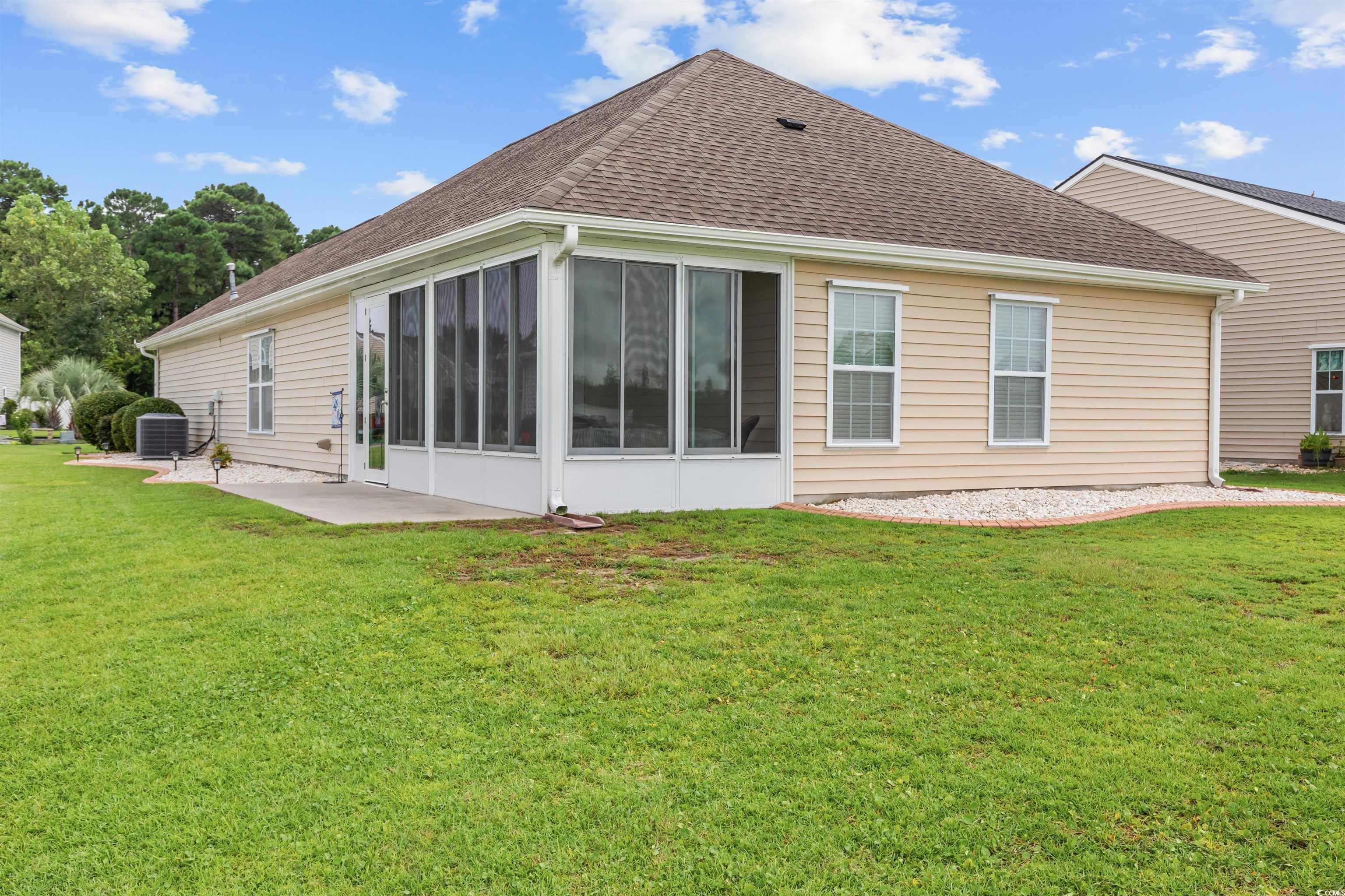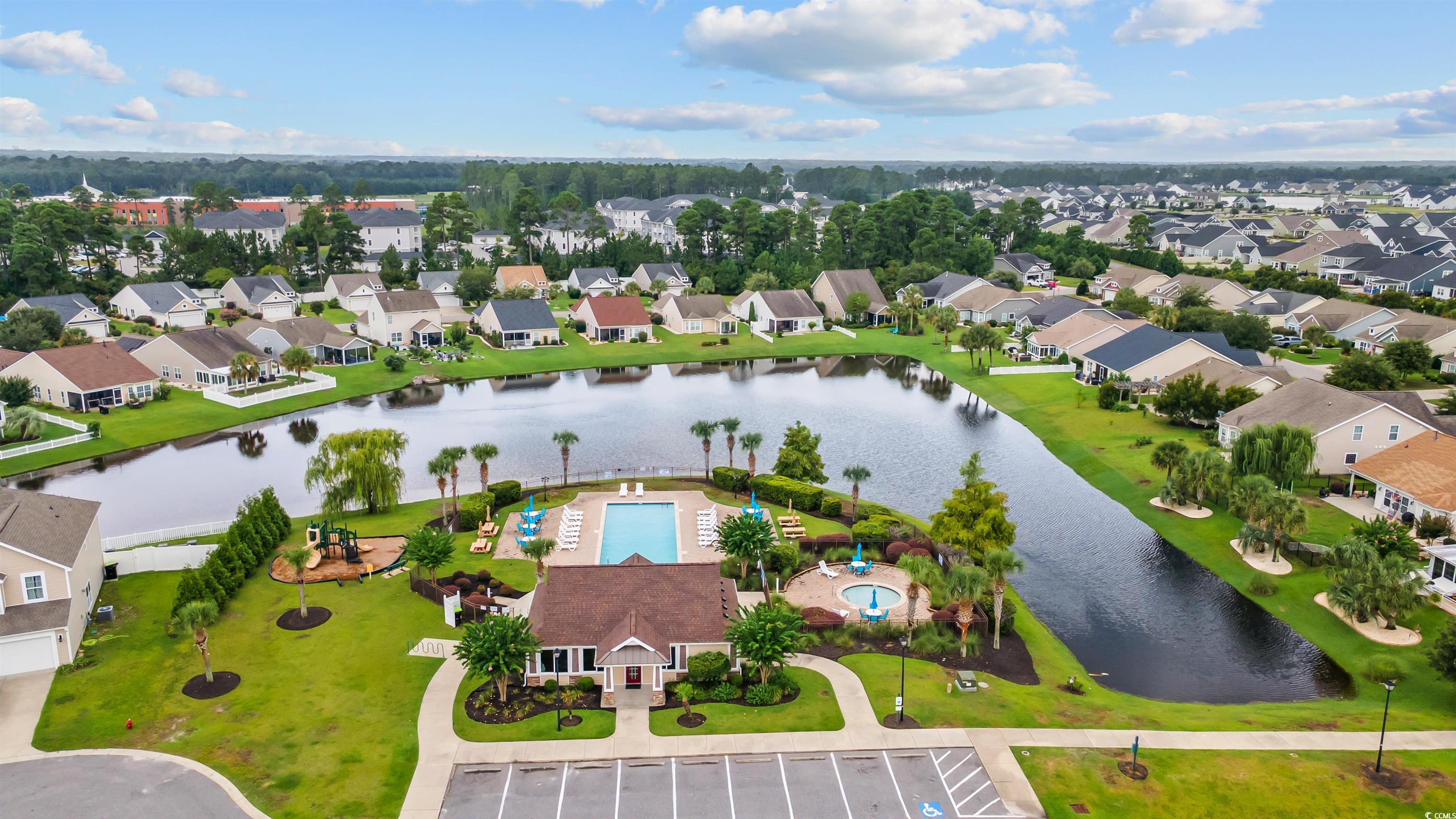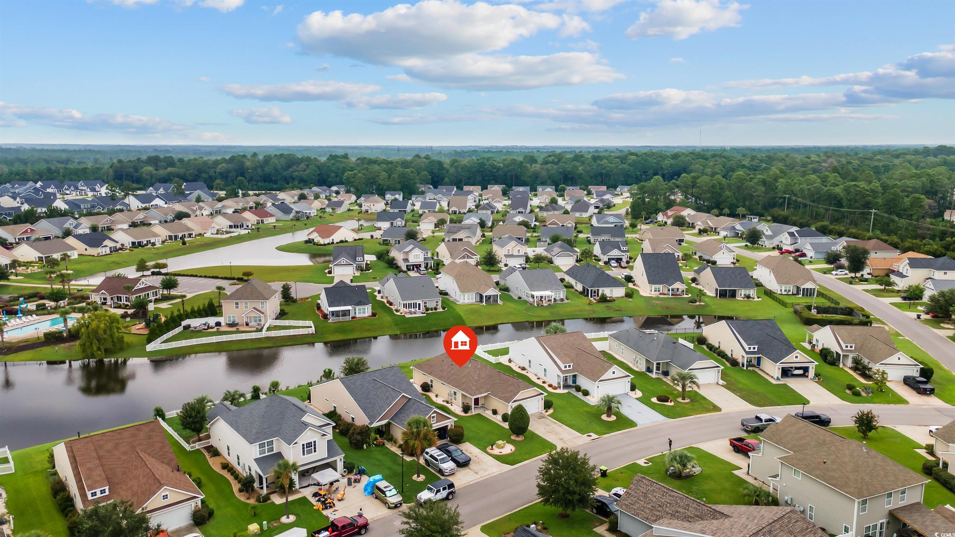 This meticulously maintained home still shows like new and has only been used a few times a year as a second residence. Featuring 3 bedrooms and 2 bathrooms, this single-story home boasts an open floor plan and sits on a beautiful pond lot with direct water views. The kitchen is a standout with an expansive 8-foot work island with bar seating, stainless steel appliances, ceiling-height cabinetry for a clean, elegant look, and tile flooring. The split-bedroom layout offers privacy, while the combined living and dining area is filled with natural light. The spacious master suite includes a large walk-in closet and an en suite bath with a walk-in shower. One of the newest features is the fully enclosed 8x19 sunroom, completed in the past year, providing the perfect spot to relax and take in the serene water views. Additional upgrades include a new architectural roof installed in 2020 and Mid-Atlantic storm shutters for extra protection. The exterior is equally impressive with mature, manicured landscaping, CurbScape edging, and an irrigation system. Located in the sought-after Carolina Forest area, Summerlyn offers fantastic community amenities including a pool, clubhouse, picnic area, and playground—all surrounded by lush palms and overlooking the scenic pond. Don’t miss this rare opportunity to own a like-new home in a prime location!