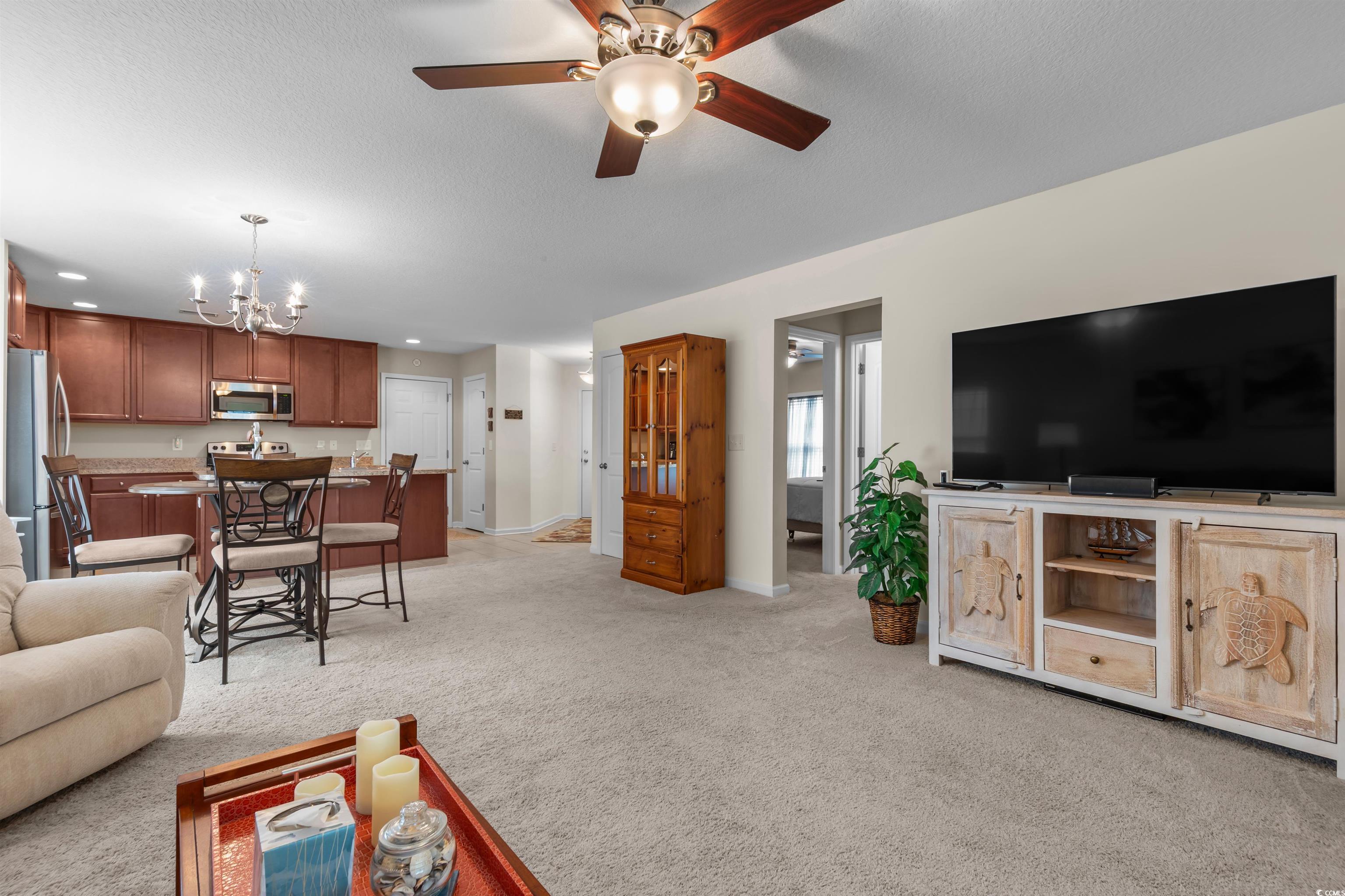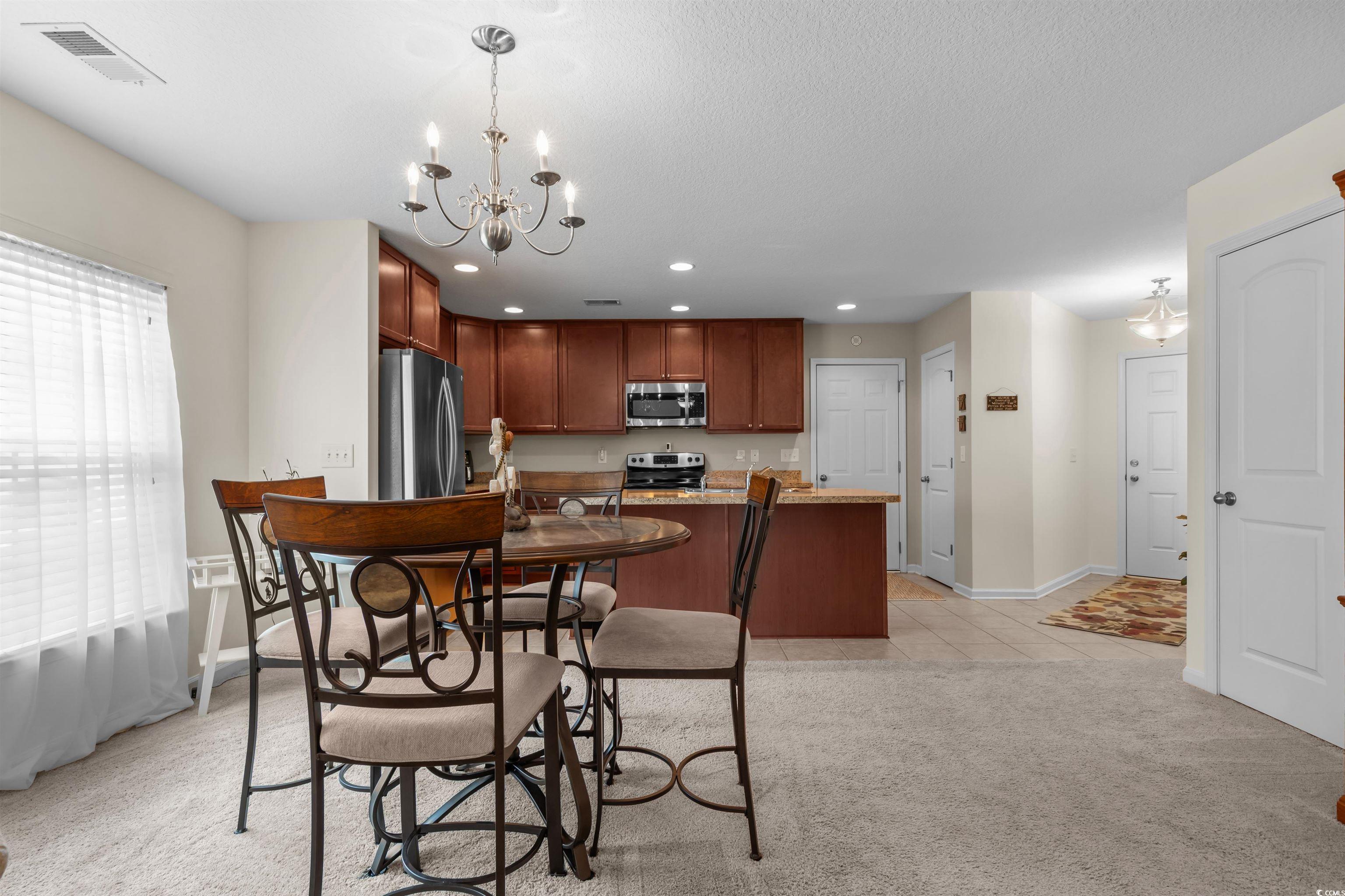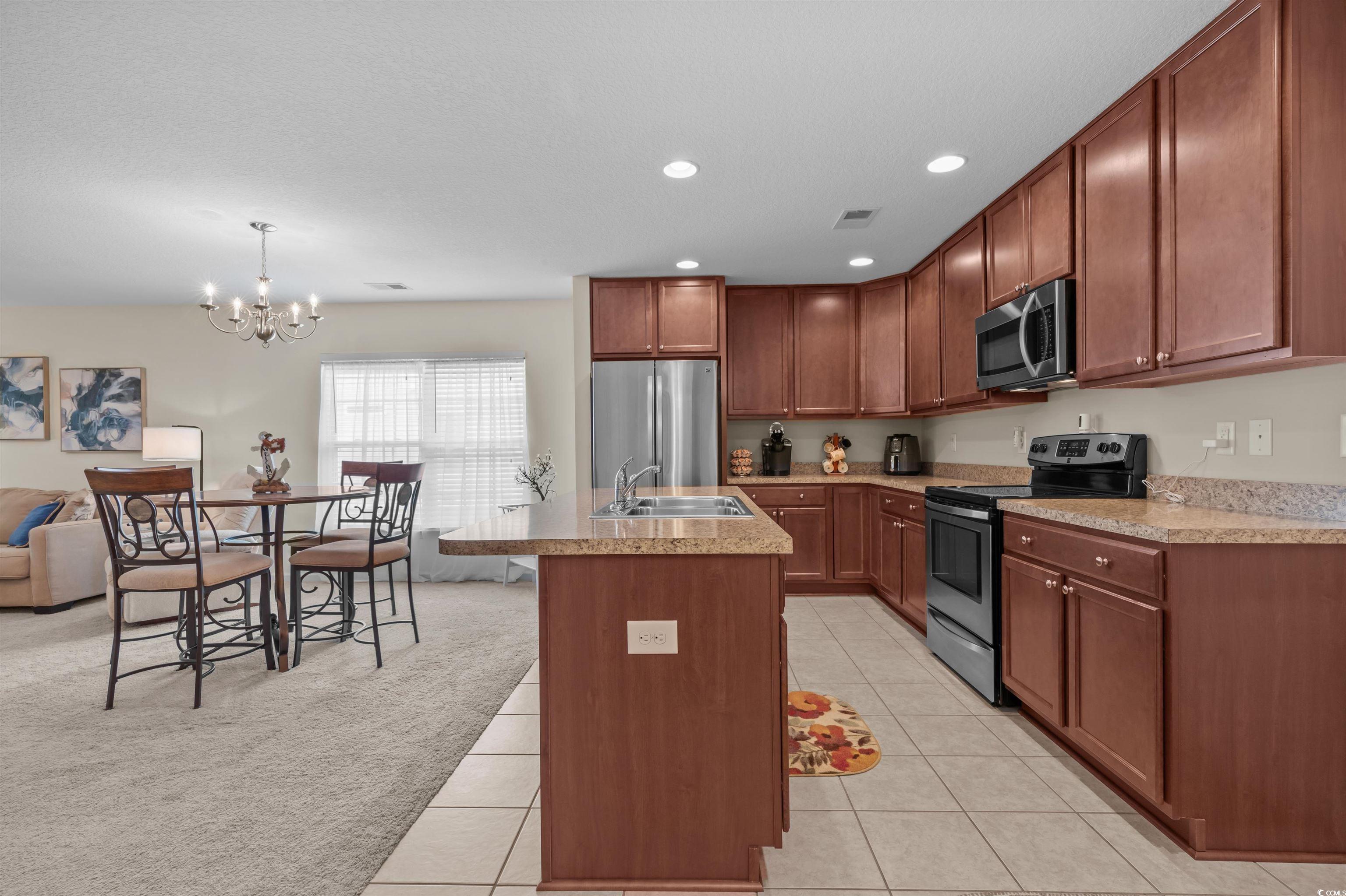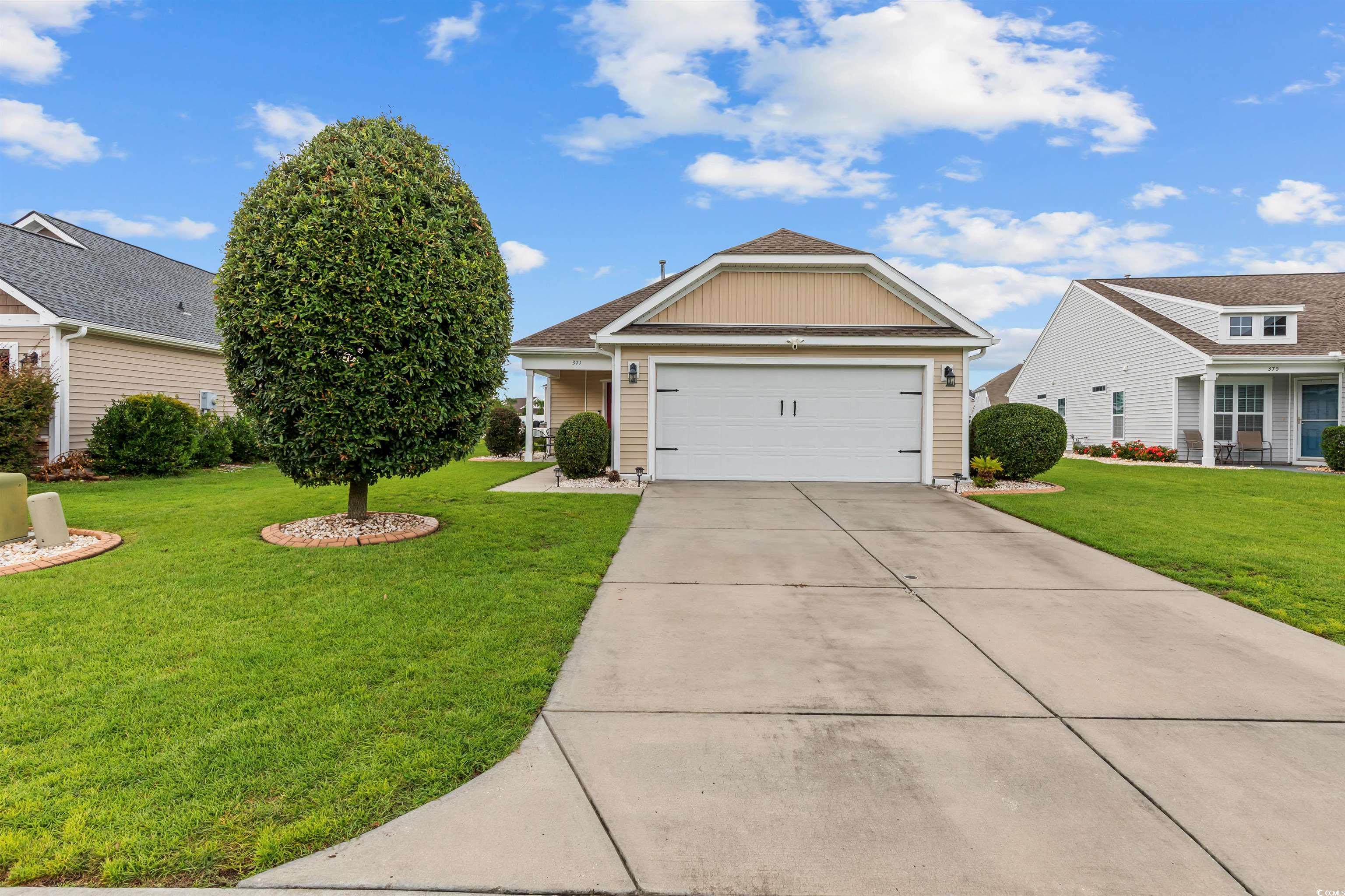 This meticulously maintained home still shows like new and has only been used a few times a year as a second residence. Featuring 3 bedrooms and 2 bathrooms, this single-story home boasts an open floor plan and sits on a beautiful pond lot with direct water views. The kitchen is a standout with an expansive 8-foot work island with bar seating, stainless steel appliances, ceiling-height cabinetry for a clean, elegant look, and tile flooring. The split-bedroom layout offers privacy, while the combined living and dining area is filled with natural light. The spacious master suite includes a large walk-in closet and an en suite bath with a walk-in shower. One of the newest features is the fully enclosed 8x19 sunroom, completed in the past year, providing the perfect spot to relax and take in the serene water views. Additional upgrades include a new architectural roof installed in 2020 and Mid-Atlantic storm shutters for extra protection. The exterior is equally impressive with mature, manicured landscaping, CurbScape edging, and an irrigation system. Located in the sought-after Carolina Forest area, Summerlyn offers fantastic community amenities including a pool, clubhouse, picnic area, and playground—all surrounded by lush palms and overlooking the scenic pond. Don’t miss this rare opportunity to own a like-new home in a prime location!