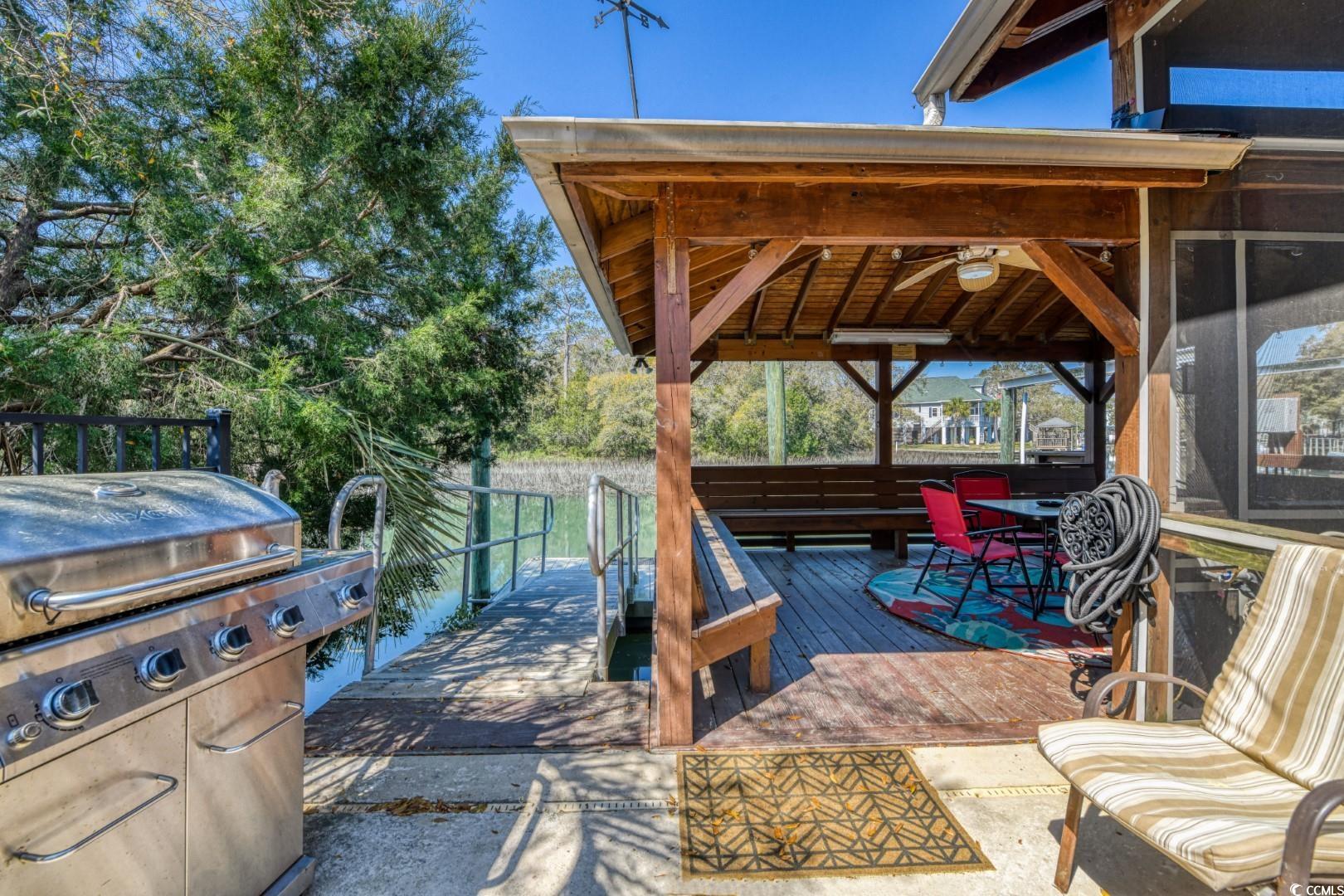 Inlet living at its finest. Perfectly positioned on the Murrells Inlet marsh, this 5-bedroom, 4.5-bath channel-front retreat delivers sweeping water views front and back and easy access to the ocean in just minutes. Spend the day on the water from your private floating dock and electric boat lift, then unwind by the pool, soak in the hot tub, and rinse off in the outdoor shower. Expansive covered porches on both levels frame postcard sunsets over the marsh.Inside, an open layout provides excellent flow for gatherings, with two kitchens (main chef’s kitchen plus upper-level kitchenette), generous living/dining areas, and five comfortable bedrooms served by 4.5 baths plus an exterior half bath for pool days. A residential lift to the second level is in place (not used by current owners).All of this just a short stroll to the famed Murrells Inlet MarshWalk-live entertainment and award-winning seafood-while Brookgreen Gardens, Huntington Beach State Park, and the beaches of Garden City/Surfside are moments away. Furnishings may convey-ask agent for details. This is a rare opportunity to own an iconic inlet-front setting with resort-style amenities and breathtaking views.
