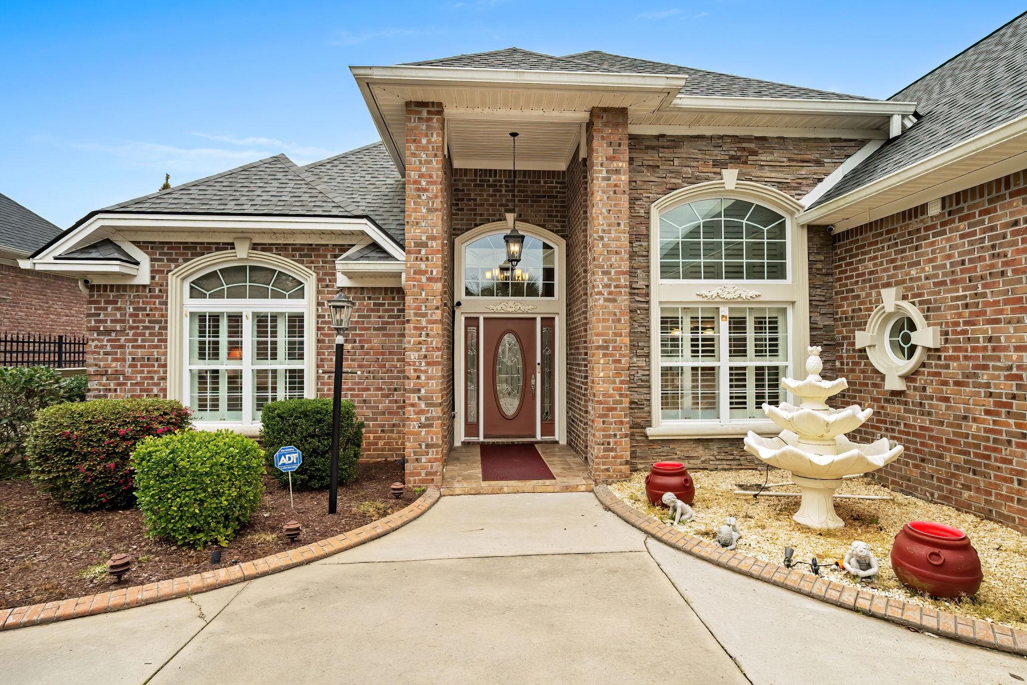 Tucked inside the gates of the highly sought-after Waterfall community, this beautifully maintained all-brick 4-bedroom, 2-bath home offers timeless style, thoughtful design, and spaces created for both relaxing and entertaining. Step through the expansive entryway into a spacious living room where vaulted finished ceilings, rich hardwood floors, and a cozy gas fireplace create a warm and inviting centerpiece of the home. Hardwood flooring flows throughout the entire downstairs living areas, with tile in the bathrooms for durability and style. Just beyond the living area, a sun-filled sunroom surrounded by windows provides the perfect spot for morning coffee or afternoon relaxation while overlooking the beautifully designed outdoor space. Step outside to a large stamped-concrete patio featuring a retractable awning for shade and comfort, ideal for outdoor dining or relaxing on warm coastal days. The patio is enclosed by custom Owens steel gates and impressive 8-foot privacy walls, creating your own private outdoor oasis. The entire yard is professionally landscaped with accent lighting that enhances the space in the evening and highlights the home’s beautiful outdoor setting. A convenient rear gate provides direct access to the community pool and fitness center, making resort-style living part of your everyday routine. The home is also equipped with surround sound throughout multiple areas, including the main living space and rear patio—perfect for entertaining indoors and out. For added peace of mind, security cameras are installed at the front door, above the garage, and along the back wall on the right side of the home. Entertaining is effortless with a generous dining room ready to host family gatherings and holiday dinners. The heart of the home is the chef’s kitchen featuring a gas stove, center island, granite countertops, decorative tile backsplash, pantry, and abundant cabinetry. A comfortable eat-in area provides additional space for casual dining. The primary suite is truly a showstopper, featuring vaulted ceilings, a private sitting room, and a stunning double-sided gas fireplace that can be enjoyed from both spaces. Two large walk-in closets provide exceptional storage. The spa-inspired primary bath includes a tiled garden tub with jacuzzi styling, an expansive tiled shower, and dual vanities, creating a luxurious retreat at the end of the day. Designed with privacy in mind, the first floor offers a split-bedroom floor plan with two additional bedrooms and a full bath located on the opposite side of the home. A laundry and mudroom with extra storage adds everyday convenience. Upstairs, the large bonus room with upgraded Berber carpet offers incredible flexibility and can easily serve as a fourth bedroom, home office, media room, or multipurpose space. You’ll also appreciate the abundant walk-in attic storage conveniently accessible from the bonus room. This home has been exceptionally well cared for, with major updates already taken care of, including a roof replacement and one of the two HVAC systems replaced within the past three years. Ideally located, the home offers quick access to the North Myrtle Beach Sports Complex, Highway 31, and the Main Street Connector, placing you just minutes from all that North Myrtle Beach has to offer, including shopping, dining, entertainment, golf, and the beautiful Atlantic beaches. A rare opportunity to enjoy gated community living, exceptional indoor and outdoor spaces, and unbeatable coastal convenience—this Waterfall home is ready to welcome you.