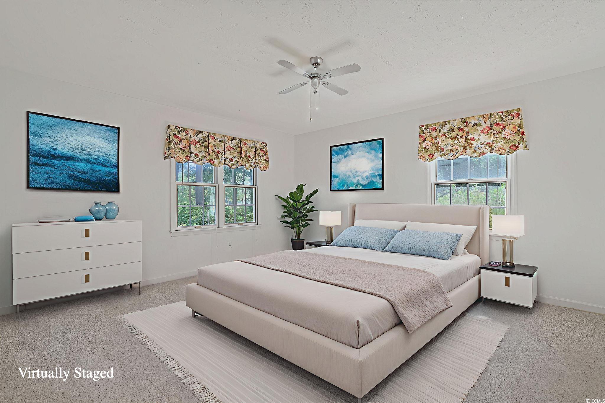 Presenting this elegant two story 4-bedroom, 3-bathroom residence situated in the sought-after Eagles Nest Golf Estates community with no HOA dues. New roof installed in 2023. This charming home features laminated wood, tile, & carpet flooring, an inviting family room, a recreation room with built-ins, a formal dining room with a pony wall, a large living room with a cozy fireplace that showcases access to the delightful Carolina room with tree lined golf views. The kitchen is equipped with a white on white appliance package, ample counter and cabinet spaces, and a family friendly breakfast nook. The main level primary suite offers a double bi-fold door closet, a ceiling fan, a large walk-in closet, private access to a primary bath that hosts a vanity with dual sinks, a comfort station, and a classic step-in shower. Upstairs, two additional bedrooms, a private office, and a full guest bath provide comfortable accommodations. This exceptional home is completed with an additional main level bedroom, full guest bath, 2 very large walk-in attics, a tool room, a spacious back & front yard, and a two-car attached garage. This home affords you easy access to the beach and golfing along with all of the other activities and happenings in Myrtle Beach and Little River including fun eateries, award winning off-Broadway shows, public fishing piers, Little River waterfront, and intriguing shopping adventures along the Grand Strand. Conveniently located to your everyday needs, including grocery stores, banks, post offices, medical centers, doctors’ offices, and pharmacies. Check out our state of the art 3-D Virtual Tour.