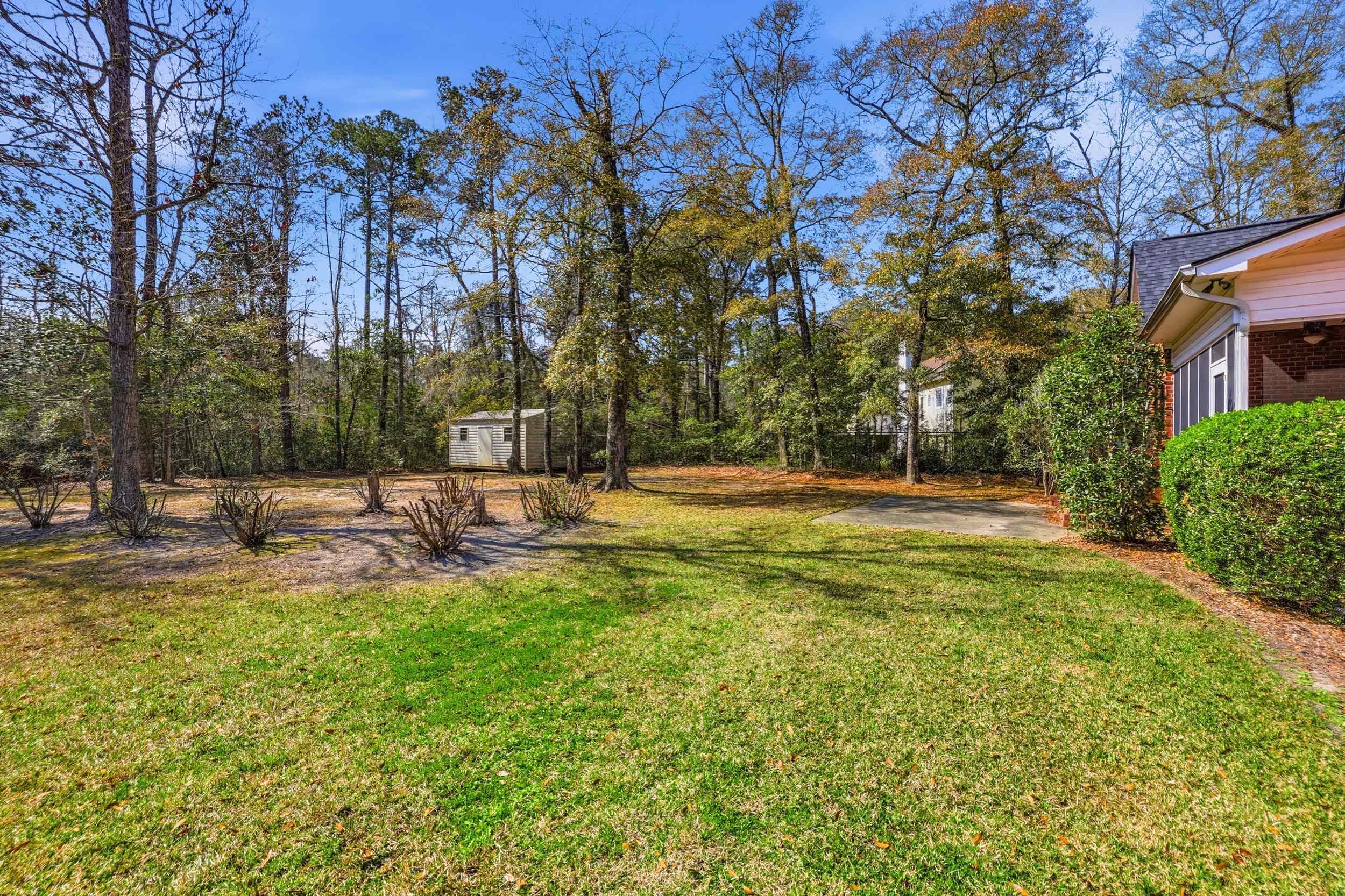 Located near the end of a quiet street in Hagley Estates, this all brick 4 bedroom, 3 bath home offers space, privacy, and the freedom of no HOA. Situated on a .77 acre homesite, the property features a very large cleared backyard with a storage shed, with mature woods beyond the yard creating a peaceful natural backdrop. The great room showcases hardwood floors and a gas fireplace, creating a warm and inviting central living space. The spacious primary suite includes a private bath with dual sinks, a soaking tub, and a separate shower. Two additional bedrooms are located on the opposite side of the home, providing a desirable split-bedroom layout, while the fourth bedroom and full bath are located upstairs, offering flexibility for guests, a private suite, or a home office. A screened porch overlooks the backyard, while the welcoming front porch adds to the home’s Lowcountry charm. The home also features a large walk-in attic storage area for added convenience. Hagley Estates is located just minutes from the public boat landing on the Waccamaw River and a short drive to Pawleys Island beaches, golf courses, shopping, and dining.