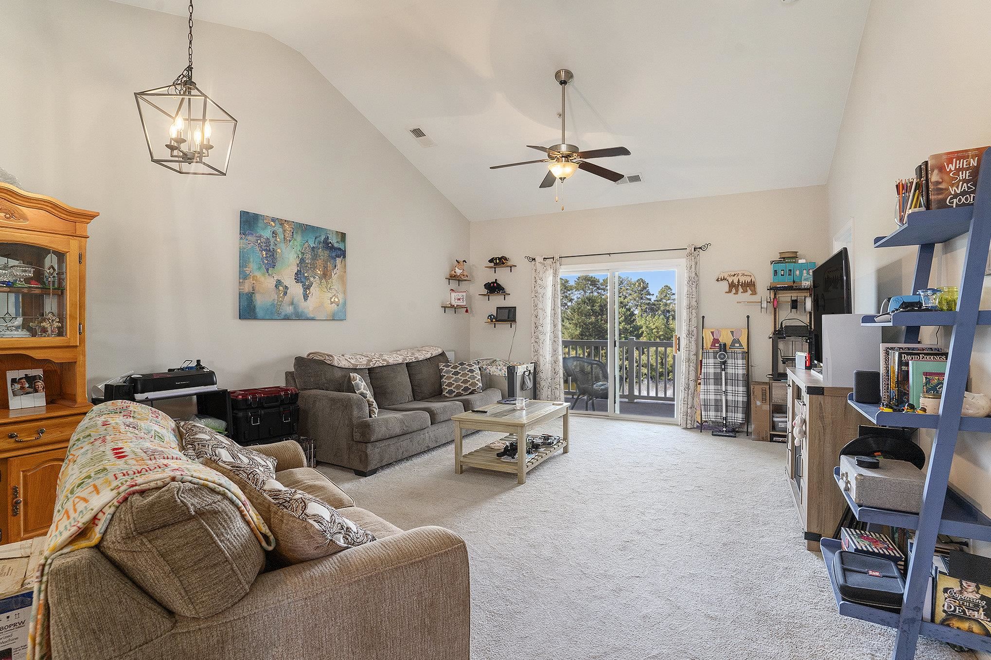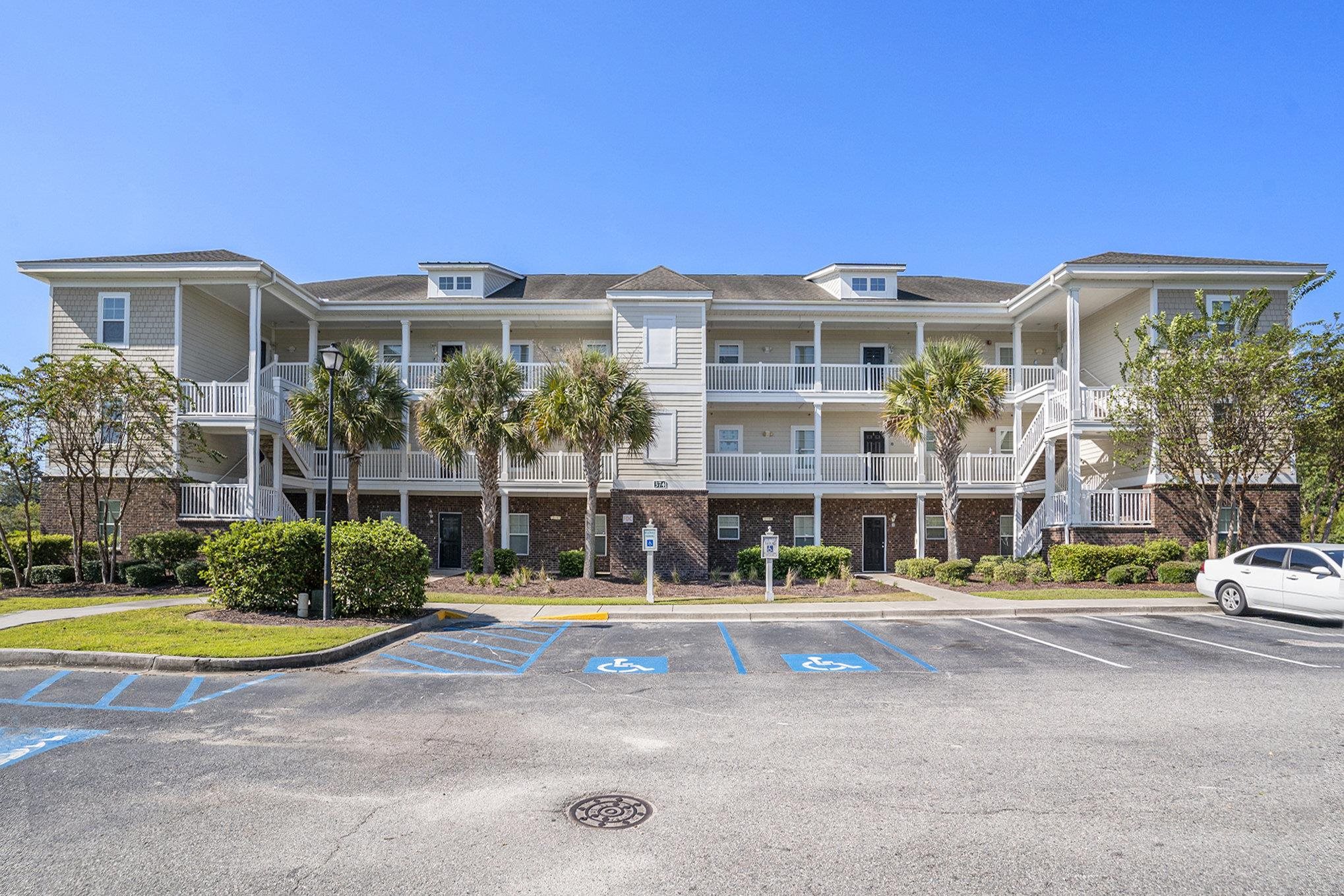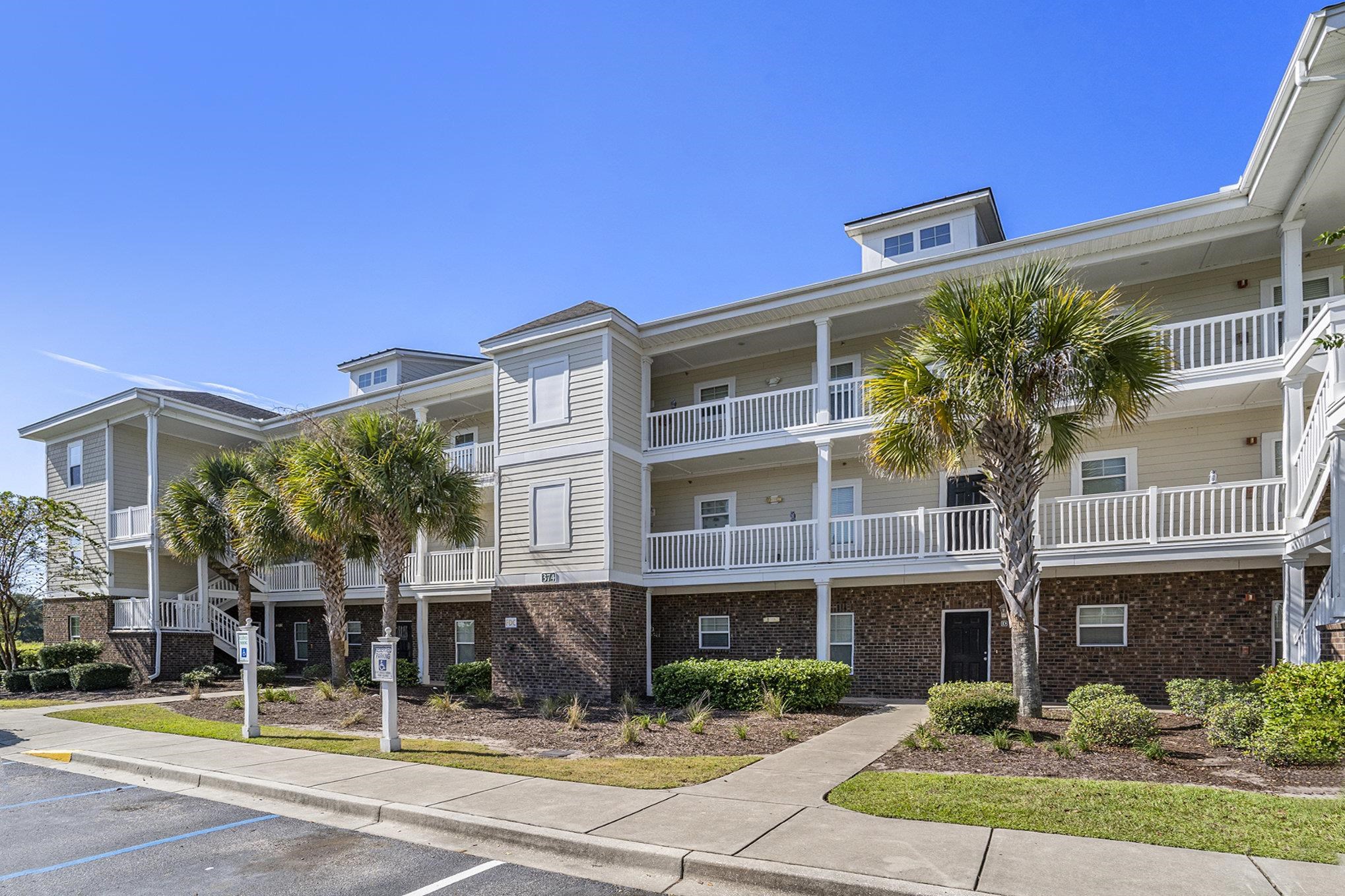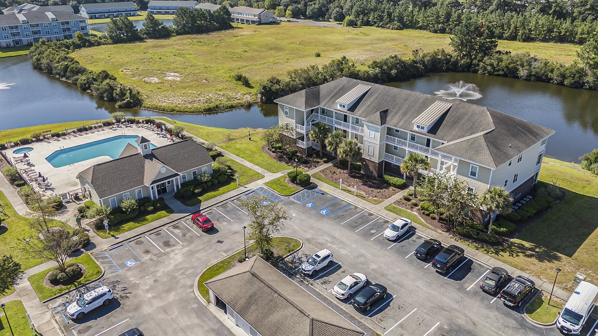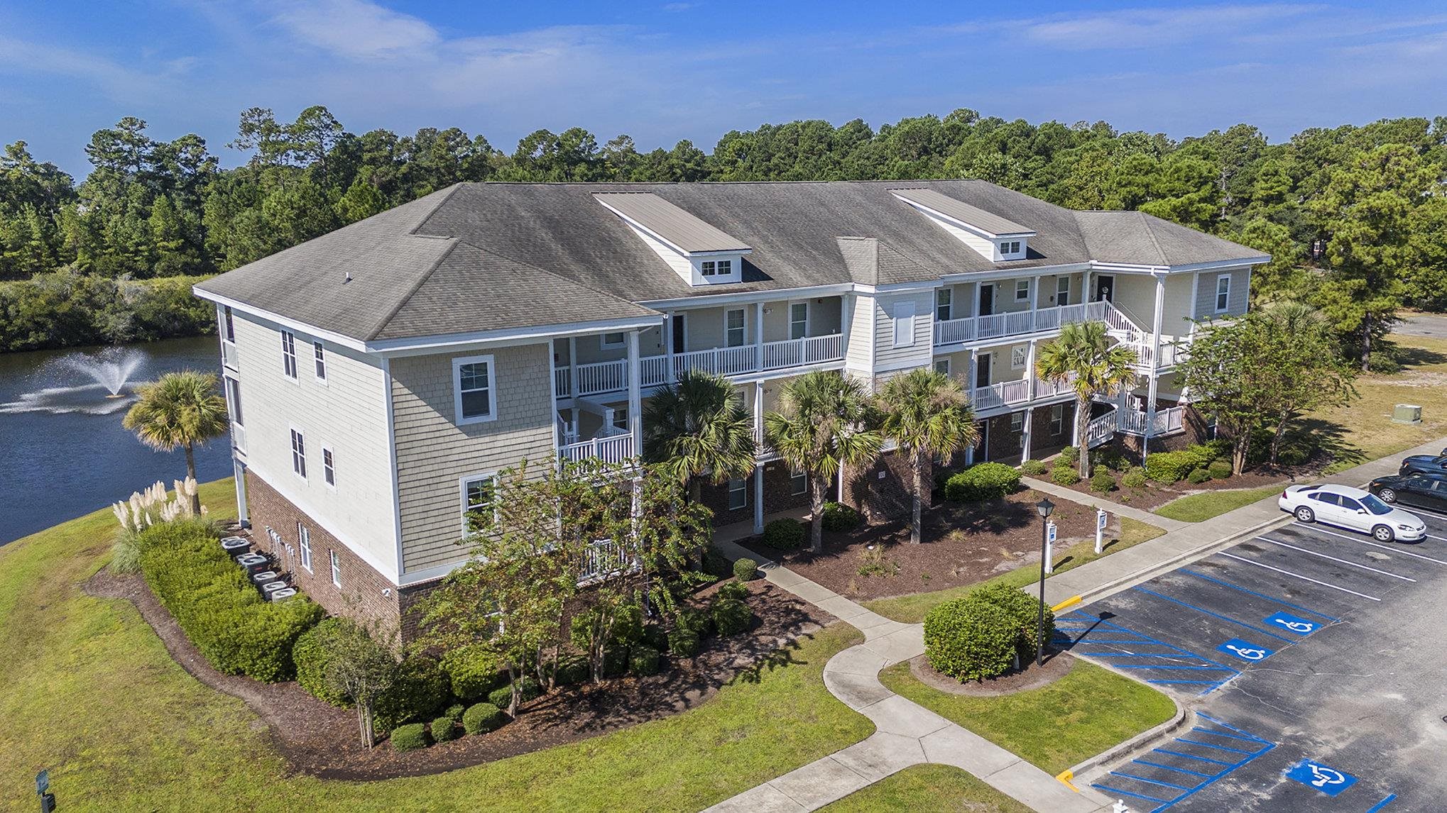 This 2-bedroom, 2-bathroom top-floor condo is located in Kiskadee Parke at Wild Wing. The spacious kitchen is positioned at the front of the unit and features a breakfast bar. The living space offers a vaulted ceiling, ceiling fan, and access to a private balcony overlooking the pond. The primary suite is located at the rear of the unit and includes a tray ceiling, walk-in closet plus an additional closet, a pond view, and a private bath with a large vanity and tub/shower combination. The guest bedroom and bath are located at the front of the unit, along with the laundry space. The balcony includes a ceiling fan, a pond view, and a storage closet. An additional exterior storage closet is just outside the unit. Residents enjoy access to community amenities including a pool, clubhouse, basketball, tennis, and volleyball courts. Conveniently situated minutes from Coastal Carolina University, Horry-Georgetown Tech, shopping, dining, and just a short drive to the beach, this property is an excellent opportunity for a primary residence, vacation home, or rental investment.