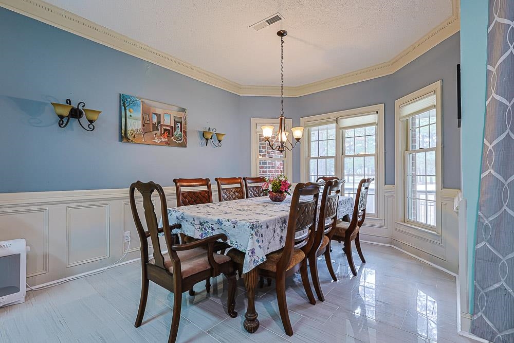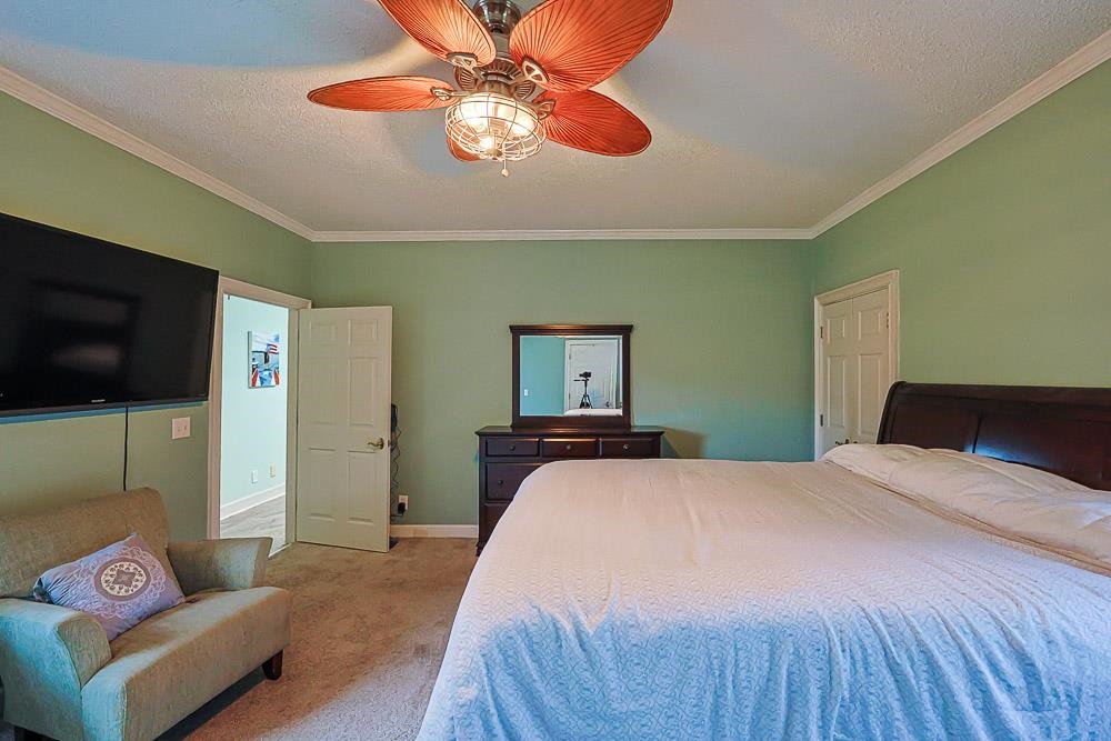 Priced Below Market Value! Incredible Opportunity in a Golf Course Community! This exceptional custom-built brick home offers five spacious bedrooms, four full bathrooms, and beautiful golf course views, delivering luxury, space, and value that’s hard to find in the neighborhood. A grand circular driveway leads to an impressive double-door entrance, welcoming you into a dramatic foyer highlighted by high-gloss tile flooring and a stunning chandelier. The main level features formal living and dining spaces ideal for entertaining, while the sunken great room showcases a remote-controlled gas fireplace, built-in bookshelves, and a seamless flow into the gourmet kitchen. The kitchen is designed for both functionality and style, featuring custom cabinetry, granite countertops, a breakfast bar, and high-end stainless steel appliances. Elegant finishes such as crown molding and hardwood floors add warmth and character throughout the home. The first-floor master suite serves as a private retreat, complete with a whirlpool tub, walk-in shower, dual vanities, and spacious his-and-hers closets. Every bedroom in the home includes its own walk-in closet, providing abundant storage and comfortable living for family and guests alike. Step outside onto the covered raised back patio and into the backyard where you’ll enjoy beautiful, unobstructed views of the golf course, creating a peaceful setting perfect for relaxing or entertaining. The landscaped yard also features fruit trees and flourishing gardens that add charm and natural beauty to the property. With no HOA, generous living space, custom craftsmanship, and a prime golf course setting, this home presents a rare opportunity for buyers looking to secure a property priced competitively below typical neighborhood values. For added peace of mind, the seller is also providing a home warranty to the buyer. Don’t miss your chance to own a home that combines elegance, space, and exceptional value.