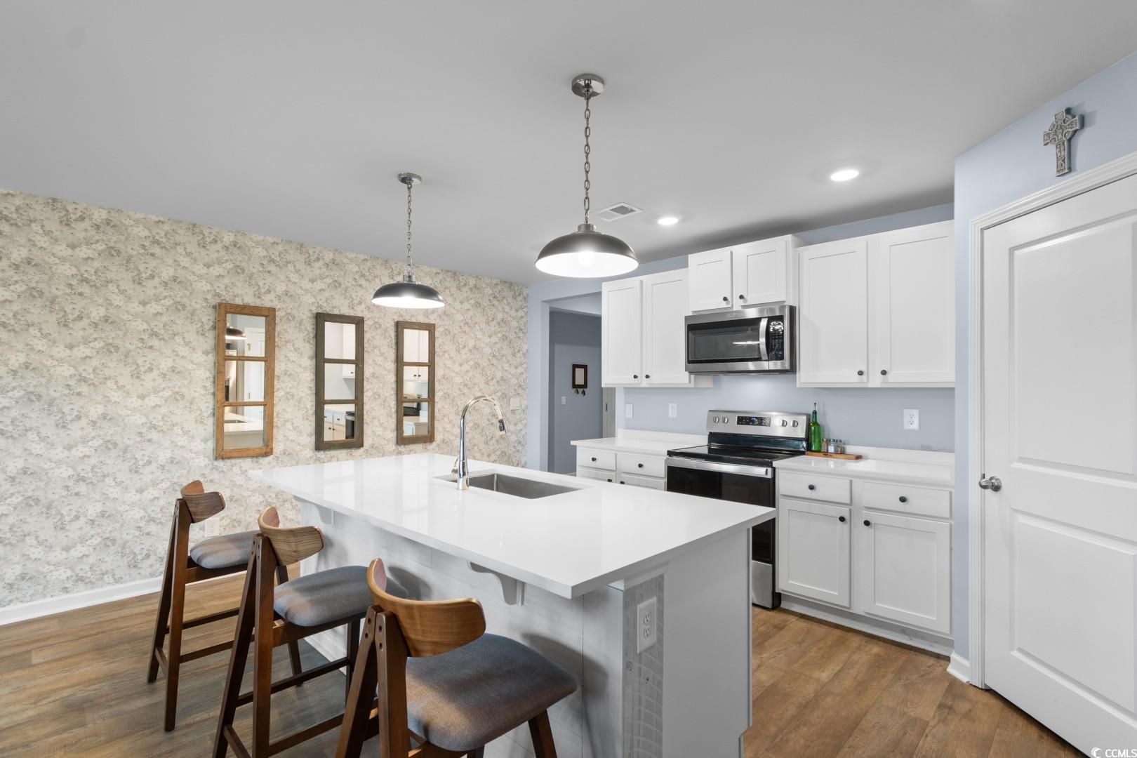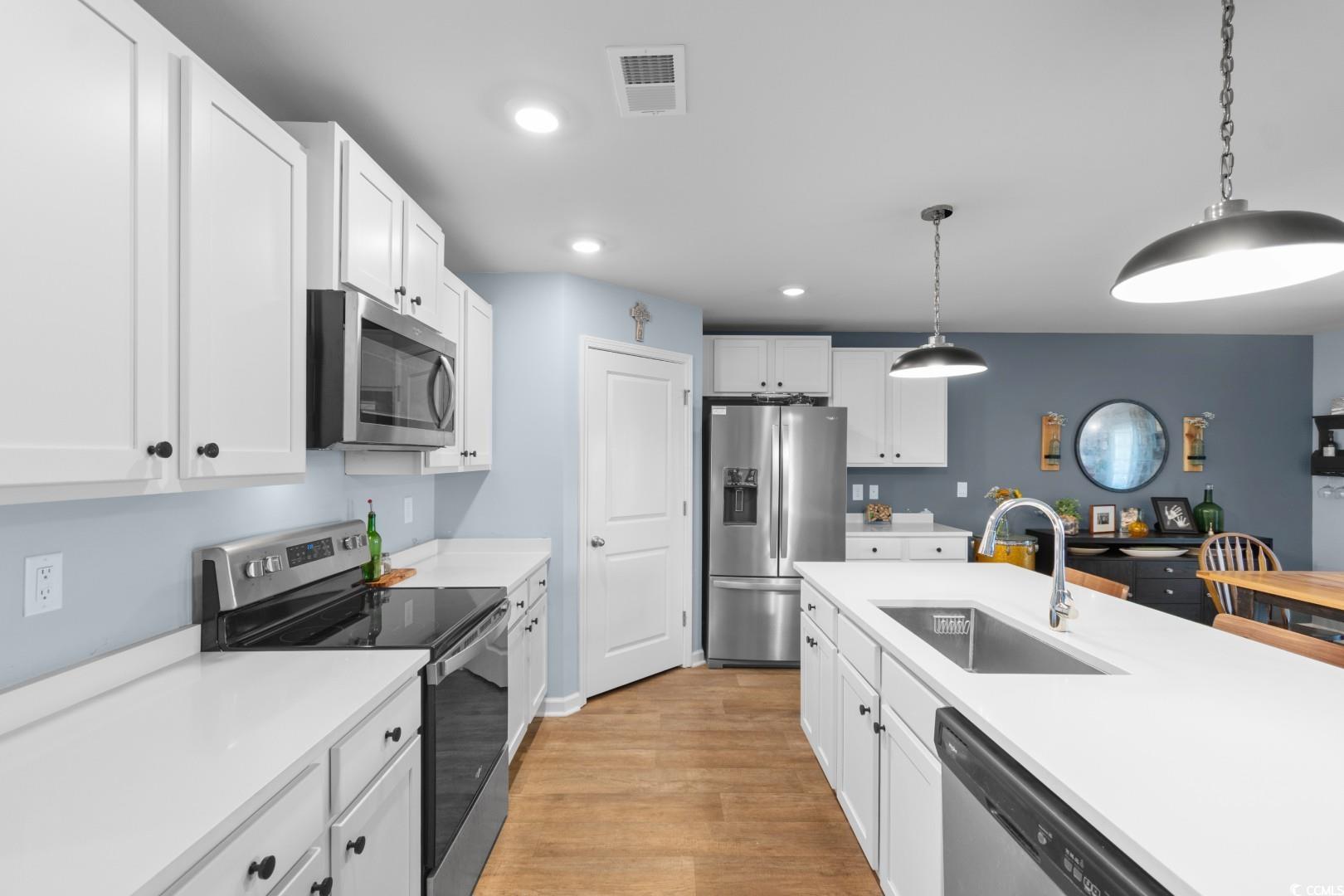 Welcome to this stunning property in the Pine Forest community, a beautifully maintained 4-bedroom, 2-bath home with brick veneer that blends comfort, style, and convenience with the added privacy of a split-bedroom floor plan. When stepping into this meticulously cared-for property, inside you will find the kitchen equipped with gorgeous quartz countertops, a charming farm sink, and an island perfect for all of your cooking necessities, stainless steel appliances, and a freshly painted interior as of November 2024. The kitchen also includes a large pantry, perfect for storing all your essentials and keeping he space organized. Stepping into the spacious primary suite that offers a double sink vanity, a walk-in closet, and a private retreat that's perfect for relaxing at the end of the day. Enjoy peace of mind with a whole-home surge suppressor added to the electrical system, a brand-new garage door opener, and a new roof installed in October 2025. Outdoor living is a dream with a screened-in porch and aluminum fence added in April 2023, plus a spacious patio perfect for entertaining, completed in December 2022. The home is surrounded by beautifully landscaped grounds, adding curb appeal that offers a perfect view of the pond, creating a peaceful and inviting outdoor setting. This property provides a perfect blend of country charm while being outside city limits, giving you the tranquility of rural living with convenient access to modern amenities. Located just minutes from the shops, dining, and festivities of downtown Conway and the Riverwalk, this home also offers the best of the Grand Strand lifestyle, with only a 30-minute drive to the beautiful beaches. Don't miss your chance to own this move-in-ready gem that perfectly combines modern updates, thoughtful maintenance, and an ideal location!