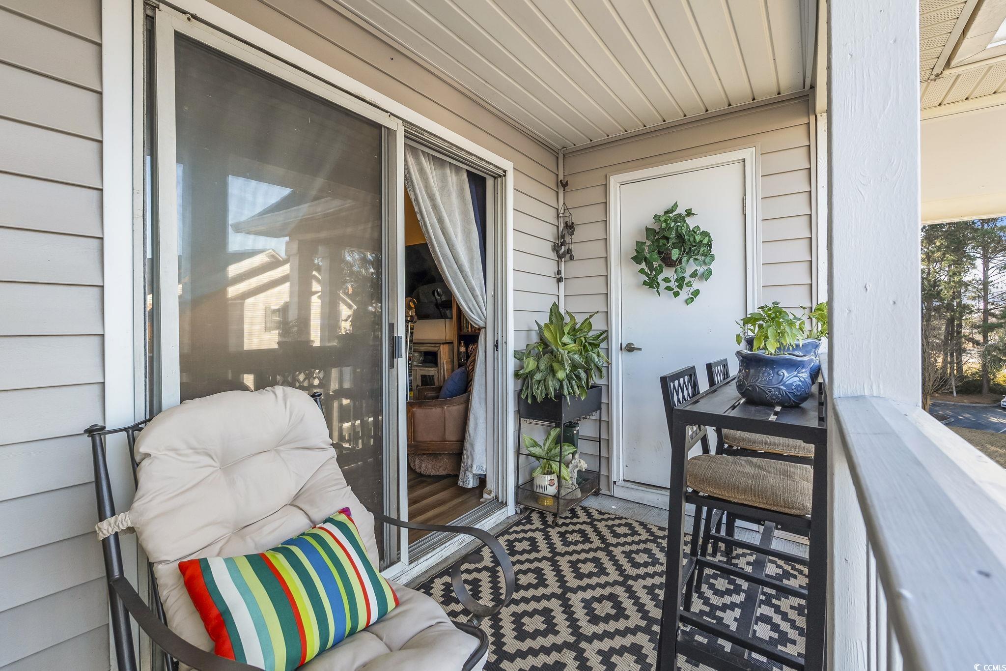 A must see condo in the heart of Myrtle Beach! Located in the gated community of Broadway Station, this immaculate top-floor, end-unit condo offers two bedrooms and two full baths with peaceful, unobstructed views of the pond and pool from the living room, private balcony, and both bedrooms. The home features an open, light-filled floor plan with cathedral ceilings and wainscoting in the dining area, creating a warm and inviting feel. The kitchen is equipped with stainless steel appliances, and the unit includes luxurious vinyl flooring, a new AC system, and a new hot water heater, all replaced in 2022, along with a newer washer and dryer. This condo has been exceptionally well maintained and thoughtfully updated with custom closet features to maximize storage, along with ample additional storage in the upstairs attic, improved with plywood flooring to create highly usable space rarely found in condo living, plus the convenience of two assigned parking spaces and community bike racks. Ideally situated in the heart of Myrtle Beach, the location offers the perfect balance of privacy and convenience, just a short walk to the ocean, shopping, and dining. Enjoy relaxing evenings and beautiful sunsets from the balcony overlooking the pond and pool. Broadway Station offers a variety of amenities including a heated, outdoor pool, hot tub, 2 gas grills, a fitness center, a clubhouse with a full kitchen and a car wash station. The home is move-in ready and centrally located, offering easy coastal living at its best.