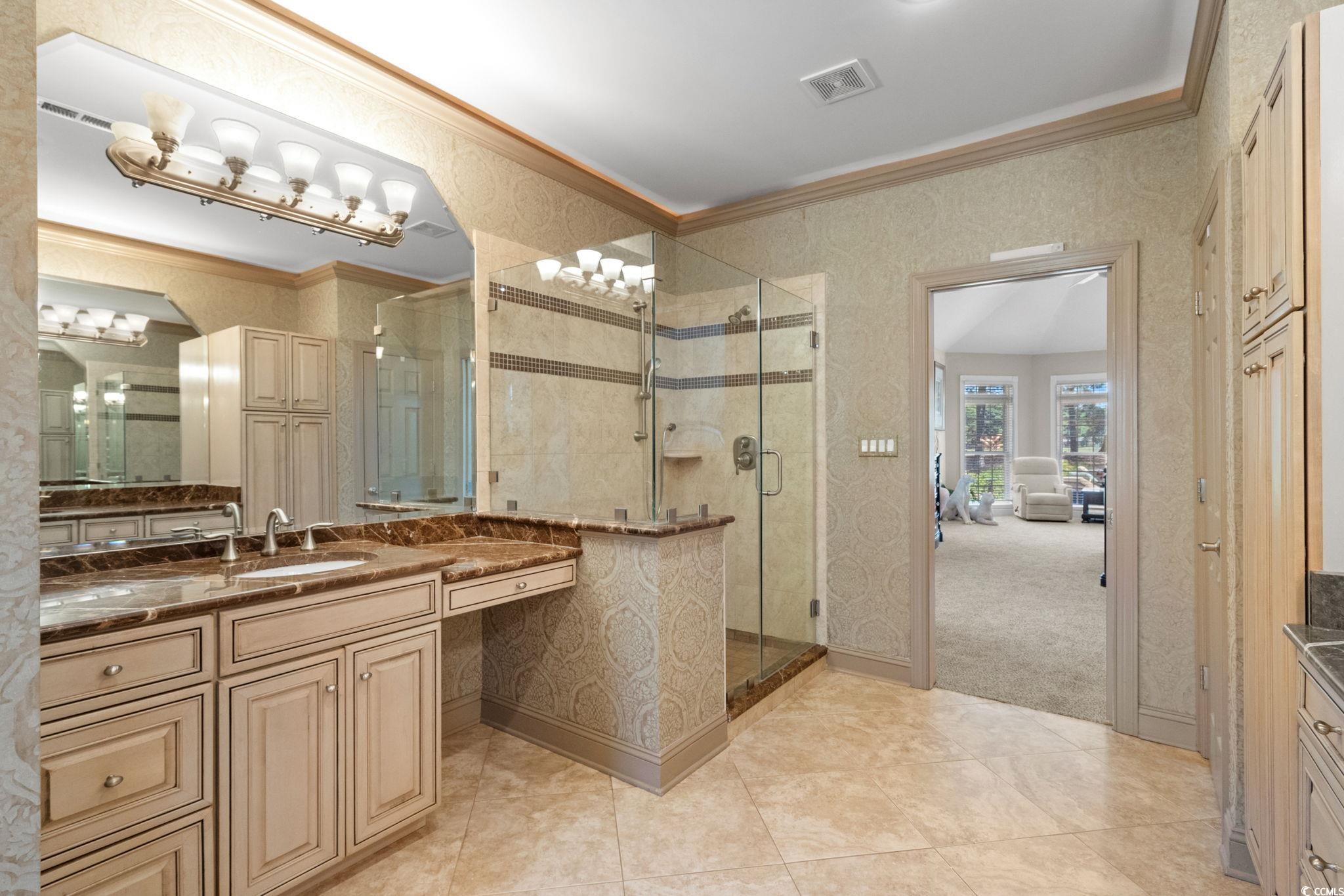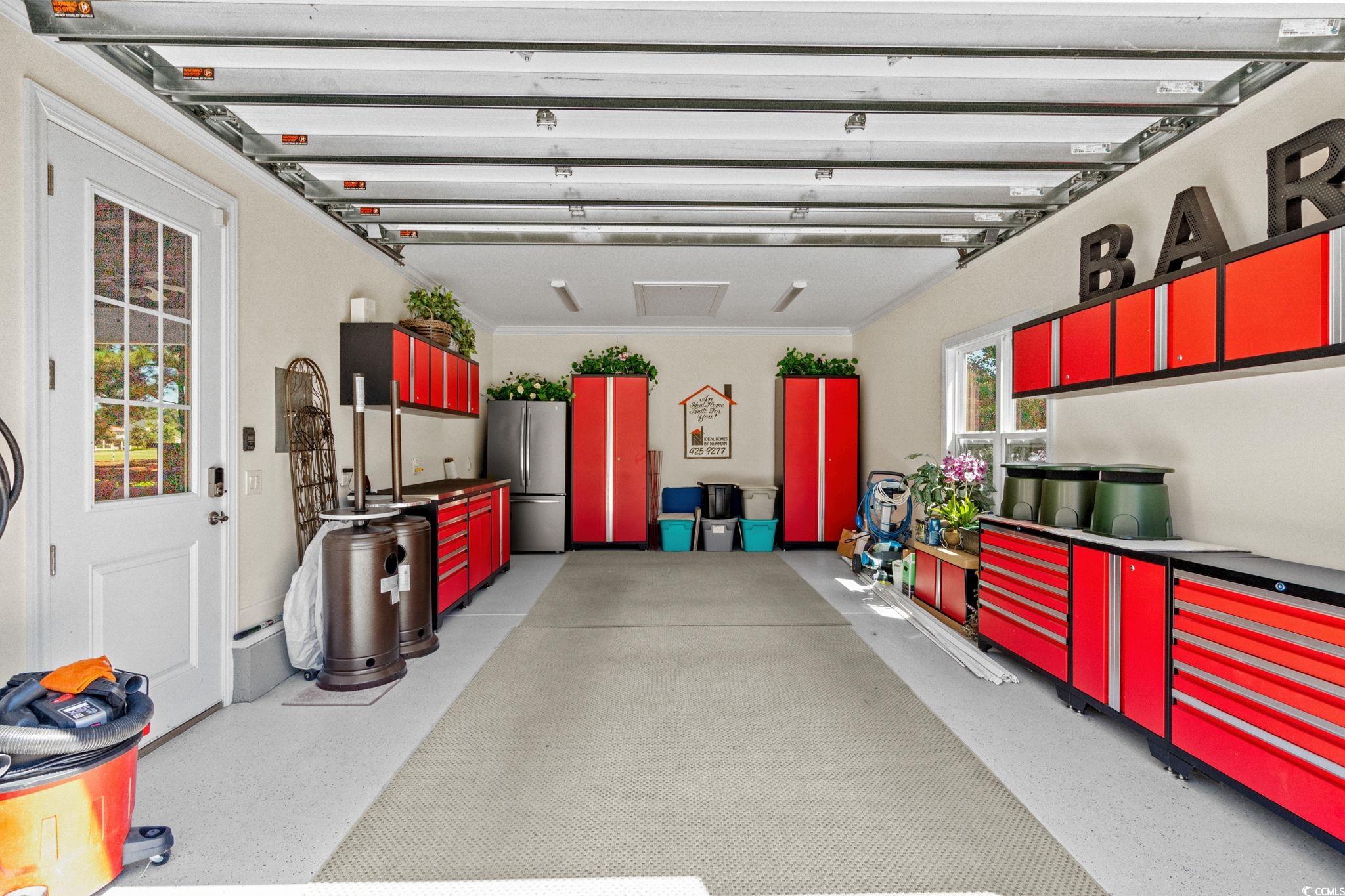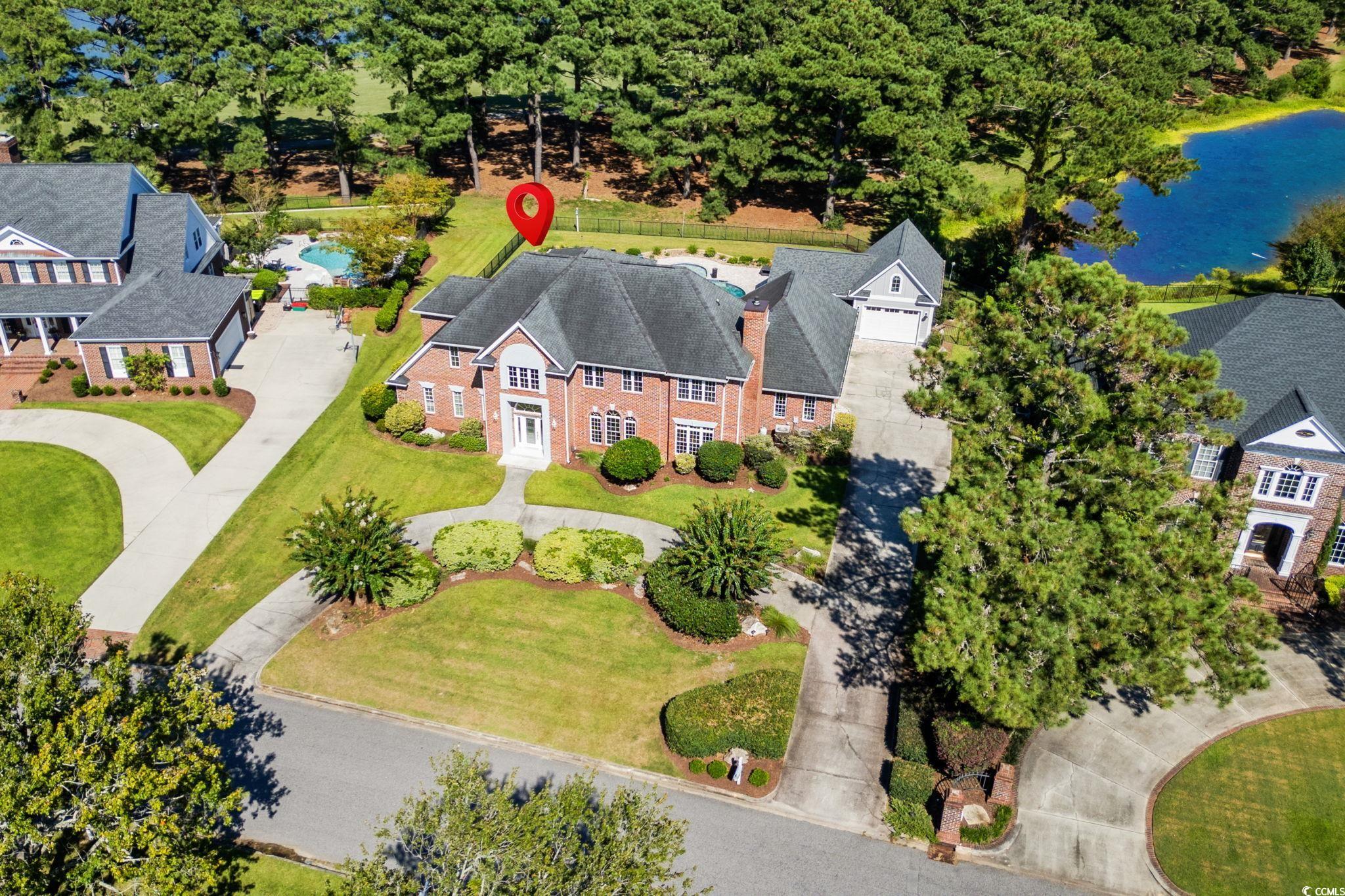 If you’ve been waiting for a home that feels special the moment you arrive, this is it. Tucked away on a quiet cul-de-sac street in the highly sought-after Plantation Point community, this all-brick home sits on over half an acre directly on the golf course and instantly feels like a place where life is meant to be enjoyed. From morning coffee overlooking the fairway to evenings spent poolside, this home truly lives like a private retreat—and yes, it’s a happy place. Step inside and you’re greeted by a grand two-story foyer that opens into a light-filled family room with soaring ceilings, a wall of windows, and a cozy fireplace—all framing views of the saltwater pool and the Myrtlewood Golf Course beyond. This space flows effortlessly into the kitchen, making it ideal for both everyday living and entertaining. The kitchen is thoughtfully designed with custom cabinetry, granite countertops, stainless steel appliances (including a warming drawer), a walk-in pantry, and an L-shaped island with seating. Skylights and vaulted ceilings fill the breakfast nook with natural light, and French doors from both the kitchen and family room lead straight out to the patio and pool. For hosting friends and family, the home also features formal living and dining rooms that have been transformed into a stylish club room complete with a full bar, wine cooler, ice maker, and its own fireplace—a space made for memorable nights and easy entertaining. The first-floor primary suite is a true escape, featuring a vaulted ceiling, fireplace, sitting area, and private access to the patio. The spa-inspired bathroom offers dual vanities, a walk-in shower, a soaking tub, a linen closet, and an oversized walk-in closet. A powder room and laundry room complete the main level. Two staircases lead upstairs to a catwalk that overlooks the foyer, family room, and kitchen, adding to the home’s open, airy feel. The upper level includes a private guest suite with its own full bath, plus two additional bedrooms that share a bathroom—perfect for family or visitors. Outside is where this home really shines. The fenced backyard feels like a resort, featuring a saltwater pool with a sun shelf, a large patio, and a covered lounge with an outdoor kitchen—all overlooking the golf course. Whether you’re hosting summer gatherings or enjoying quiet evenings under the stars, this space was designed for making memories. Additional highlights include a side-loading 2.5-car garage, plus an immaculate Tesla garage with a 220 charger, conveniently attached to the home via the covered lounge. The home is located in an X flood zone for added peace of mind. Ideally located just minutes from the beach via 38th Avenue, as well as Myrtle Beach’s best dining, shopping, and entertainment, this home offers the perfect blend of privacy, luxury, and coastal convenience. Sellers are licensed real estate agents.
