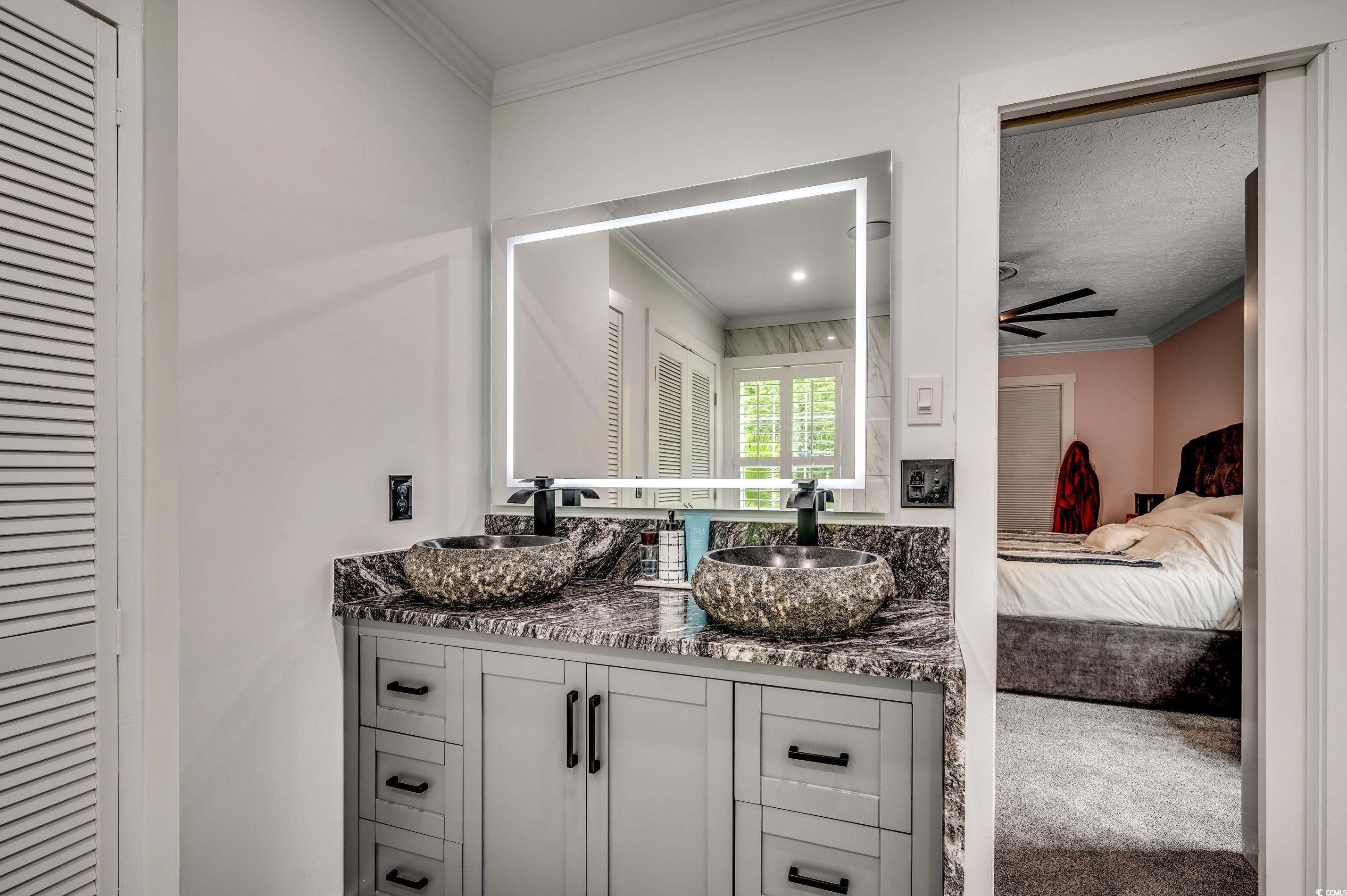 Location, Elegance, Comfort! This fully remodeled 3BR/3BA ranch sits in the heart of Myrtlewood Golf Course on a peaceful cul-de-sac. Highlights include a modern kitchen with stainless steel appliances & quartz counters, a spacious living room with a fireplace, split bedroom design, and a Carolina room overlooking the backyard. The master suite offers a true spa experience with a soaking tub and a multi-spray shower. Move-in ready and waiting for you!