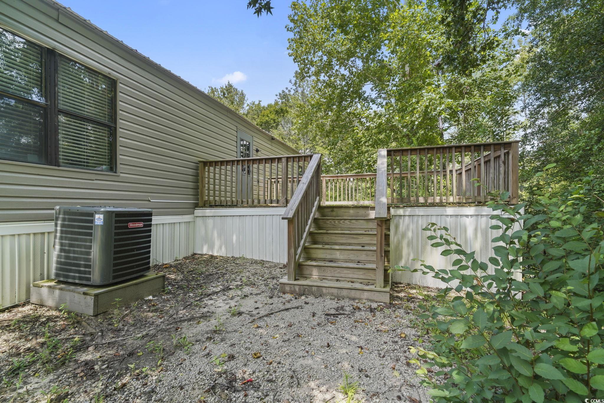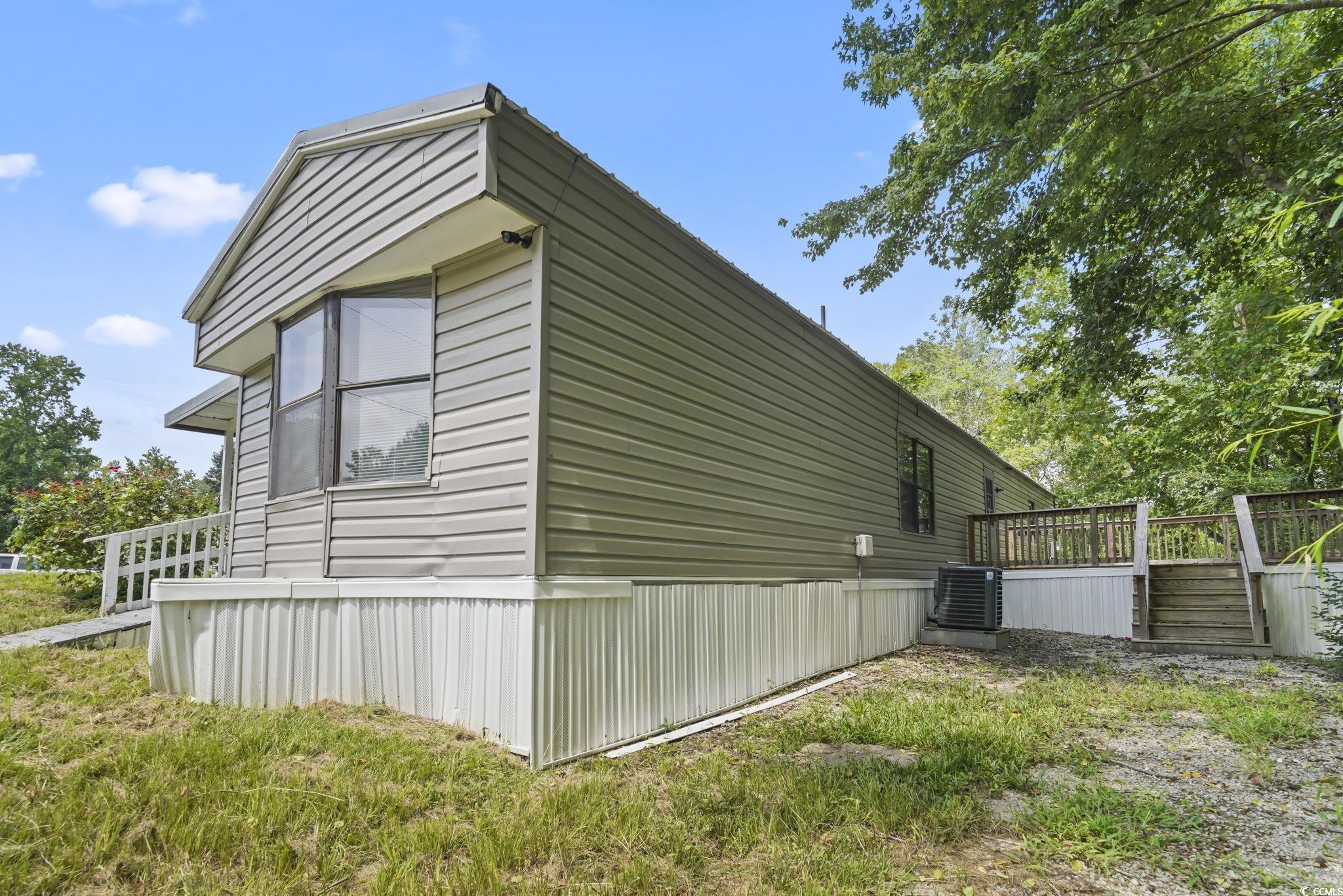 Welcome to this beautifully remodeled 2-bedroom, 2-bath manufactured home, perfectly blending comfort, privacy, and convenience! Sitting on a 0.36-acre private corner lot along a quiet cul-de-sac with a peaceful creek backdrop, this 952 sq. ft. home offers a spacious split-bedroom layout filled with natural light. Recent upgrades include LVP flooring, vaulted ceilings with fans, stylish shiplap accents, and a remodeled kitchen with center island, pantry, and abundant cabinet space. The master suite boasts double closets and a refreshed en-suite with dual sinks and new tub/shower, while the guest room features a bay window and upgraded adjacent bath. A full-size laundry room with overhead storage adds convenience. Enjoy outdoor living with an expansive covered front patio, large rear deck overlooking the creek, and a huge yard with room for RV or boat parking, all with no HOA! With a new HVAC (2023) and durable metal roof, this home is move-in ready. Located just outside Conway city limits near Hwy 701, you'll have quick access to downtown Conway, Riverwalk, shopping, and dining. Don't miss this rare find!