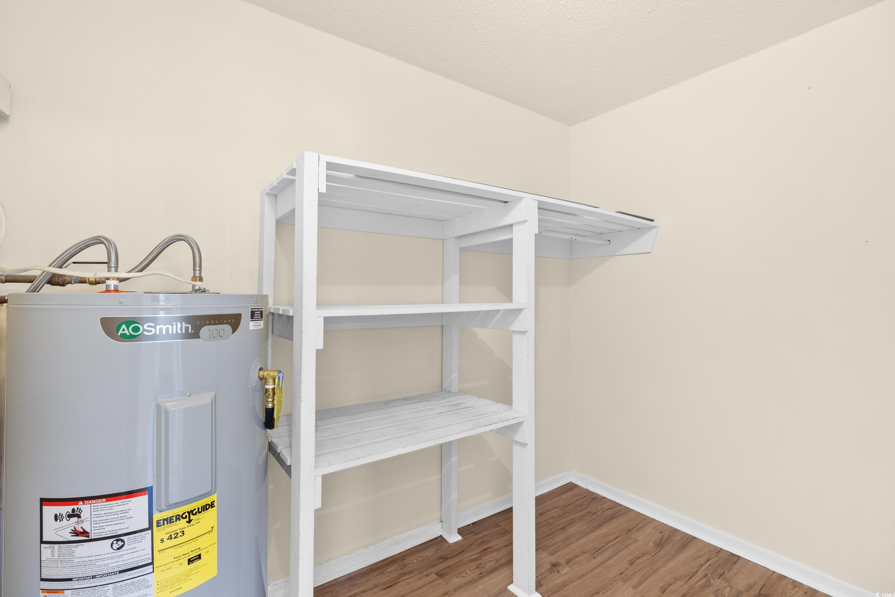 Welcome to Seagate Village! This home is situated on a large corner lot. Step inside and you will find new luxury vinyl flooring and fresh paint throughout. The spacious living room and dining room has plenty of light. The kitchen features a window above the sink so you can enjoy the Carolina sunshine while you do your dishes. There are two well sized bedrooms, one with a view of the front yard and one with a view of the back yard. There is plenty of storage in this home including a large storage area off the kitchen for all of your extra stuff. Outside, in the carport, there is another large storage room... maybe for your beach chairs and more. This amazing community is located between the Myrtle Beach State Park and The Market Common. You can ride in a golf cart to shopping, the bark park, groceries, the beach and the list goes on. This move-in ready home is waiting for you to make this your home today!