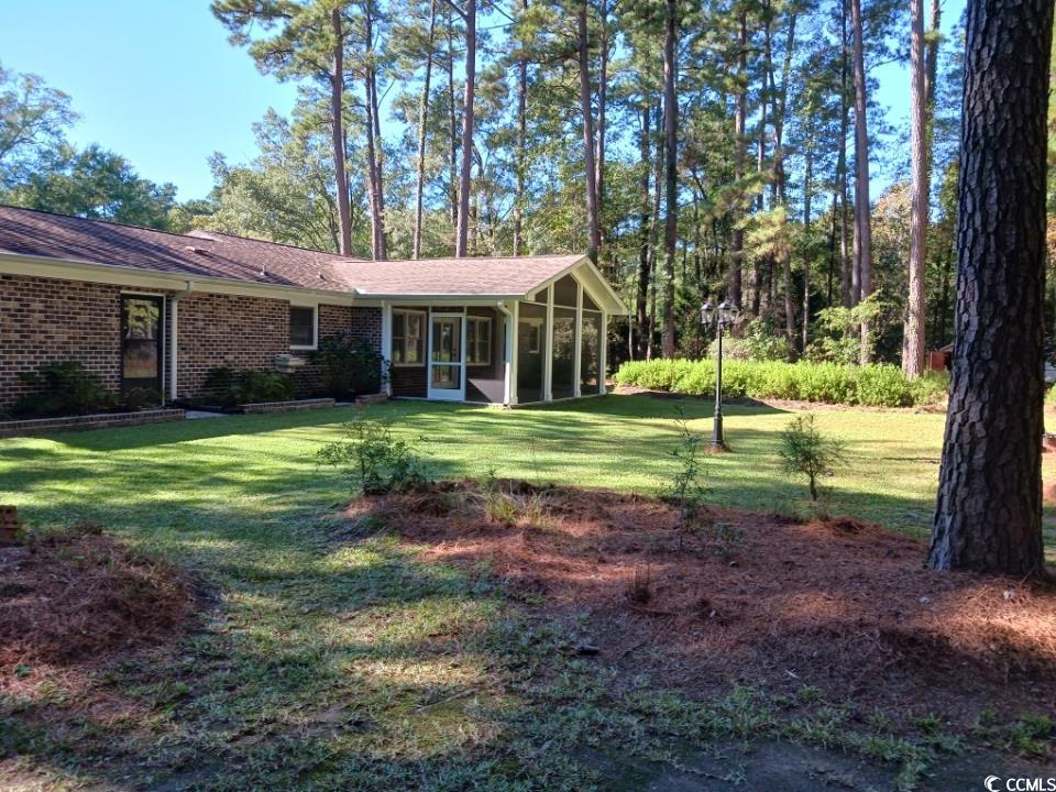 Welcome to your private oasis on 1.26 acres of beautiful land—where serenity meets convenience. This charming 3-bedroom, 2-bath home offers a perfect blend of comfort and style with tile and wood floors throughout, including a tile-floored garage. Enjoy the peacefulness of a screened-in backyard porch, ideal for relaxing or entertaining. With plenty of space to park your RV, boat, trucks, motorcycles, jet skis, or trailers, this home is a dream for outdoor enthusiasts. Located just minutes from the sparkling Atlantic beaches and all the best of Myrtle Beach—shopping, dining, and easy access to medical and the airport.