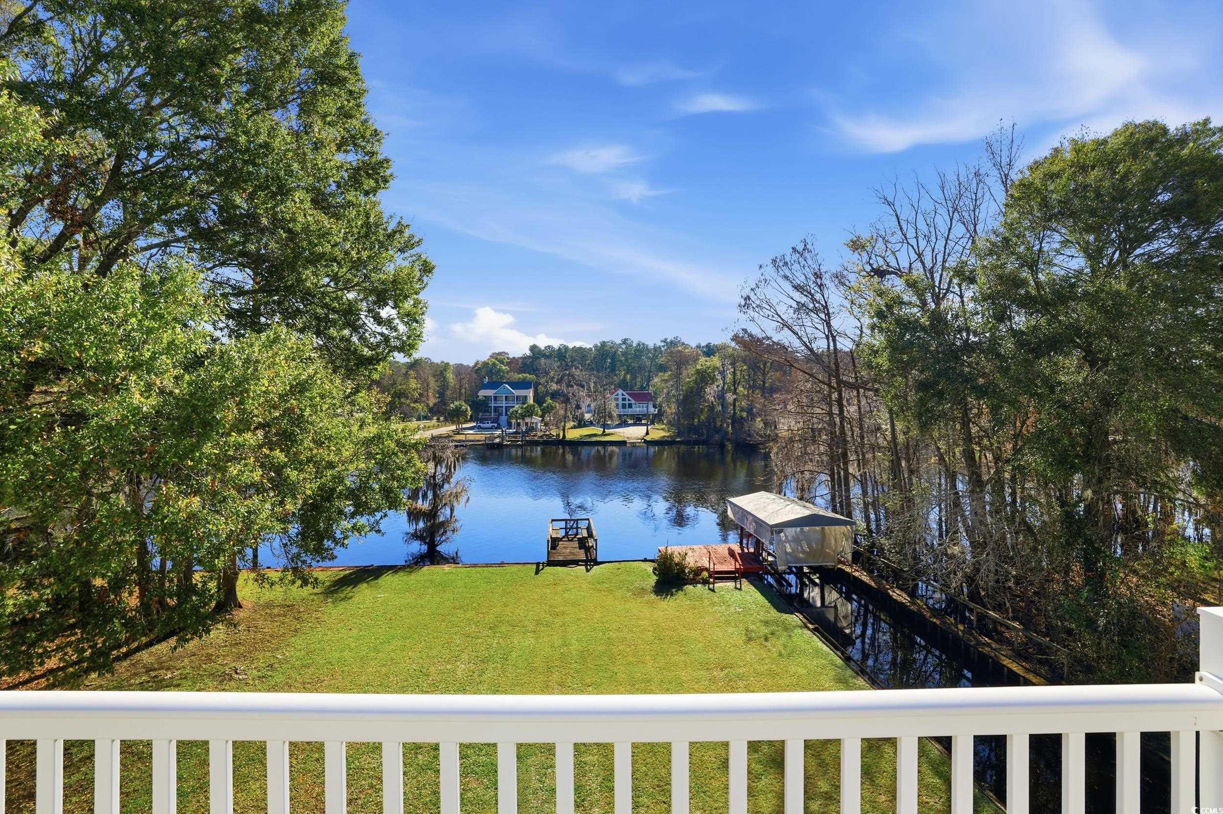 Intracoastal waterfront Living with direct access to the waterway from your dock or private boat ramp and no HOA - YES IT IS TRUE! Amazing opportunity to own your own piece of paradise along the Intracoastal Waterway. This rare double-lot property offers two private docks, a covered boat lift, and your very own boat ramp, yes, your weekends just got a major upgrade. With no HOA holding you back, you can actually enjoy the waterfront lifestyle the way it was meant to be. This 4-bedroom, 3.5-bath raised beach home delivers the space, the views, and the coastal charm buyers dream of. The two-story deck spans the back of the home, giving you front-row seats to sunrise coffee, sunset cocktails, and every peaceful moment in between. Downstairs, the massive 4-car garage offers tons of storage plus room for your workshop, toys, tools, and everything else waterfront living requires. If boating, fishing, and quiet waterfront living are what you've been wishing for, here's your chance to make it real. Properties like this don't come along often, and when they do, they don't hang around. And let's talk location: you're tucked away on the waterway but still minutes to the Myrtle Beach Airport, the beach, Market Common, shopping, dining, and everything the Grand Strand offers. Privacy when you want it, convenience when you need it. This is more than a home, it's a lifestyle, and it's waiting for the right buyer. Call me today for a tour!