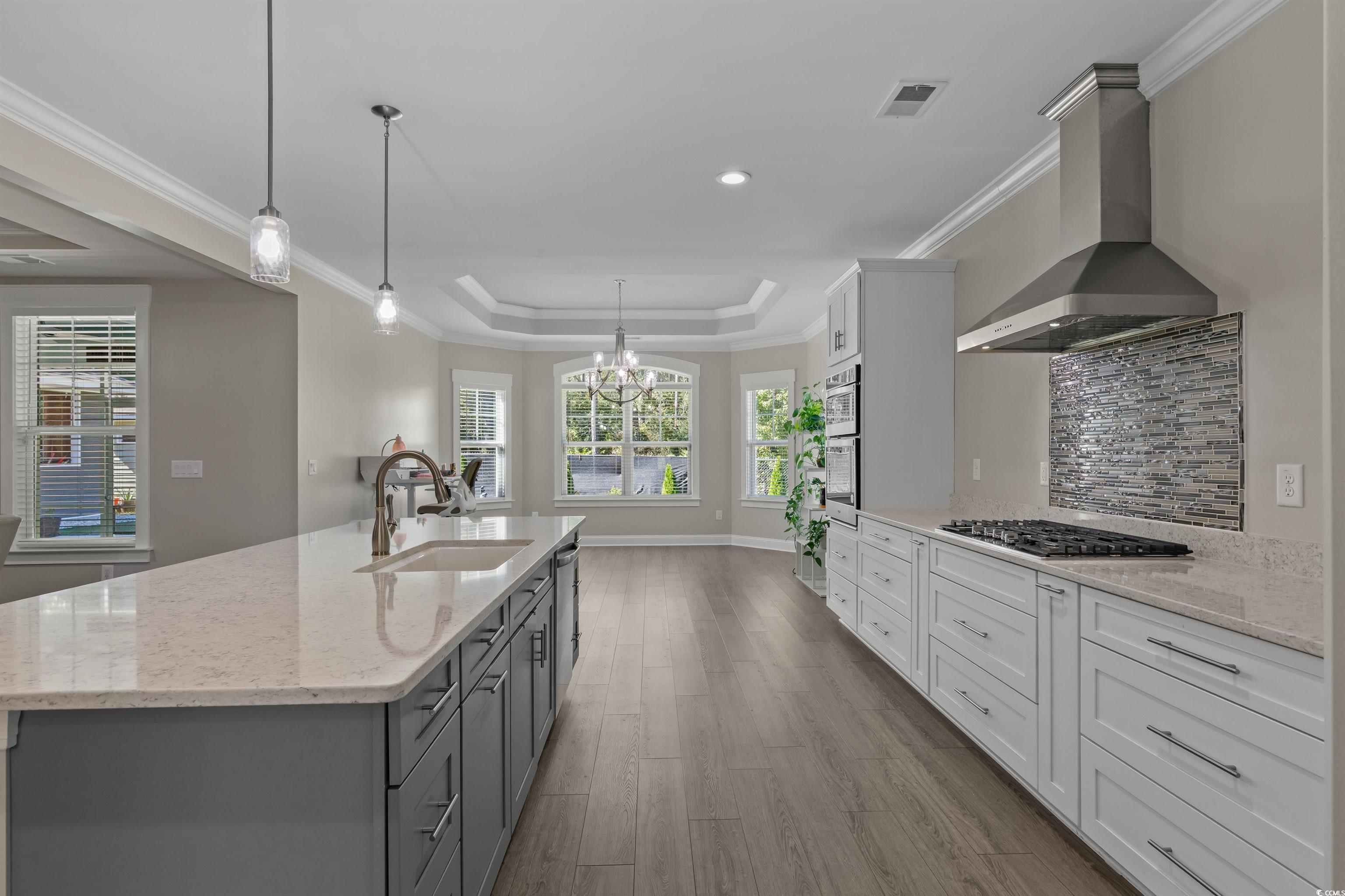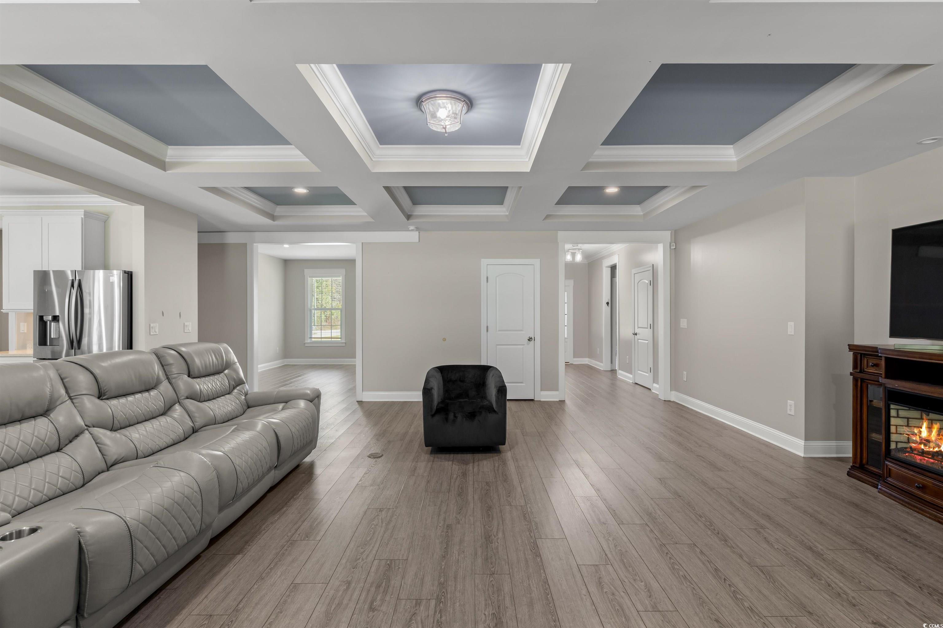 Welcome to this custom-built 4-bedroom, 3.5-bath home situated on 1.36 acres with no HOA. Owned and cherished by a single owner, this residence exudes refined craftsmanship and timeless design. Ideally positioned just off Highway 90, near Highway 22, and only 20 minutes to the beach, this property harmoniously blends luxury, privacy, and convenience in one remarkable package. Step onto the gracious front porch and enter a home that immediately impresses with its open floor plan and nearly 3,000 sq. ft. of living space on the main level alone. The coffered ceilings, luxury vinyl plank floors throughout, and tile floors in the wet areas set a tone of understated sophistication. At the heart of the home lies a gourmet chef’s kitchen, seamlessly connecting to the great room—perfect for entertaining or relaxed family living. Every detail was designed with both function and beauty in mind: a 10-foot island, white shaker cabinetry, beautiful quartz countertops, built-in oven and microwave, gas cooktop, and a walk-in pantry with custom shelving. Just off the kitchen, a large formal dining area with an elegant tray ceiling offers a refined space for family gatherings and entertaining guests. A convenient half bath is also located on the first floor for added functionality. Adjacent to the great room, a versatile bonus room provides endless possibilities as a home office, playroom, or private study. A huge laundry room offers additional convenience, featuring ample storage and workspace. The home features two luxurious primary suites on the first floor, ideal for multi-generational living or distinguished guest quarters. The main primary suite is a true retreat, showcasing a double tray ceiling, spa-style ensuite bath with a floor-to-ceiling tiled shower, rainfall shower head and handheld sprayer, dual vanity, and an oversized custom closet with built-in drawers and shelving. The secondary primary suite offers its own private bath and abundant space for guests or family. Upstairs is an additional 900 sq. ft., where you’ll find two spacious guest bedrooms, a full bath, and an inviting loft area that’s perfect for a media room, home gym, or creative lounge. Outdoor living is just as impressive, with a screened-in back porch, fully fenced backyard, and a separate entertainment area already prepped for an outdoor kitchen and equipped with electric service. A detached storage shed provides extra utility. Car enthusiasts and hobbyists will appreciate the 24x30 detached garage, featuring two 12-foot roll-up doors—perfect for boat, RV, or additional vehicle storage. The extra-long concrete driveway and 325 feet of road frontage offer ample parking and even the potential to build another home on the adjoining portion of the lot. The wooded back portion of the property provides additional privacy and a peaceful natural backdrop. This extraordinary property is a rare find, blending modern luxury, thoughtful design, and unparalleled versatility. Every element—indoors and out—has been crafted to provide comfort, style, and the freedom to live without compromise. Square footage is deemed reliable, but not guaranteed. Buyer to confirm.