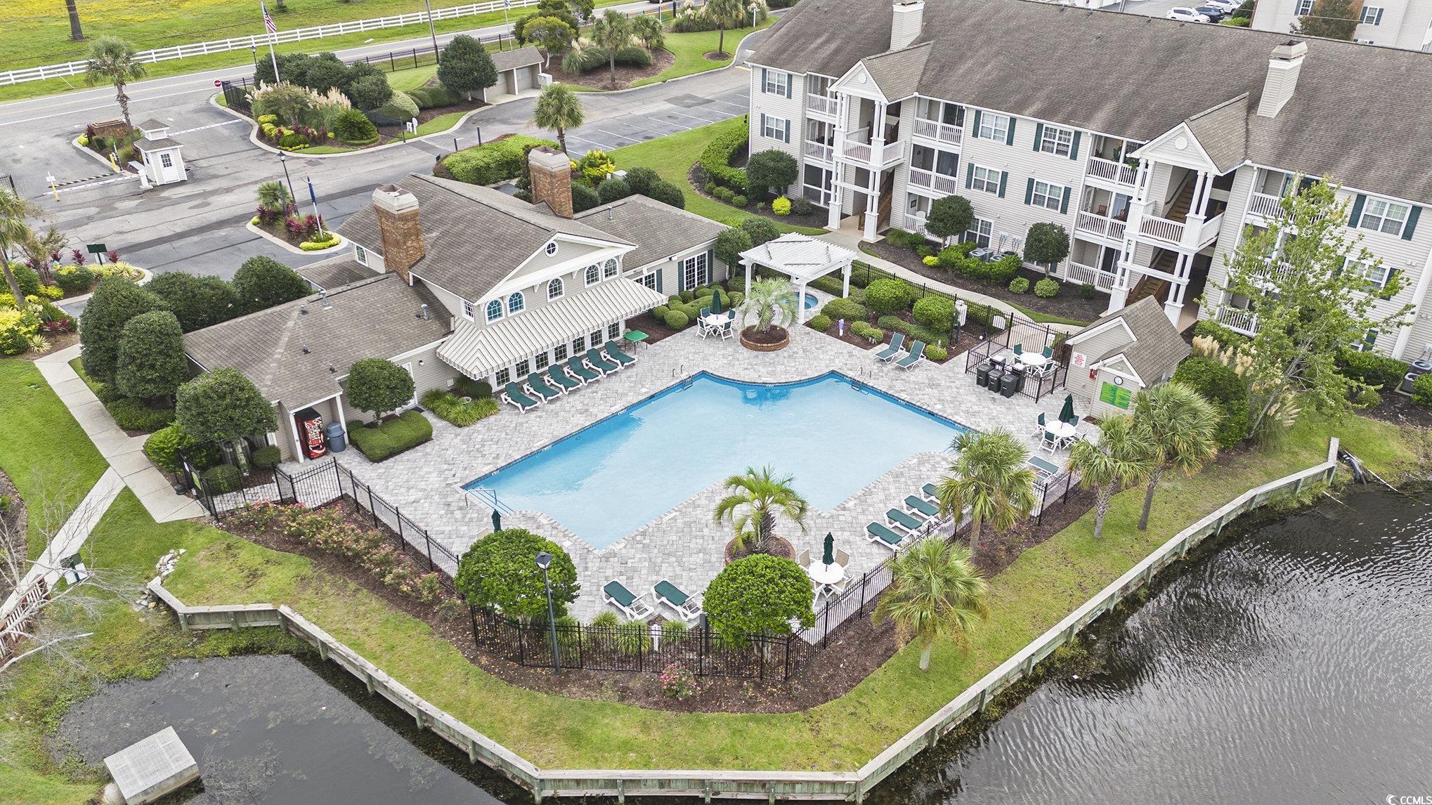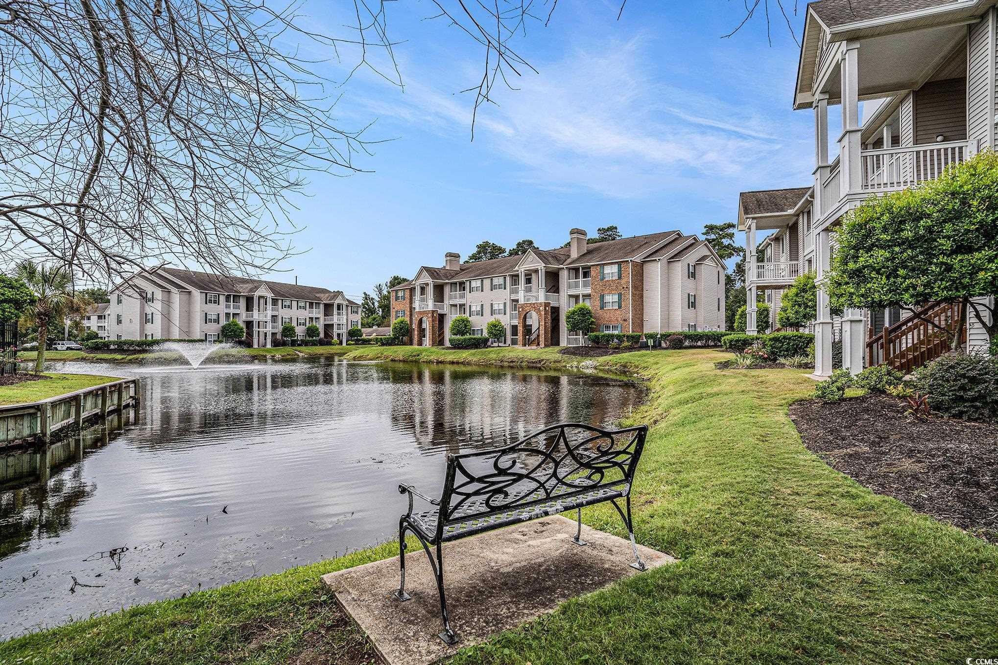 Awesome rental or second home opportunity in Broadway Station! One of the few Vaulted Ceiling units available with a Pond and Pool view! The unit boasts a fireplace in the great room and an amazing covered porch with views and ocean breezes! The owner's suite in the back also offers views and a redone owner's bath with tiled shower!