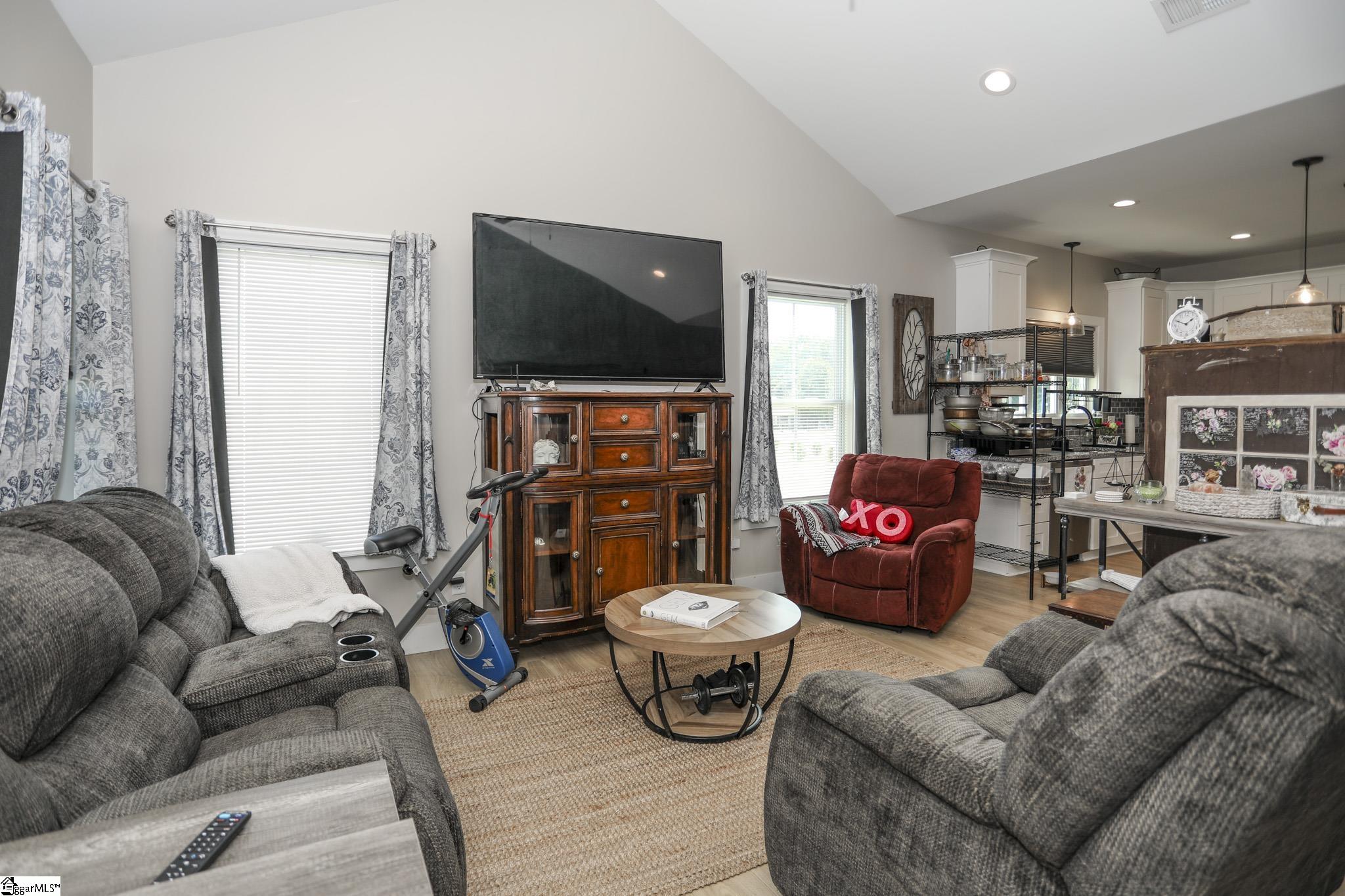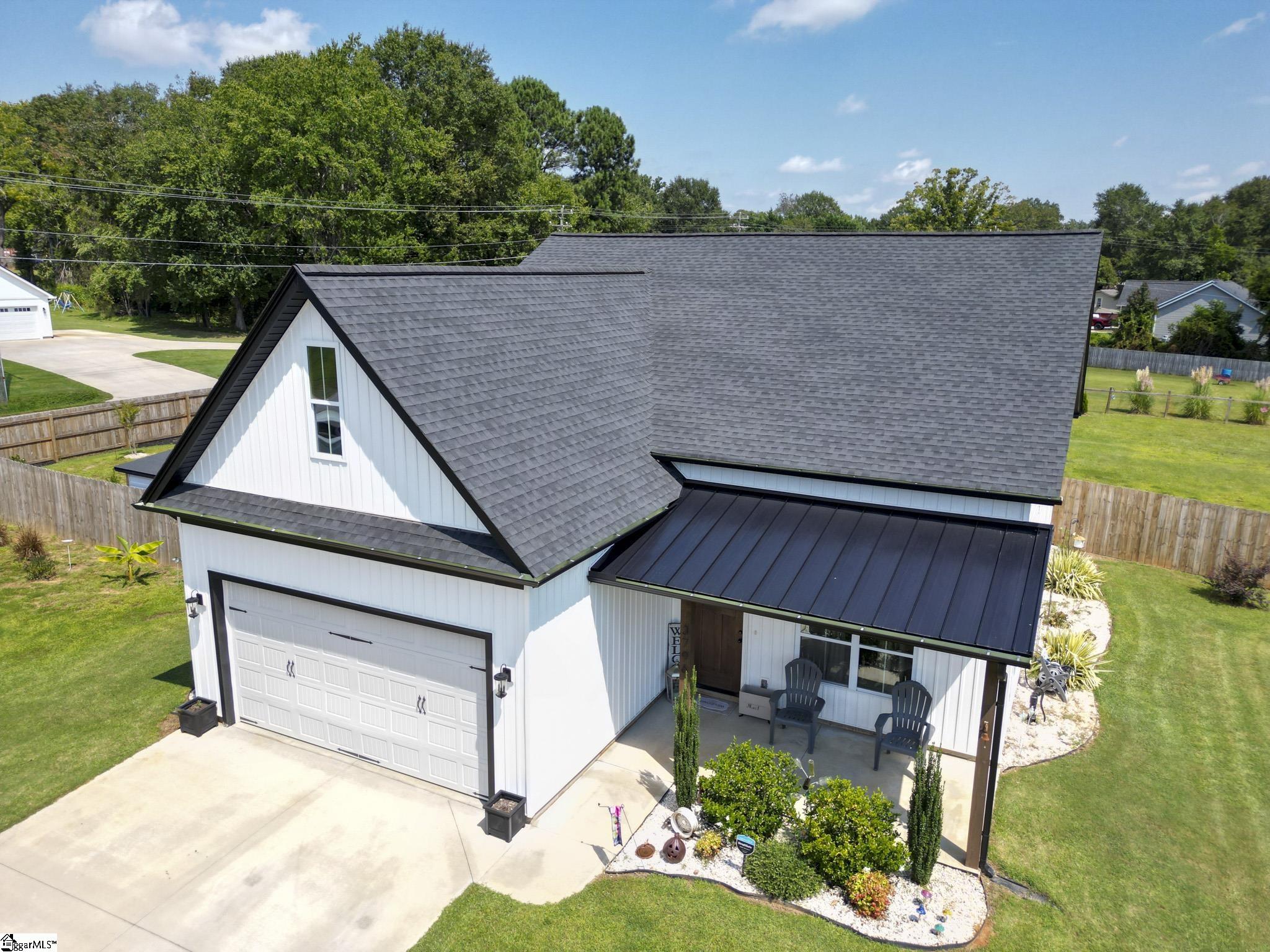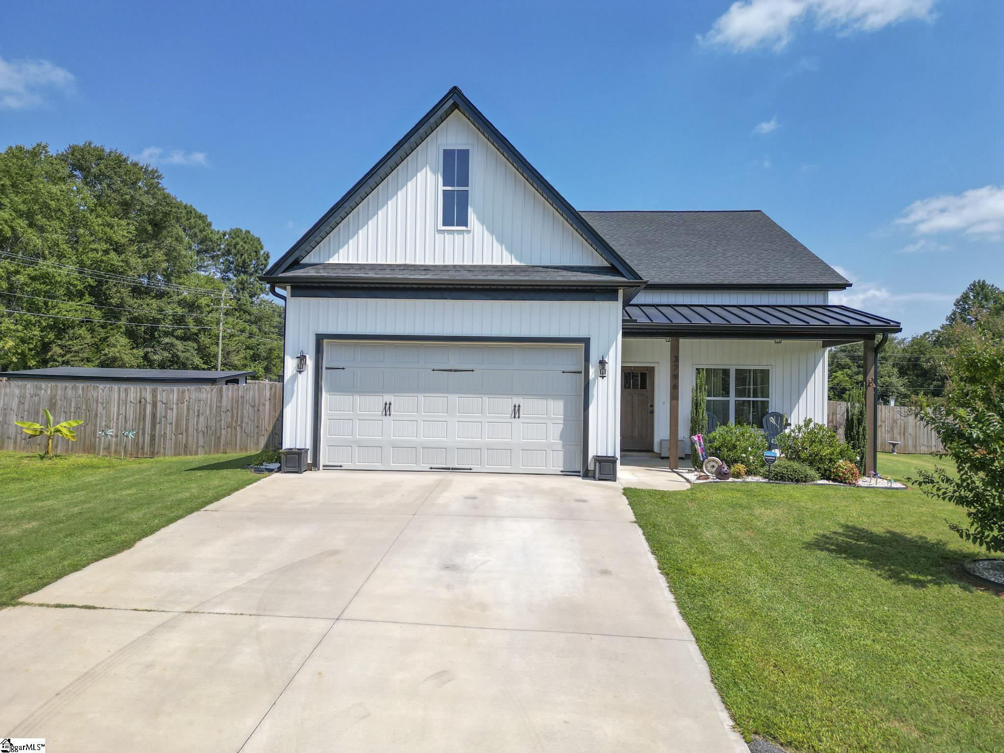 Welcome to 3796 Camp Road, a 3-bedroom, 2-bath ranch-style home on over an acre of level land with no HOA! Located in the heart of Greer, this single-level residence blends functionality, modern finishes, and wide-open space both inside and out. As you arrive, you'll be greeted by a charming front porch and a 2-car garage with a yard door for added convenience. Step inside to discover an open floor plan with smooth ceilings, luxury laminate flooring in the main areas, and natural light throughout. The spacious living room seamlessly connects to the kitchen, which features granite countertops, soft-close cabinetry, stainless steel appliances, a walk-in pantry, and a center island perfect for gathering. The split-bedroom layout ensures privacy for the spacious primary suite, which includes a walk-in closet, dual sinks, a tiled shower, and a separate soaking tub. Two additional bedrooms and a full bath are positioned on the opposite side of the home, ideal for guests or family. Enjoy peaceful evenings on the covered back porch overlooking your expansive backyard with endless possibilities. Add a garden, pool, or workshop with no restrictions. Located just 15 minutes to Downtown Greer and 25 minutes to GSP Airport, this home is move-in ready and waiting for you!