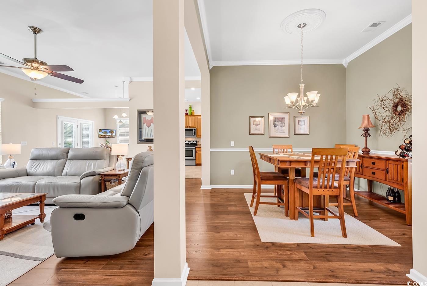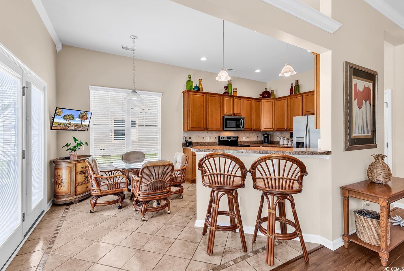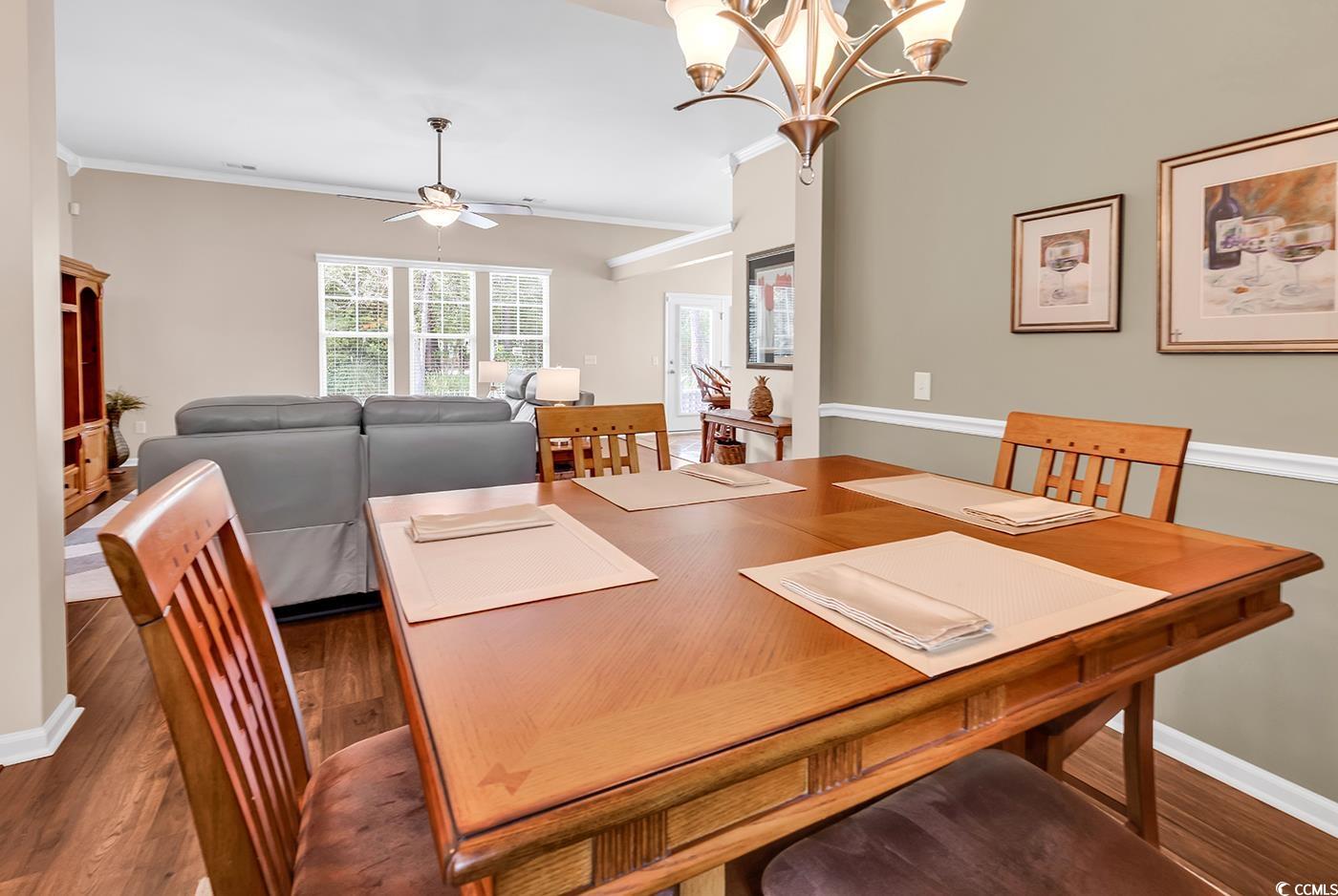 Welcome to 3802 Seedling Ct., a charming single-family home nestled in the desirable Brookstone section of Barefoot Resort in North Myrtle Beach, SC. This home offers three generously sized bedrooms and two full bathrooms, along with numerous valuable upgrades. Interior Features Step inside to discover a bright and open atmosphere created by brand-new flooring, elegant crown molding, and vaulted ceilings. The residence boasts a formal dining area perfect for entertaining, and a kitchen fully equipped with Whirlpool appliances, including the refrigerator, range, microwave, dishwasher, washer, and dryer. Recent Updates & Efficiency Enjoy peace of mind with recent updates such as a serviced HVAC system, a roof inspection, a window inspection, and new smoke detectors. Comfort and energy efficiency are enhanced by five ceiling fans, hurricane/storm shields, and an upgraded security system. Outdoor Living & Garage The exterior features a private patio and an irrigated yard, ideal for relaxation or outdoor gatherings. The spacious two-car garage is a homeowner's dream, complete with a workbench, vice, grinder, and an electric lift to the attic. The attic itself offers impressive storage solutions with custom shelving, attic flooring, and ample added storage throughout. Barefoot Resort Amenities Living in Brookstone grants you access to Barefoot Resort’s exceptional amenities. The Residents Club provides a clubhouse, fitness center, resort-style pool, playground, and sports courts. Additionally, residents can enjoy a private beachfront cabana with lounge seating and a scenic beach walkway. This location is also a paradise for golf enthusiasts. This home perfectly blends thoughtful upgrades, resort-style living, and an unbeatable location. Schedule your visit with Ashley Brooks or visit in show time for a tour.