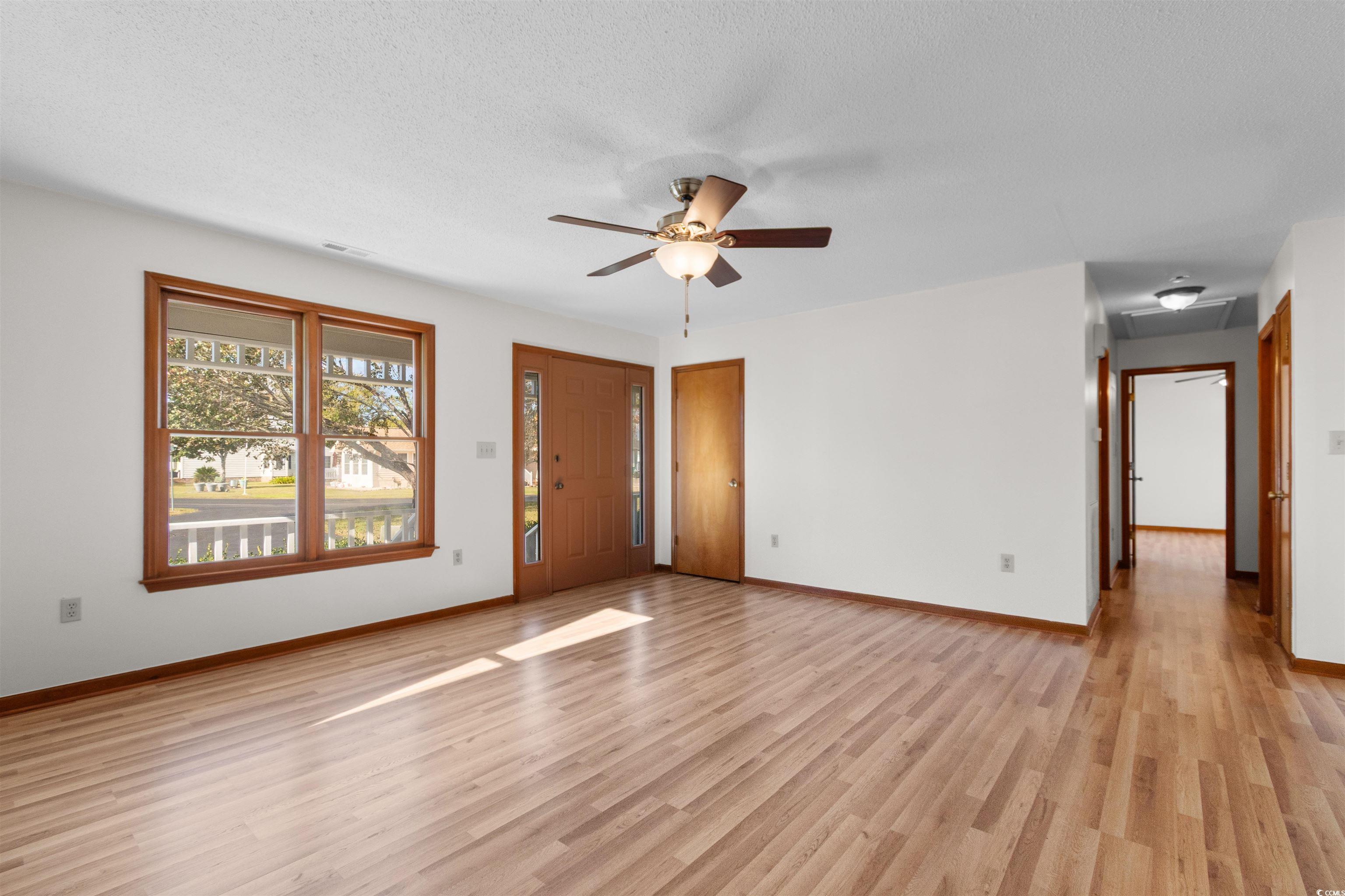 Beautifully updated home in Little River, near the hospital. This home features two large bedrooms and a second space that can be used as a third. The stunning wood floors are new and run throughout. The home has a fresh coat of neutral interior and exterior paint. The home sits on a lot and a half, in the conveniently located neighborhood of Golfview Plantation. The backyard has a 6' fence for privacy and a large fully wired workshop. The primary bedroom features lots of natural light, two large closets, and an updated bathroom with a walk-in shower and new vanity. Enjoy your evenings relaxing on the deck or soaking in the hot tub. New roof and HVAC in 2024. The neighborhood has a well maintained pool. This would be a great second or primary home.