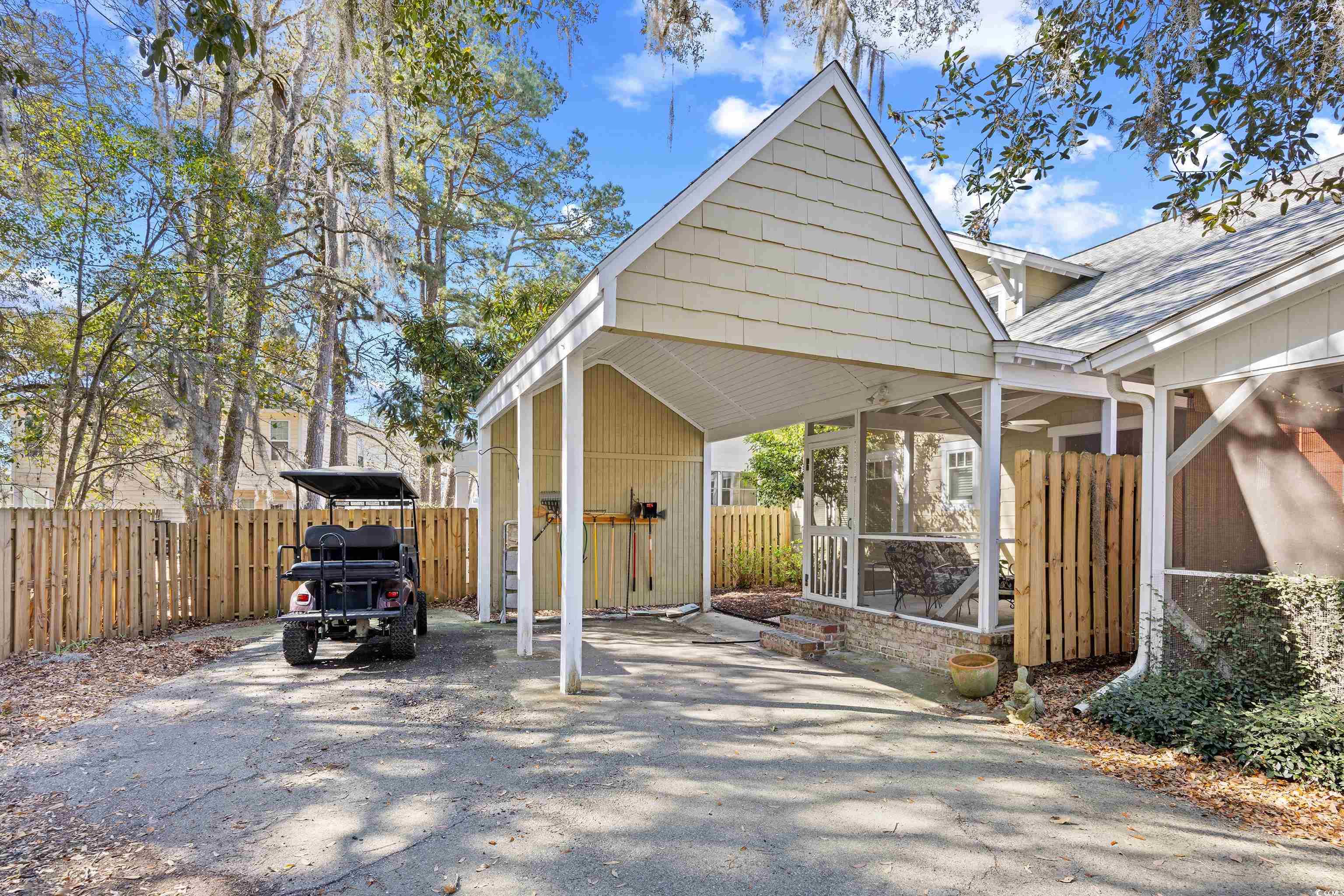 This remarkable 3-bedroom, 3.5-bathroom home features stunning hardwood floors, a spacious first-floor master suite, a large kitchen with granite countertops and stainless steel appliances, and a bar area. Enjoy the airy feel with 9-foot ceilings and cozy up by the fireplace. The screened-in porch in the rear of the unit offers a quiet spot to relax. There's also a carport and a lovely yard with a Pawleys Island hammock, perfect for unwinding. The price has been reduced to cover a flooring allowance. On the second floor, you’ll find two additional bedrooms with baths, along with a generous study or office space, plus ample storage space. The community pool and the Fish House are fantastic amenities for hosting family and friends (the Fish House is available for a small fee). Unit 8 B is located in the peaceful back of the neighborhood and even offers a little gardening space. Room to park three vehicles. The Cottage Homes at Da Gullah Way are conveniently situated just east of Highway 17, making for a quick golf cart ride to the beach! Pawleys is just a short drive to Charleston or Myrtle Beach, along with many golf courses around Pawleys and outstanding restaurants, too! Don't miss this one!