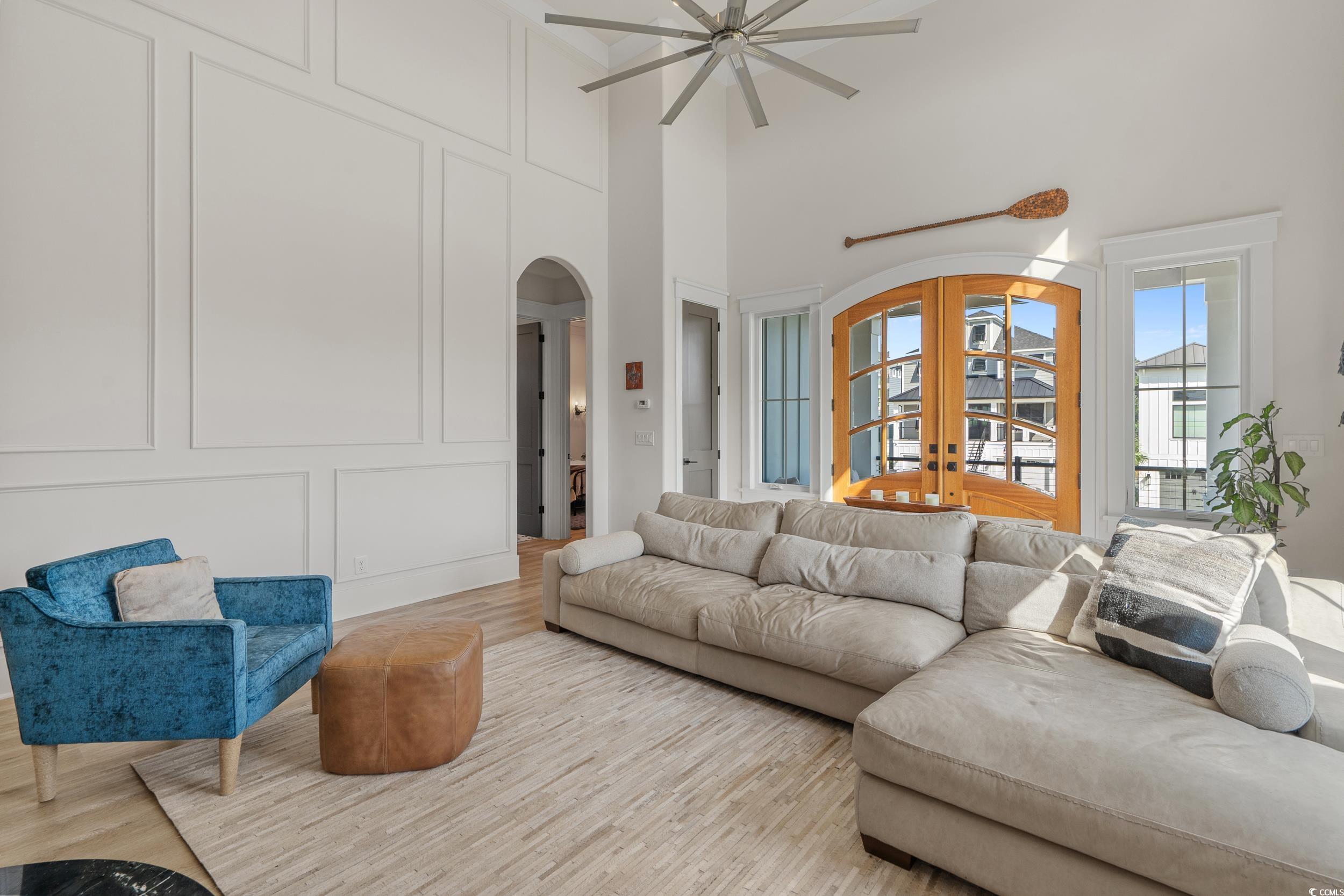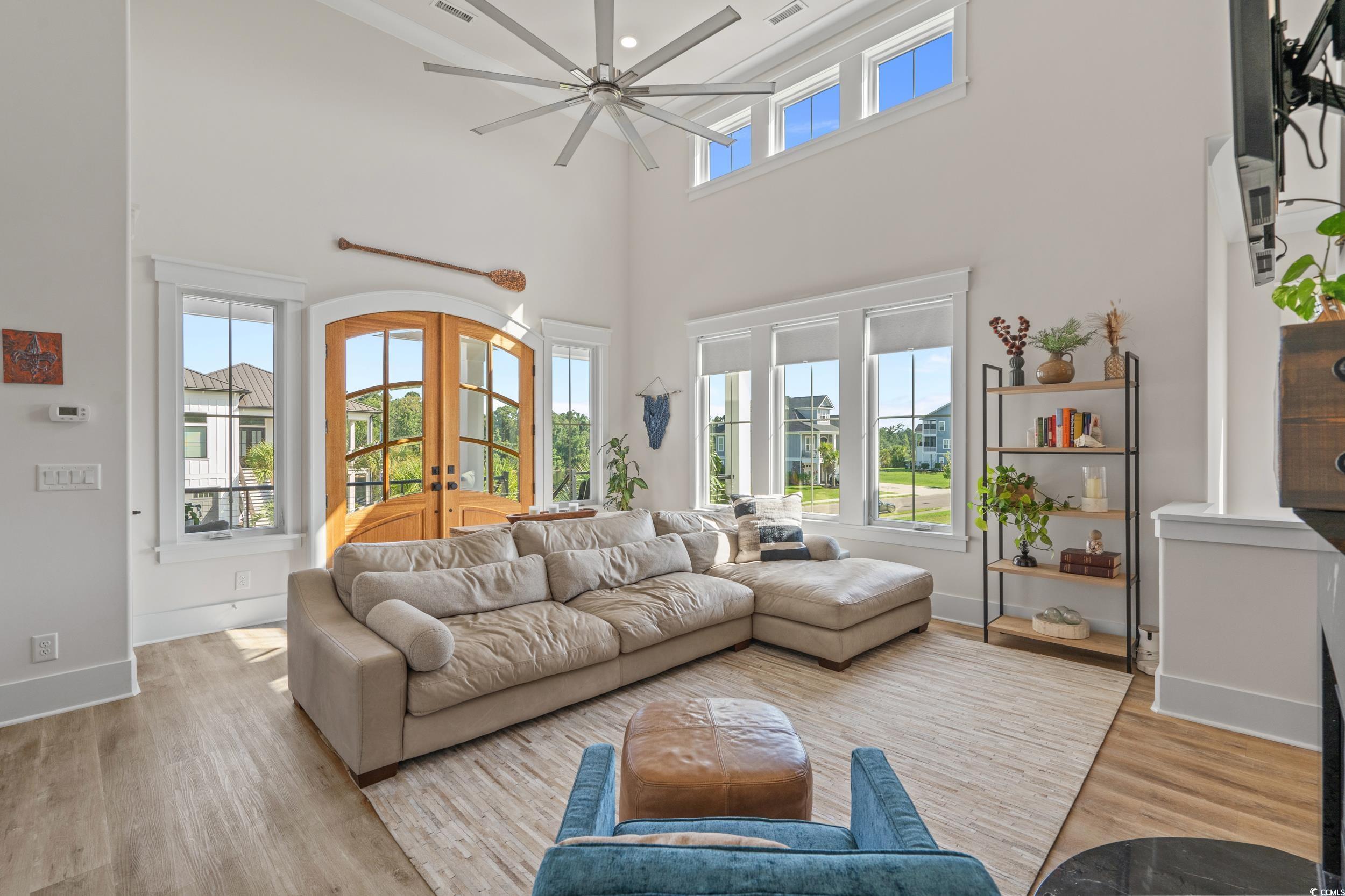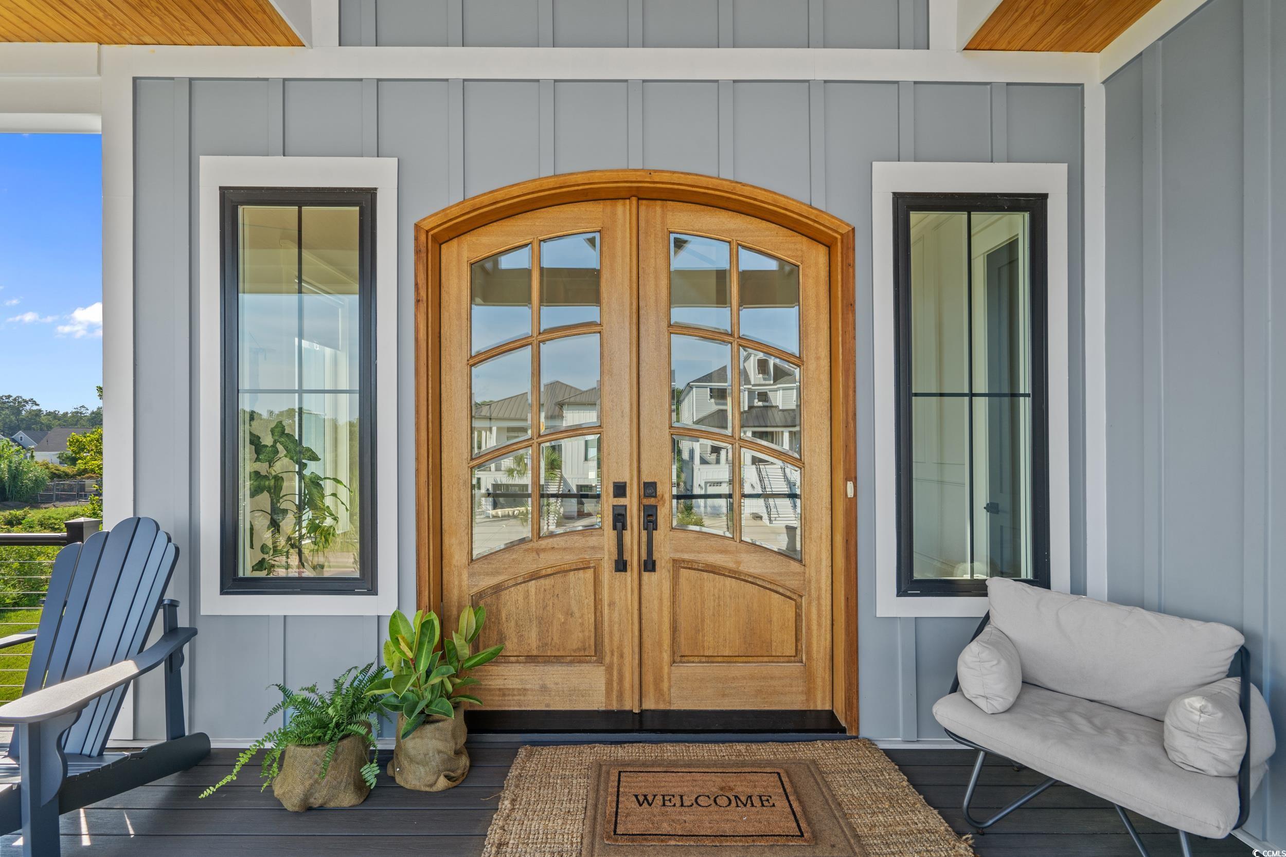 Price Improvement!! Some furnishings negotiable! Welcome to your dream home in the prestigious gated community of The Boardwalk on the Waterway! This exceptional 5-bedroom, 3.5-bathroom residence, situated on a premier corner lot, is a stunning showcase of modern elegance, thoughtful design, and high-end finishes throughout. Step through the arched 8’ front entry on the second floor and into a bright, open-concept layout where natural light pours through the expansive windows, creating an inviting and sophisticated atmosphere. The spacious living areas offer the perfect blend of openness and definition, ideal for both everyday living and entertaining. Culinary enthusiasts will fall in love with not one—but two—beautifully appointed kitchens, featuring top-of-the-line appliances inclusive of a commercial side-by-side Frigidaire refrigerator/freezer, trash compactor, not one but TWO dishwashers in the main kitchen and another dishwasher in the secondary kitchen on the first floor. The versatile bonus living space is perfect as a private guest suite, in-law quarters, or retreat, providing added flexibility for multi-generational living or hosting. A state-of-the-art whole-house sound system transforms this home into an entertainer’s paradise, while breathtaking views of the Intracoastal Waterway offer a daily dose of serenity. Situated on a premium lot adjacent to HOA-owned property and directly across from the boardwalk access, providing a forever view of the ICW, this location is truly unmatched. Luxury finishes abound, including quartz countertops, a custom kitchen wood hood, high-end light fixtures and ceiling fans, dramatic wainscoting in the second story living room and a double-sided fireplace with contemporary black granite surround. The custom elevator not only adds function and convenience, but is aesthetically a standout feature with its detailed trim work, brass accents, and marble basket-weave flooring. Functionality meets form with features like a tankless Rinnai water heater, 8-camera security system, outdoor shower, and a fully fenced backyard that’s pool-ready—offering endless possibilities for your own private oasis. Storage is no object with over 900 square feet of garage space, outfitted with beautiful maintenance-free epoxy-coated floors and an EV charger. The Boardwalk on the Waterway is a highly sought-after, gated community that embraces the best of the coastal lifestyle. This home isn’t just a place to live—it’s a statement of design, comfort, and lifestyle. Schedule your private tour today and experience the exceptional quality and unique charm of this one-of-a-kind home.