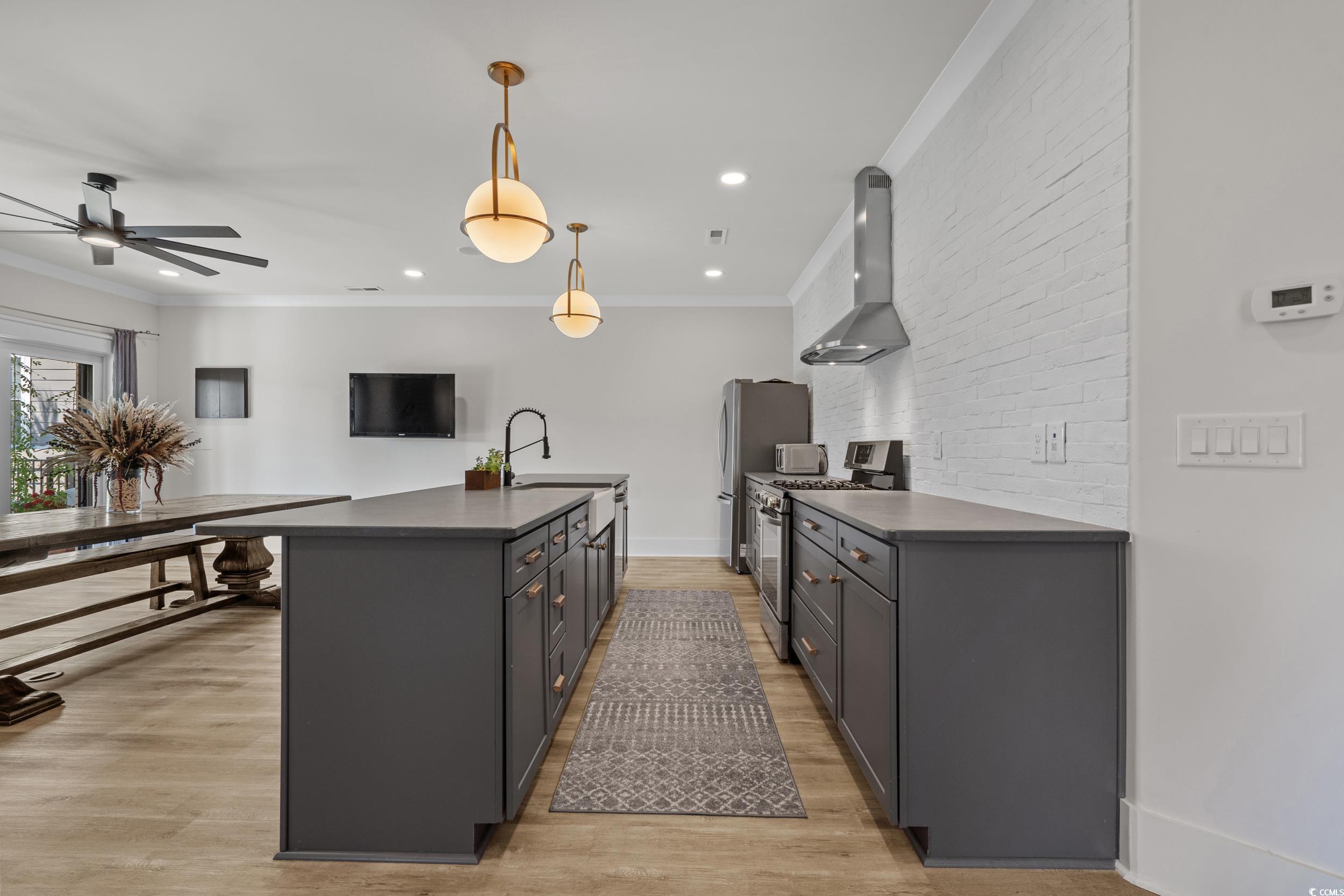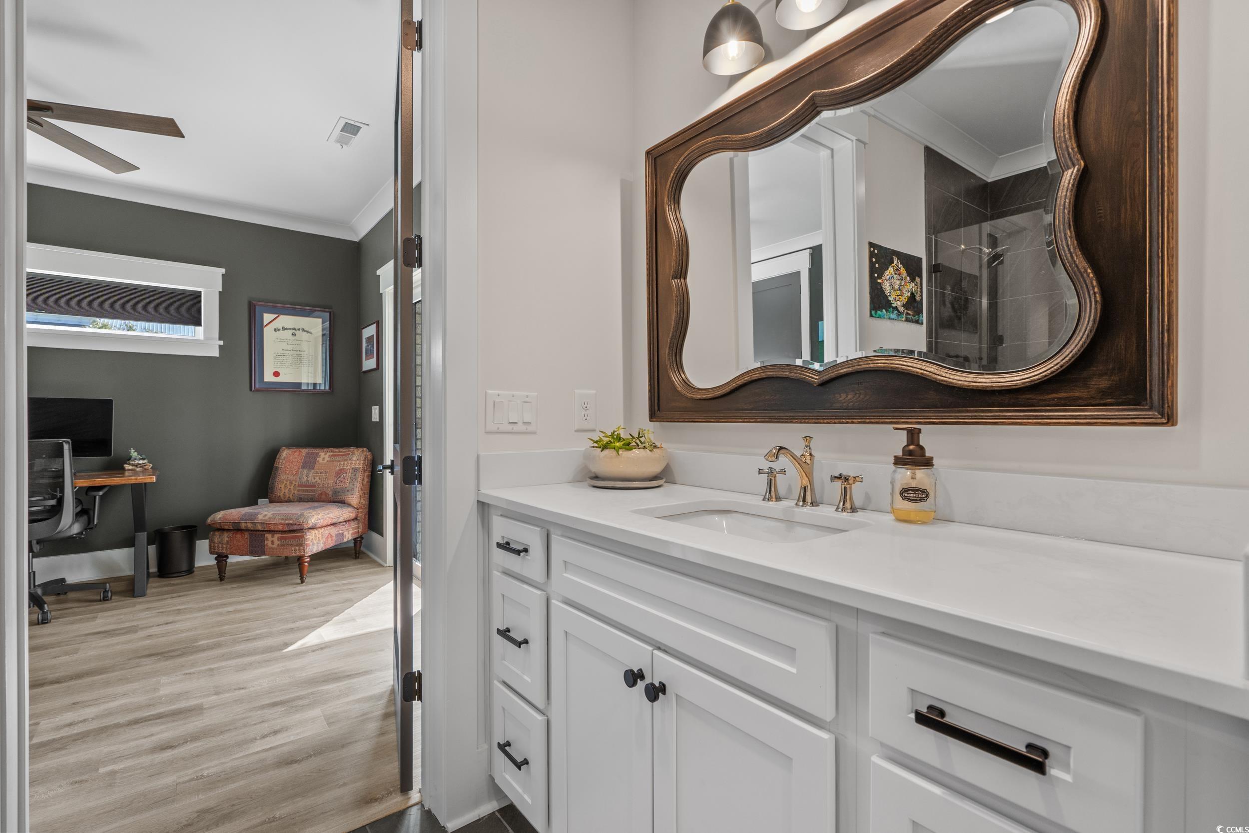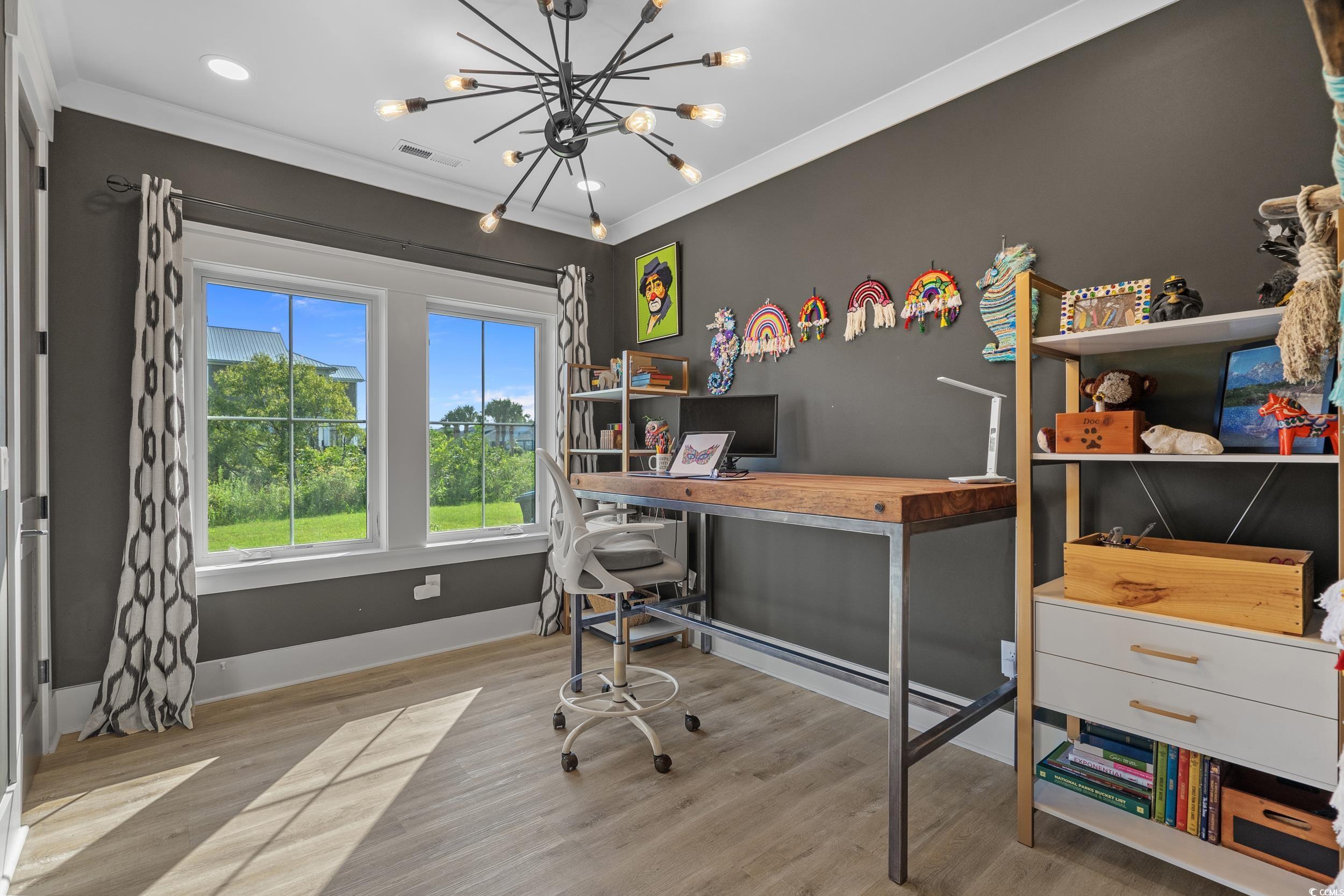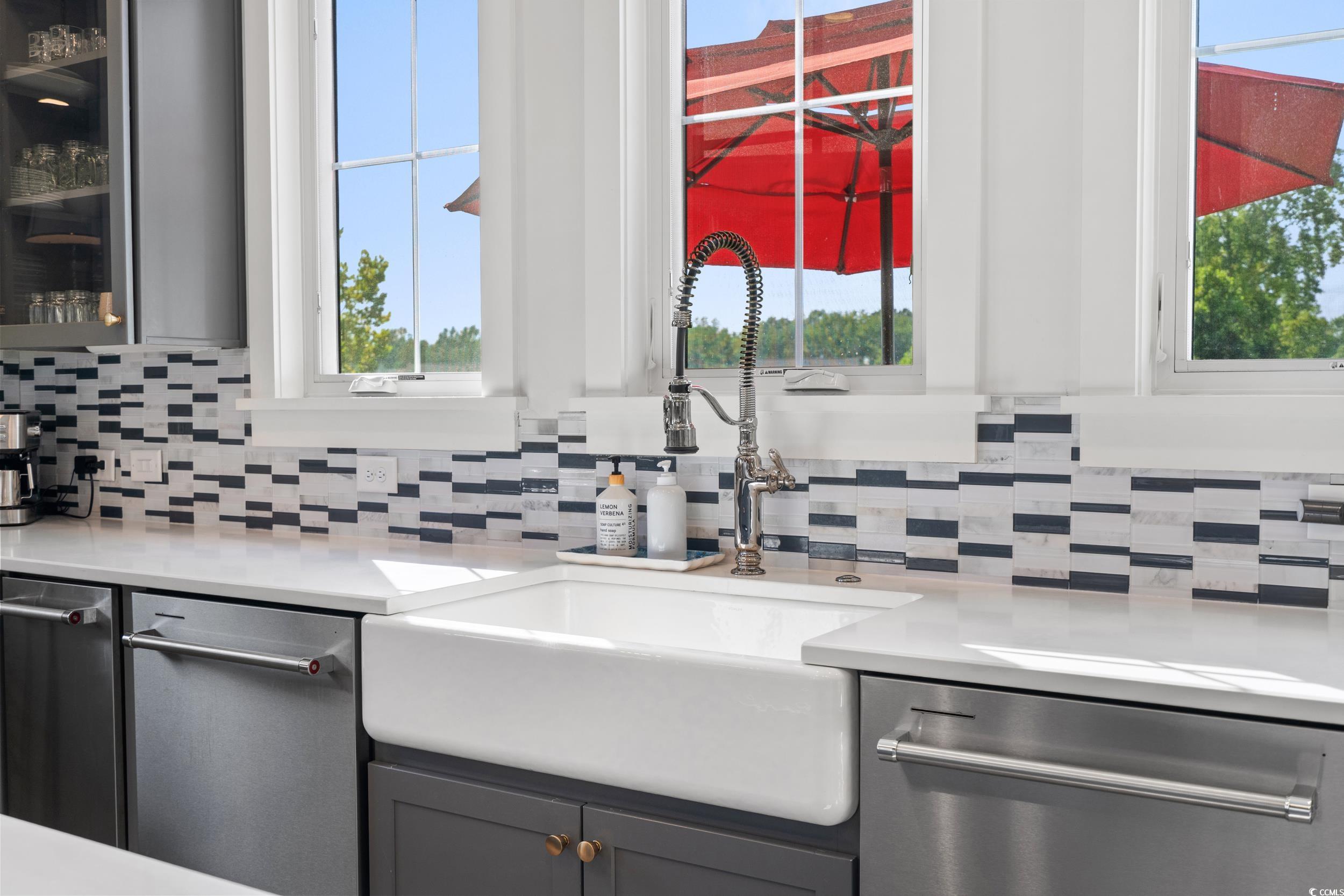 Price Improvement!! Some furnishings negotiable! Welcome to your dream home in the prestigious gated community of The Boardwalk on the Waterway! This exceptional 5-bedroom, 3.5-bathroom residence, situated on a premier corner lot, is a stunning showcase of modern elegance, thoughtful design, and high-end finishes throughout. Step through the arched 8’ front entry on the second floor and into a bright, open-concept layout where natural light pours through the expansive windows, creating an inviting and sophisticated atmosphere. The spacious living areas offer the perfect blend of openness and definition, ideal for both everyday living and entertaining. Culinary enthusiasts will fall in love with not one—but two—beautifully appointed kitchens, featuring top-of-the-line appliances inclusive of a commercial side-by-side Frigidaire refrigerator/freezer, trash compactor, not one but TWO dishwashers in the main kitchen and another dishwasher in the secondary kitchen on the first floor. The versatile bonus living space is perfect as a private guest suite, in-law quarters, or retreat, providing added flexibility for multi-generational living or hosting. A state-of-the-art whole-house sound system transforms this home into an entertainer’s paradise, while breathtaking views of the Intracoastal Waterway offer a daily dose of serenity. Situated on a premium lot adjacent to HOA-owned property and directly across from the boardwalk access, providing a forever view of the ICW, this location is truly unmatched. Luxury finishes abound, including quartz countertops, a custom kitchen wood hood, high-end light fixtures and ceiling fans, dramatic wainscoting in the second story living room and a double-sided fireplace with contemporary black granite surround. The custom elevator not only adds function and convenience, but is aesthetically a standout feature with its detailed trim work, brass accents, and marble basket-weave flooring. Functionality meets form with features like a tankless Rinnai water heater, 8-camera security system, outdoor shower, and a fully fenced backyard that’s pool-ready—offering endless possibilities for your own private oasis. Storage is no object with over 900 square feet of garage space, outfitted with beautiful maintenance-free epoxy-coated floors and an EV charger. The Boardwalk on the Waterway is a highly sought-after, gated community that embraces the best of the coastal lifestyle. This home isn’t just a place to live—it’s a statement of design, comfort, and lifestyle. Schedule your private tour today and experience the exceptional quality and unique charm of this one-of-a-kind home.