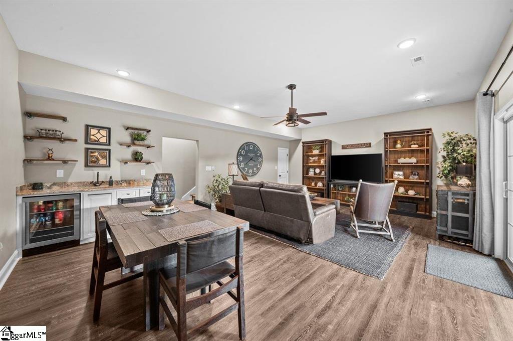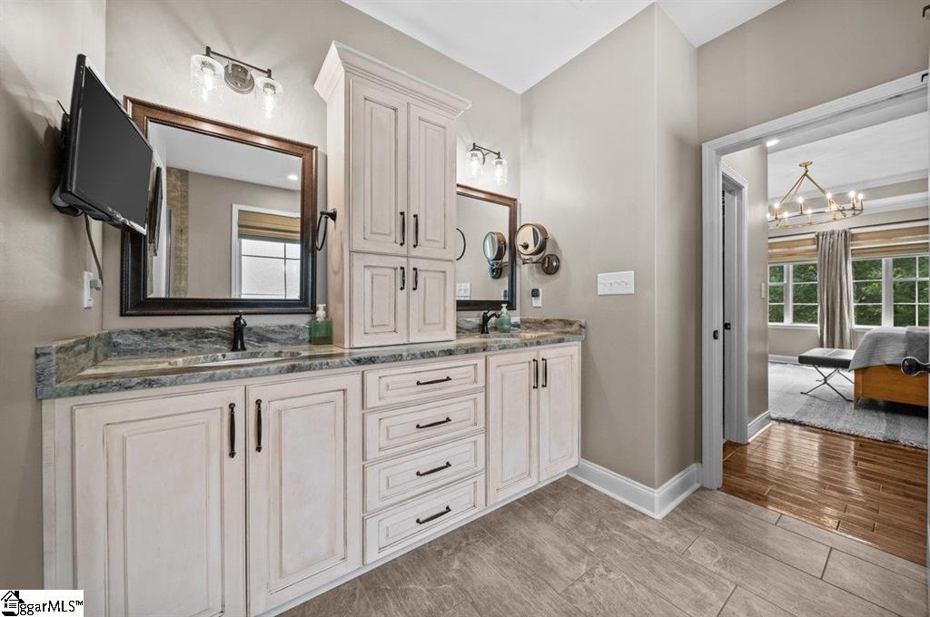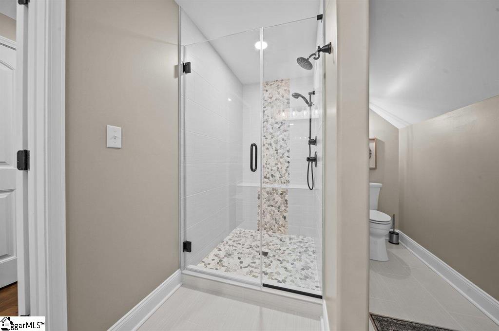 Spring is here and you'll love 383 Island Green Lane, Inman SC — a stunning custom-built home nestled in the prestigious Woodfin Ridge Golf Course community. Perfectly situated at the end of a quiet cul-de-sac with no through traffic, this exceptional property offers peace, privacy, and beautiful water views of Lake Bowen Reservoir right from your own backyard. This spacious residence features 5bedrooms, 4.5bathrooms, and a finished basement, combining luxury, functionality, and thoughtful design across every level. As you step through the foyer, you’re greeted by an inviting family room highlighted by a stone gas-log fireplace, custom built-ins, and soaring ceilings with exposed wooden beams. The open-concept layout flows seamlessly into a gourmet kitchen designed for entertaining, complete with a large island, quartzite countertops, custom cabinetry, gas range, tile backsplash, and under-cabinet lighting A screened-in porch just off the breakfast area offers the perfect spot for morning coffee while watching hummingbirds, and the main-level owner’s suite is a true retreat with a spa-inspired bath featuring a tiled shower, oversized jetted tub, dual vanities, and two walk-in closets. Two additional guest bedrooms and a full bath complete the main level, while upstairs you’ll find a guest suite with a bathroom and walk-in tile shower. The finished basement expands the home’s living space with a versatile rec room, wet bar/kitchenette, additional bedroom, and full bath —ideal for guests or multi-generational living. There’s also 1200 sq. ft. of unfinished basement space with a workshop, storage, and a roll-up door for easy access to lawn equipment or a golf cart. Outdoor living is at its finest here, with multiple covered porches and entertaining areas on both levels — perfect for grilling, relaxing by the outdoor stone fireplace, or simply taking in the peaceful water views. A cleared path down to the water’s edge offers a quiet place to fish or unwind by the stocked lake. Additional upgrades make this home truly move-in ready, including a new 5-ton HVAC system, renovated laundry room with new cabinets and counters, fresh carpet, new backyard sod and fencing, and an irrigation system. Did I mention a Generac generator?! Located just minutes from the golf clubhouse, restaurant, pool, tennis courts, and playground, and close to shopping, schools, and I-26 for easy commuting, this home truly has it all — space, luxury, views, and a lifestyle you’ll love.