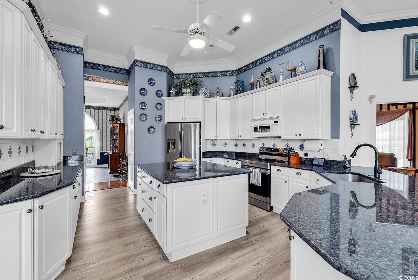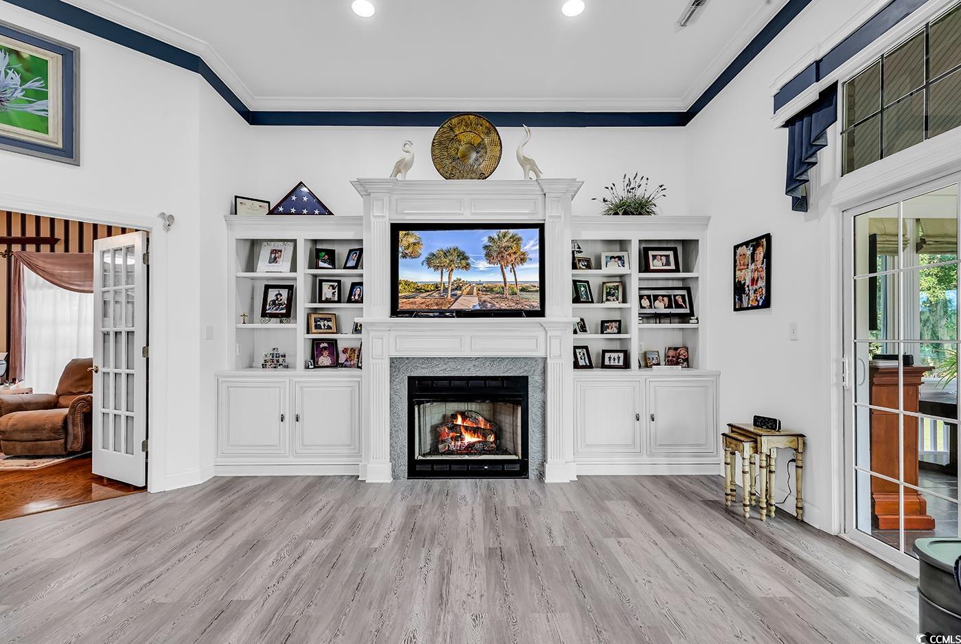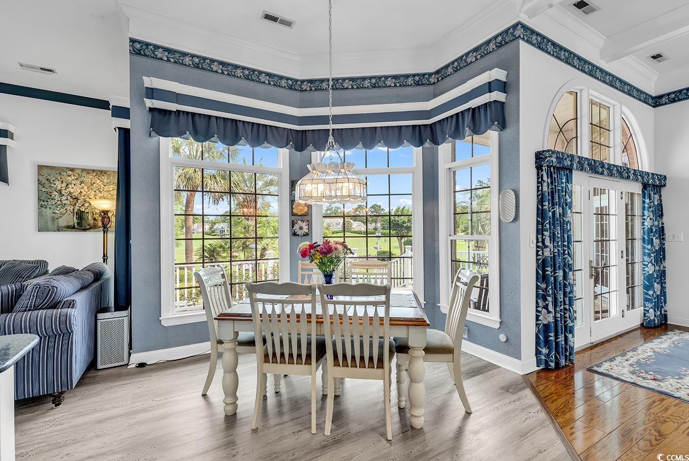Welcome to 383 Oatland Lake Road, a skillfully designed, custom-built, all brick home nestled in the historic and exclusive Willbrook Plantation Community! Proudly offered by the original owners, this exceptional home presents a unique opportunity to embrace a lifestyle of elegance and comfort while surrounded by natural beauty. Situated on an exquisitely landscaped .65-acre lot, the home offers unobstructed backyard views of the 7th hole and fairway of the Dan Maples designed Willbrook Plantation golf course, as well as unrestricted views of the 3rd hole and fairway presented from the front of the home. Custom built with exceptional quality and superior craftsmanship, the home offers a newer roof (approx. 6 yrs old) and newer HVAC systems (2022, 2020 & mini-split 2017). This bright and cheerful home offers 4 Bedrooms, 3 Full and One Half Baths, a generously sized Great Room, impressive Kitchen, appealing Family Room, separate Office, exceptional Carolina Room, a generously sized Bonus Room/Bedroom on the second level with a full bath and an abundance of additional storage space, a laundry room, an over-sized 2 car side-load attached garage and a separate workshop with private entrance. The tastefully appointed Kitchen features attractive LVT flooring, granite countertops, stainless steel appliances, custom 42” cabinets, breakfast bar, breakfast nook, work island and a new range. The Formal Dining Room is the perfect place for family gatherings or when entertaining friends. This lovely room has a set of tall windows with an above transom that showcases the beautifully landscaped front yard and captivating golf course views. The Great Room is accented with an impressive coffered ceiling, offering stunning views of the gorgeous backyard and manicured golf course beyond. Additionally, the custom French Doors enhanced with an elegant glass transom above leads to the sizeable, raised patio overlooking the surroundings making this the ideal place to sip that early morning coffee or later in the day with a favorite beverage while enjoying the company of family and friends. The Carolina Room also offers stunning golf course views through the floor-to-ceiling windows that enclose this charming addition that can be enjoyed throughout all seasons due to the added mini-split. The inviting Family Room has an attractive gas log fireplace embellished by custom, decorative built-ins. The Primary Bedrooms also offers a cozy gas log fireplace to offset those chilly nights, along with hardwood flooring, two walk-in closets and a linen closet. The en-suite has a double vanity sink, tub and separate glass shower. The main level also provides two guest bedrooms, office, half bath and a laundry room with tile flooring, utility sink and full-size washer & dryer. The extensively spacious Bonus Room is located on the second level with a full bath with a tiled, glass shower and pedestal sink. This versatile room easily accommodates guests or family with privacy and space while also providing an abundance of storage space. The side-load garage also offers additional storage. The separate workshop with private entrance can be utilized for an endless number of possible uses including a craft room, sewing room, mancave, etc. 3M Hurricane safety film was added to all windows except in the Carolina Room. Willbrook Plantation is a gated golf course community that offers exceptional amenities to residents including a community pool and clubhouse. Residents can also enjoy a short golf cart ride to the private ocean beach access at Litchfield by the Sea providing abundant parking, tennis courts, beach clubhouse, showers, restroom conveniences, sundecks, fishing/crabbing docks as well as miles of gorgeous ocean beach to explore and enjoy! The home’s location provides easy access to some of the very best features the area has to offer including an abundance of incredible restaurants, the renowned Brookgreen Gardens, Huntington State Park and Historic Charleston.