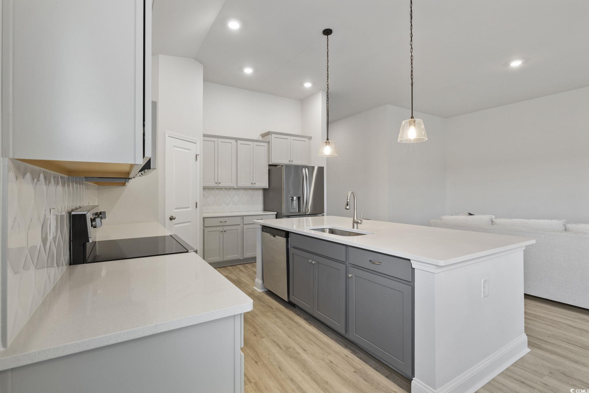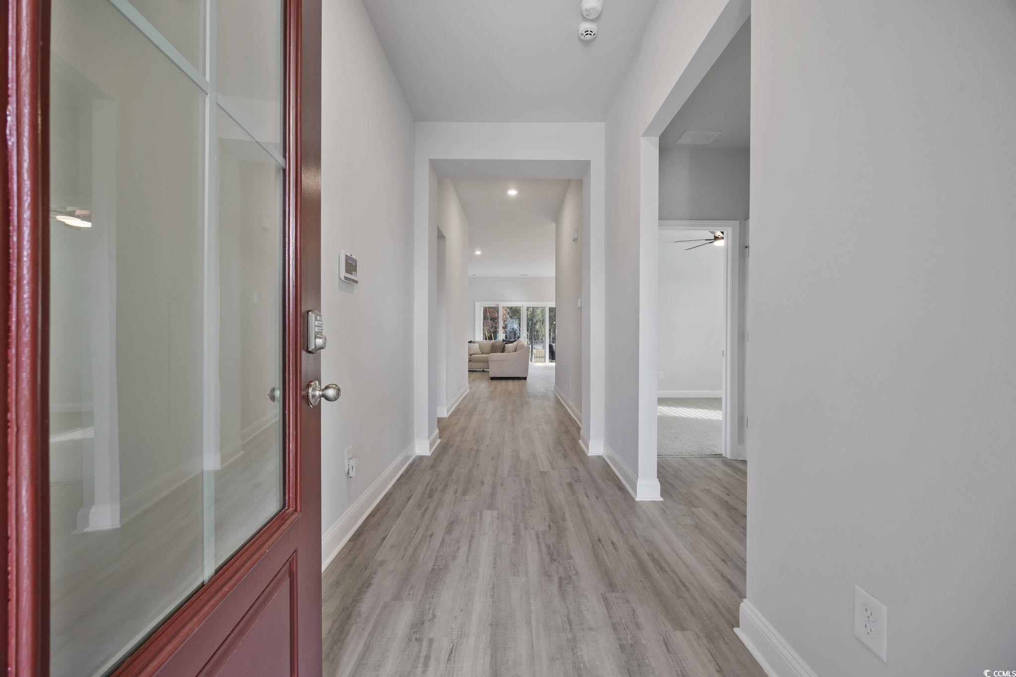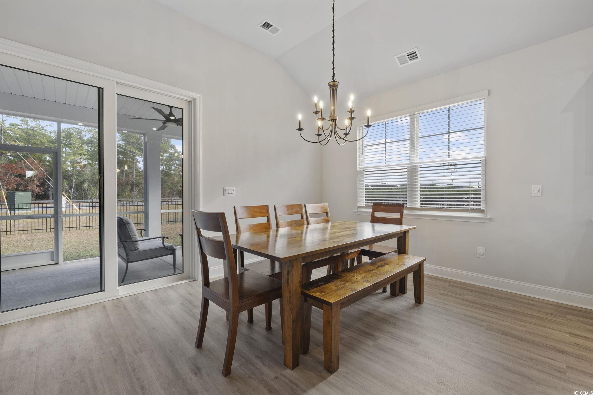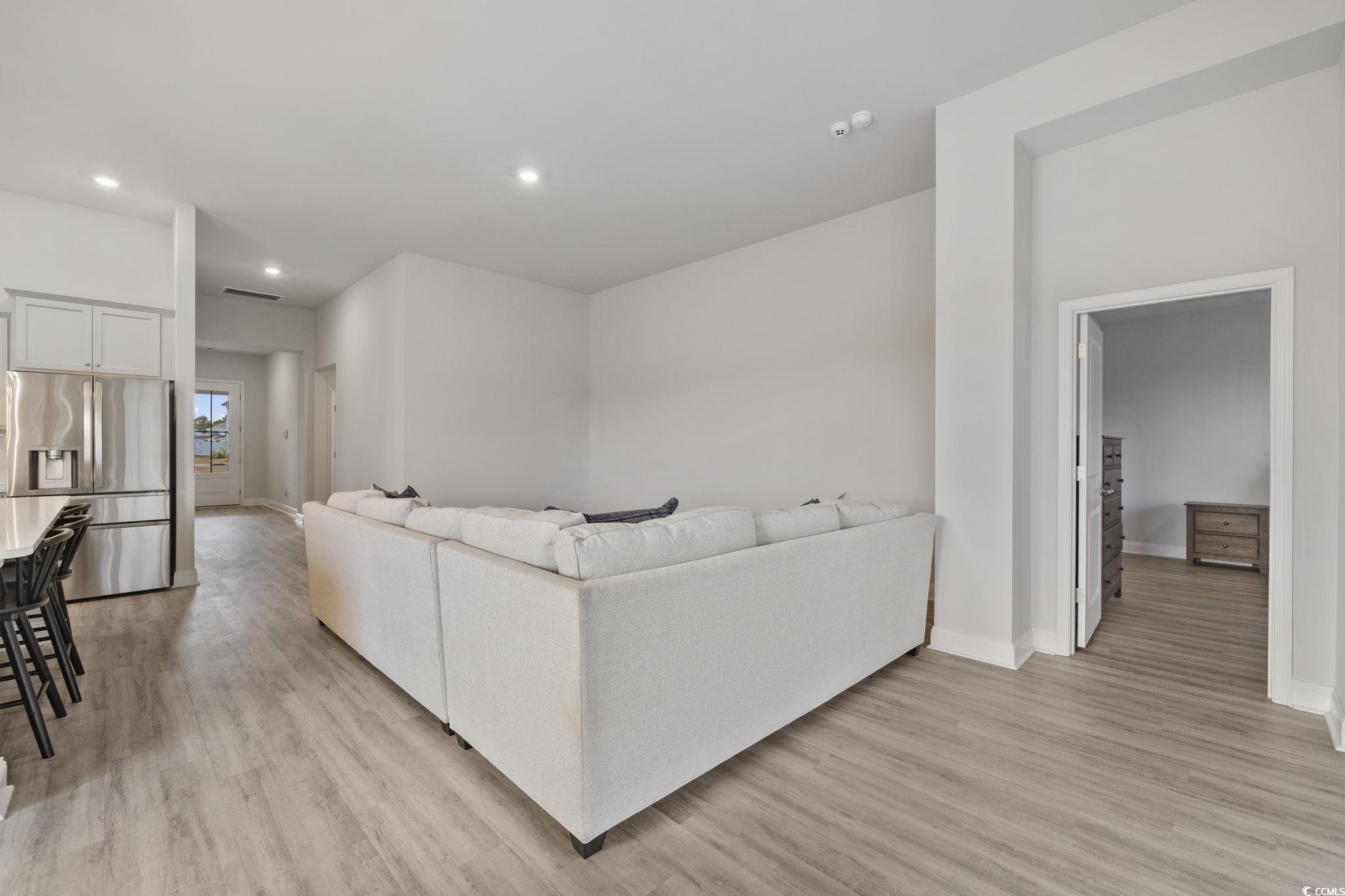 Better than new! This exceptional home showcases the highly desired Litchfield floor plan in Auberon Woods, offering all the benefits of new construction without the wait AND with upgrades you won’t find in a standard build. Step into an impressive open-concept living area featuring high ceilings, abundant natural light, and a split-bedroom layout that provides both comfort and privacy. The kitchen stands out with granite countertops, a spacious island, stainless steel appliances, glass island pendants, and blinds that were installed as part of the original purchase. Barstools at the breakfast bar convey. The dining room chandelier adds an elegant touch, while all four bedrooms are equipped with lighted ceiling fans for year-round comfort. Enjoy two additional lighted ceiling fans on the screened-in back porch, leading out to a beautifully enhanced backyard complete with fresh landscaping, new bushes across the property, a striking palmetto palm, and large New England river rock. The exterior also includes a black aluminum fence and a Hunter five-zone irrigation system. Modern comforts extend to an oversized LG stainless steel refrigerator, complete with a bottom freezer and a handy snack drawer. In the laundry room is a GE Profile washer and dryer that are only three months old and a secondary refrigerator in the garage. With its thoughtful upgrades, stylish finishes, and meticulous care, this home truly delivers a better-than-new living experience in one of the area’s most desirable communities.