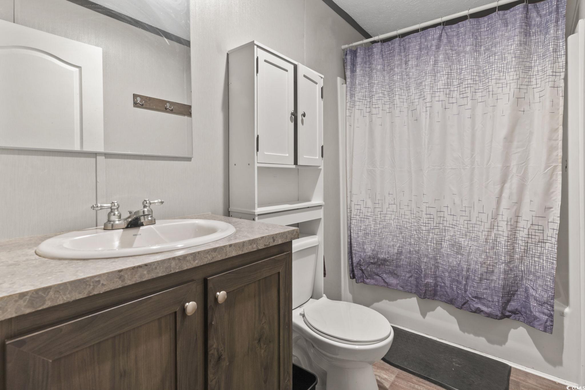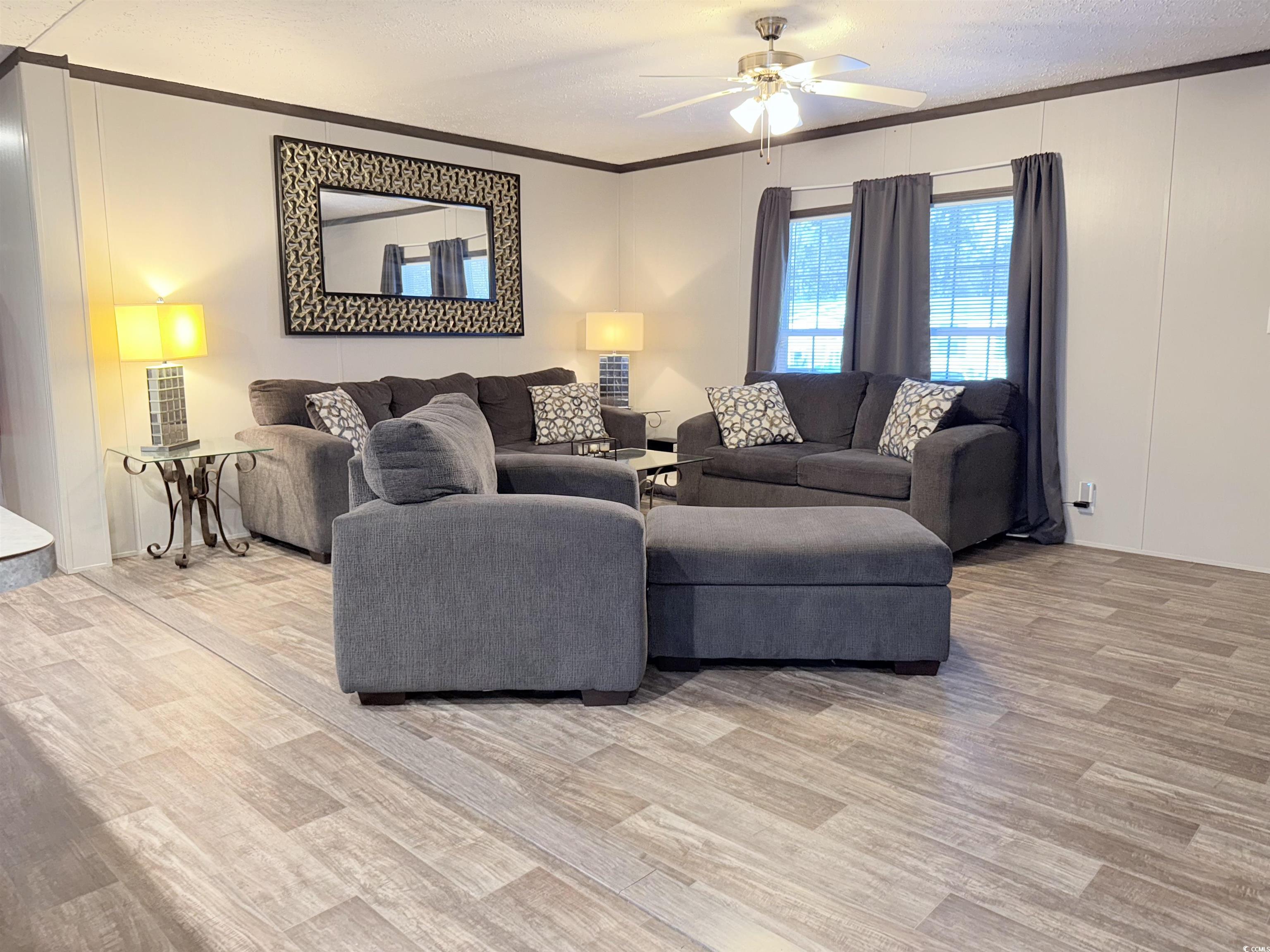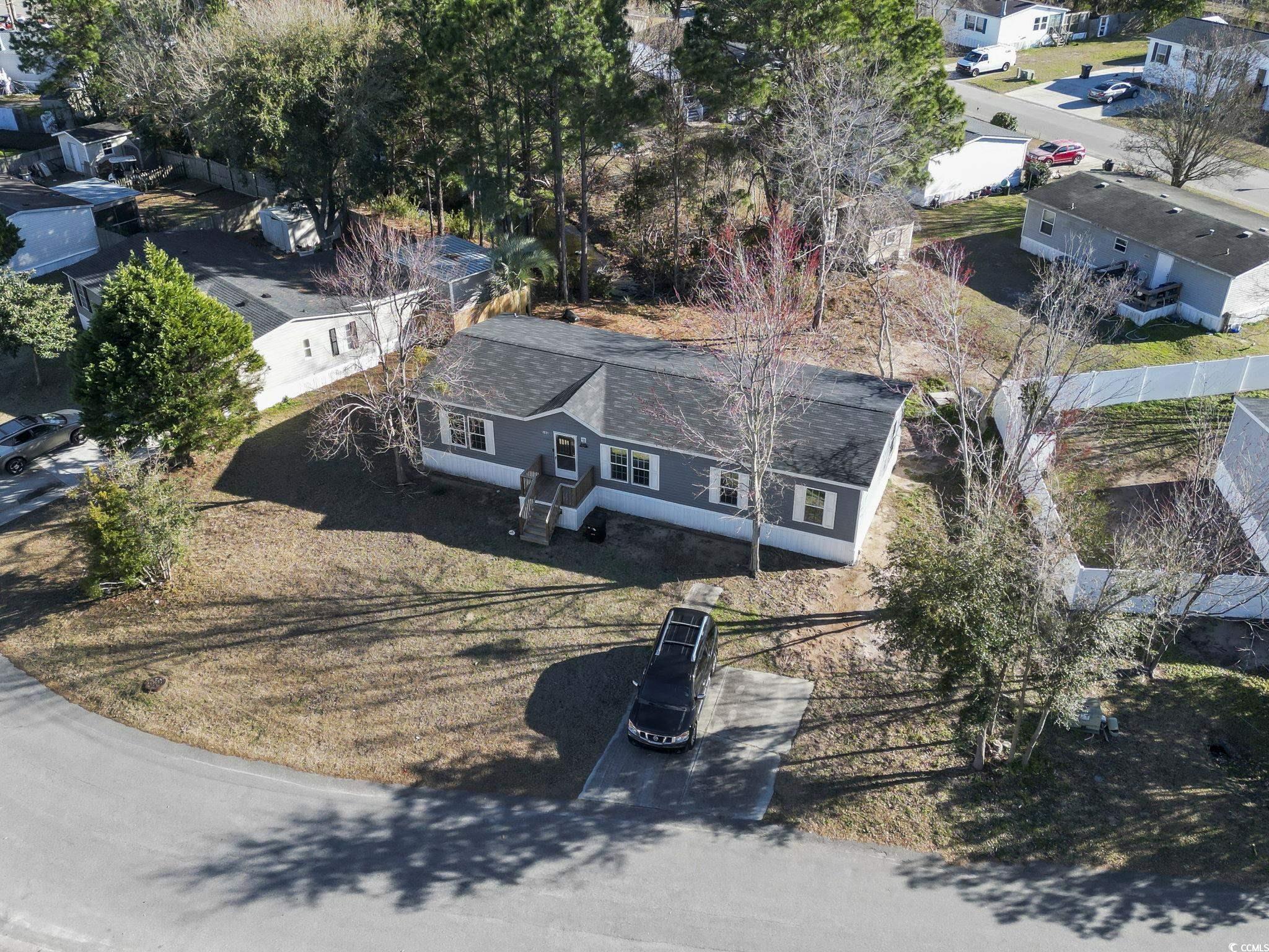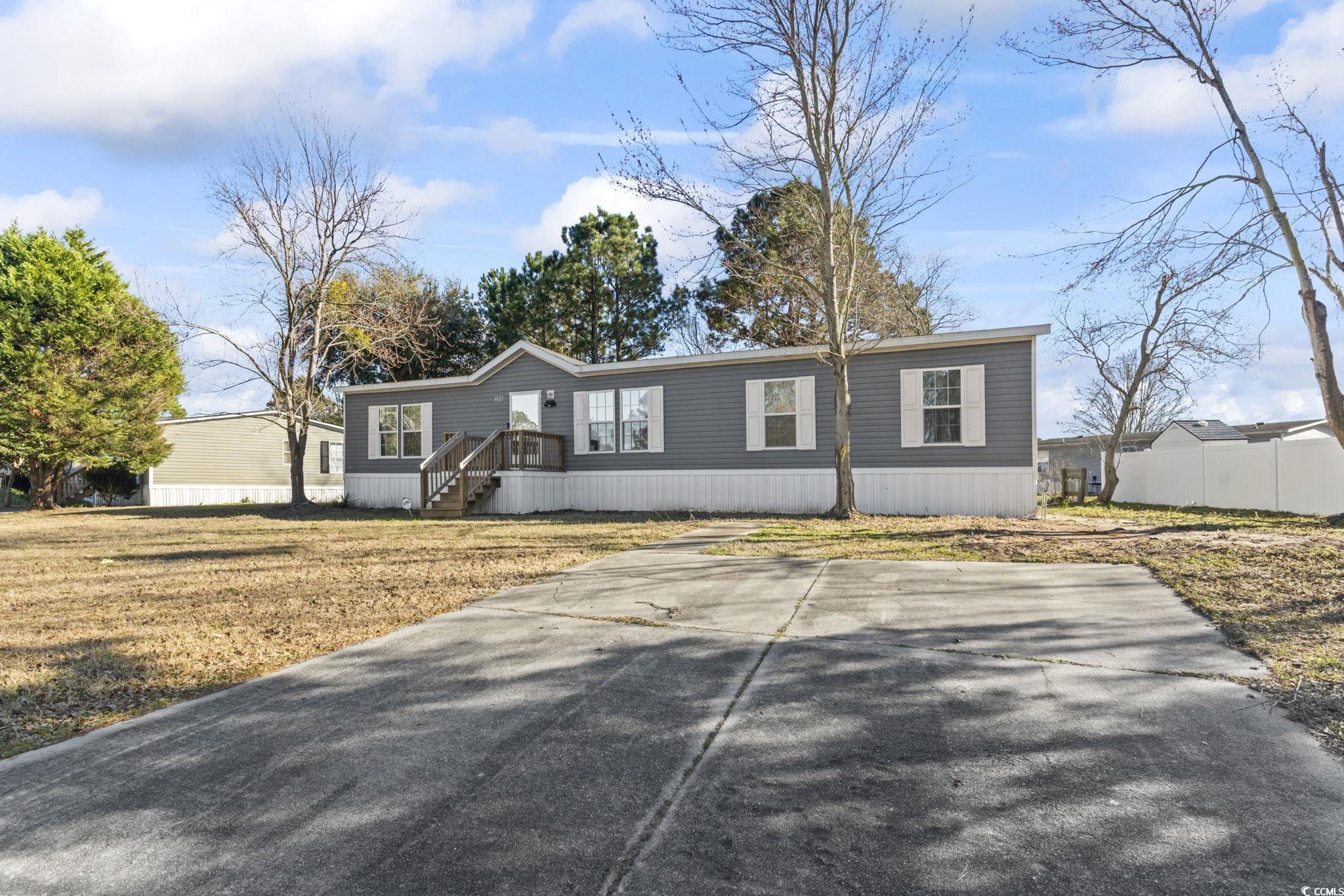 Discover modern comfort and style in this like-new 2023 Fleetwood home located in the desirable Emerald Forest Phase II community. The welcoming front porch leads you into a bright, open floor plan with a spacious living area that connects to a modern kitchen featuring a hooded range, island bar, plenty of cabinetry, a pantry, and a dedicated dining space. The split-bedroom layout offers excellent privacy. The primary suite includes a large walk-in closet and an ensuite bathroom with a step-in shower, vanity, and a transom window for natural light. On the opposite side of the home, three additional bedrooms share a full bathroom with a tub and shower combo. A separate laundry room provides space for full-size appliances. Enjoy the back deck overlooking the backyard, perfect for morning coffee or relaxation. With its open layout, generous storage, and move-in-ready condition, this home is an excellent opportunity. Located in the heart of Carolina Forest, you are just minutes from top shopping, dining, golf courses, and beautiful beaches along the Grand Strand. Schedule your showing today. Measurements are not guaranteed, and buyers are responsible for verification. Ask your agent about possible lender closing cost incentives for this property.