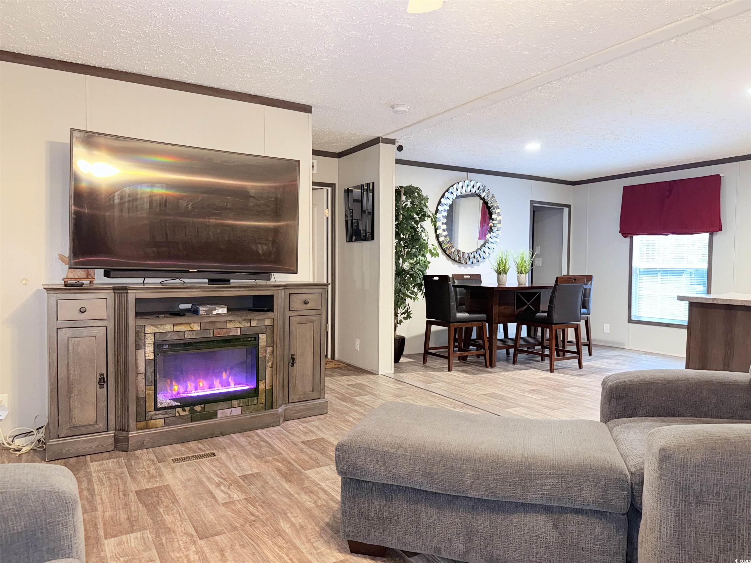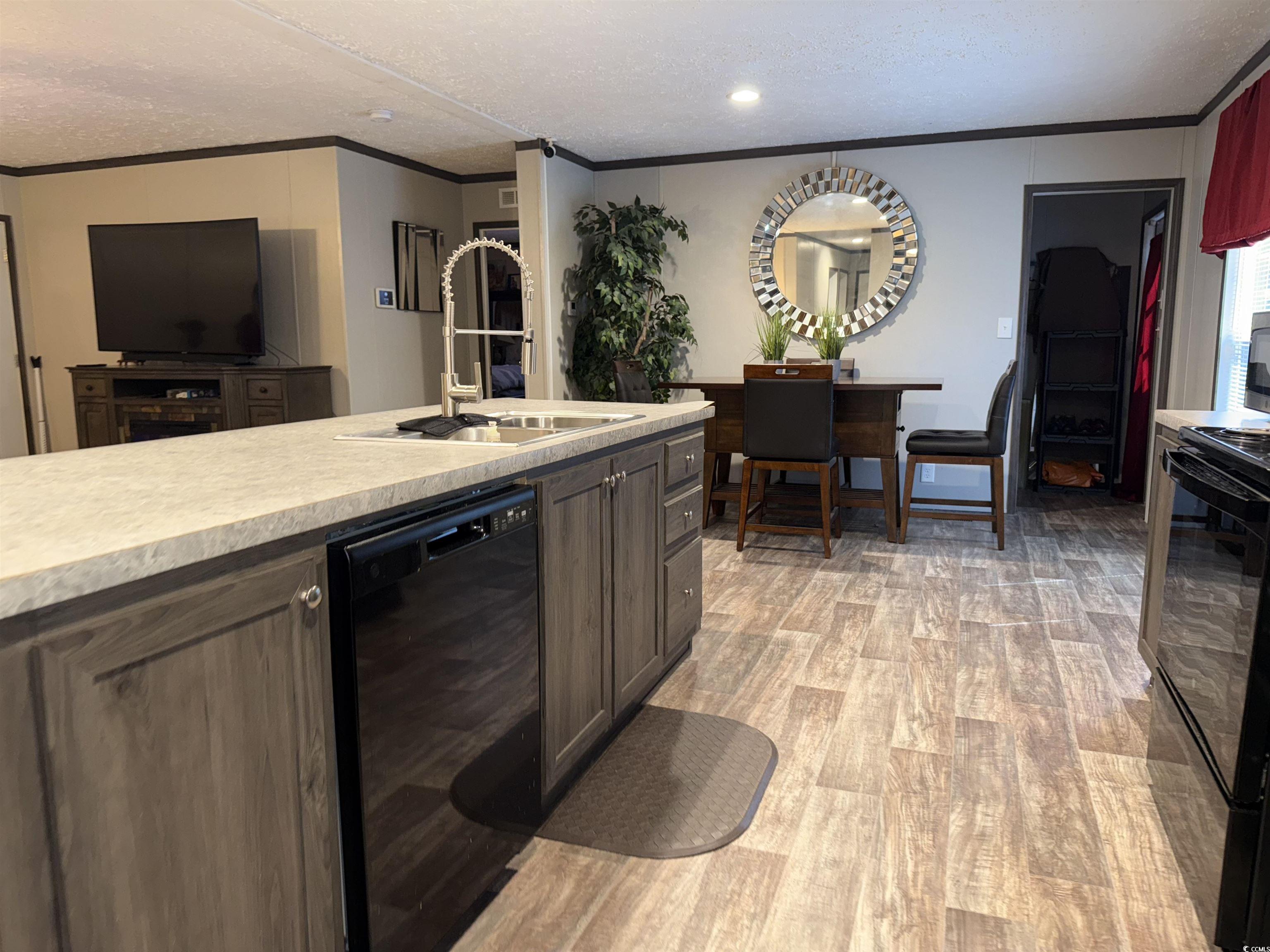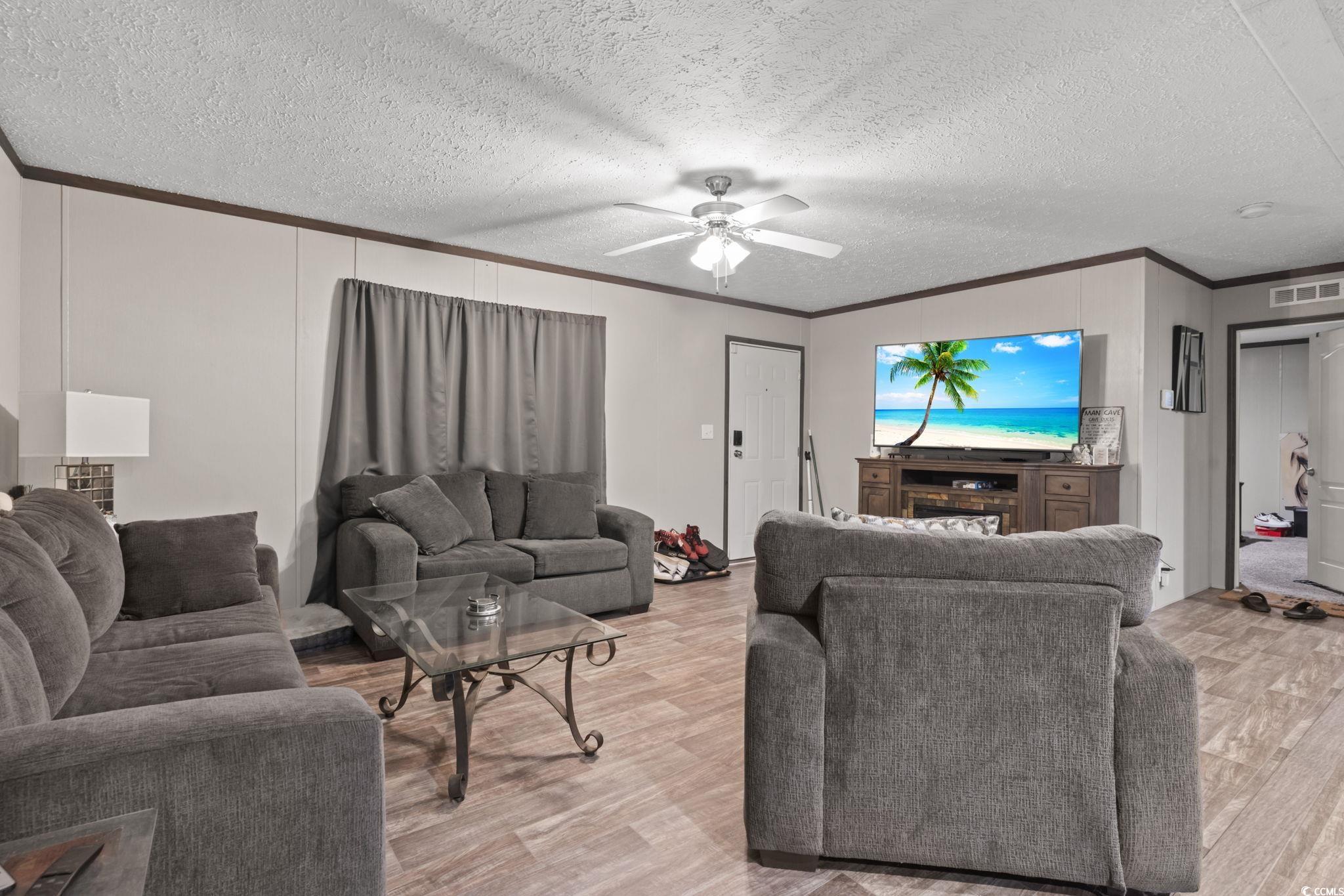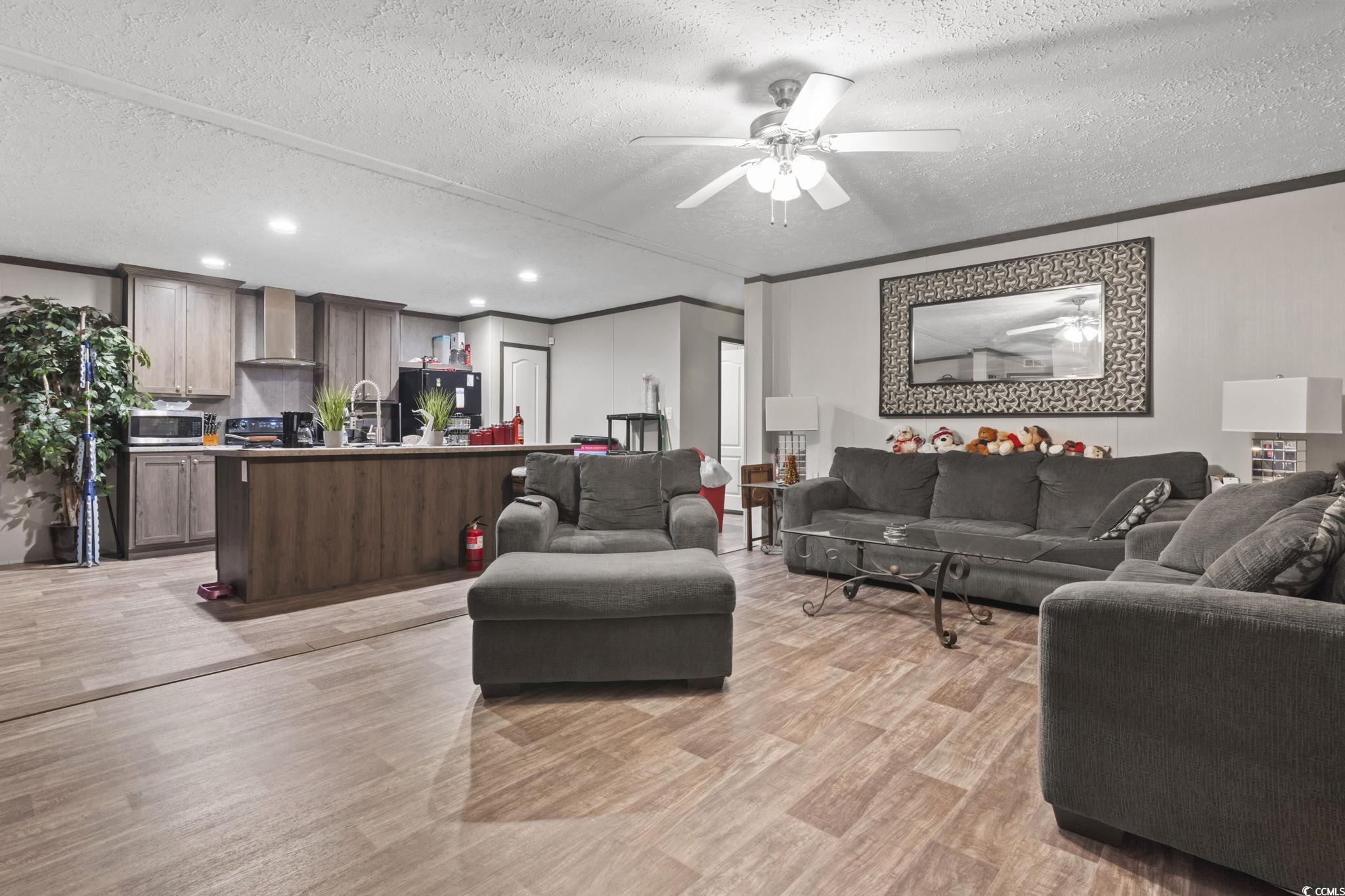 Discover modern comfort and style in this like-new 2023 Fleetwood home located in the desirable Emerald Forest Phase II community. The welcoming front porch leads you into a bright, open floor plan with a spacious living area that connects to a modern kitchen featuring a hooded range, island bar, plenty of cabinetry, a pantry, and a dedicated dining space. The split-bedroom layout offers excellent privacy. The primary suite includes a large walk-in closet and an ensuite bathroom with a step-in shower, vanity, and a transom window for natural light. On the opposite side of the home, three additional bedrooms share a full bathroom with a tub and shower combo. A separate laundry room provides space for full-size appliances. Enjoy the back deck overlooking the backyard, perfect for morning coffee or relaxation. With its open layout, generous storage, and move-in-ready condition, this home is an excellent opportunity. Located in the heart of Carolina Forest, you are just minutes from top shopping, dining, golf courses, and beautiful beaches along the Grand Strand. Schedule your showing today. Measurements are not guaranteed, and buyers are responsible for verification. Ask your agent about possible lender closing cost incentives for this property.