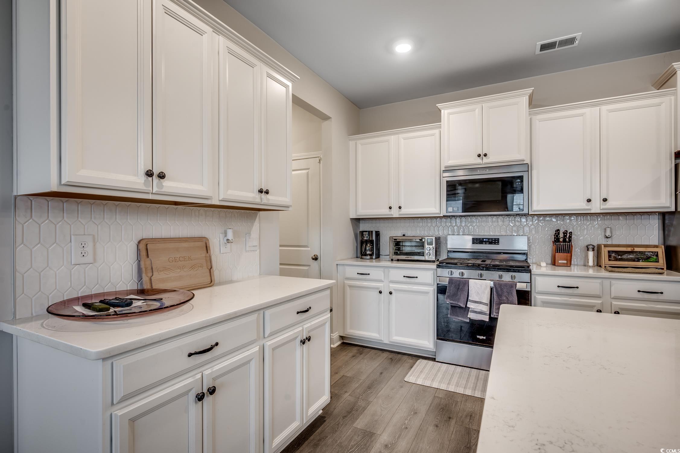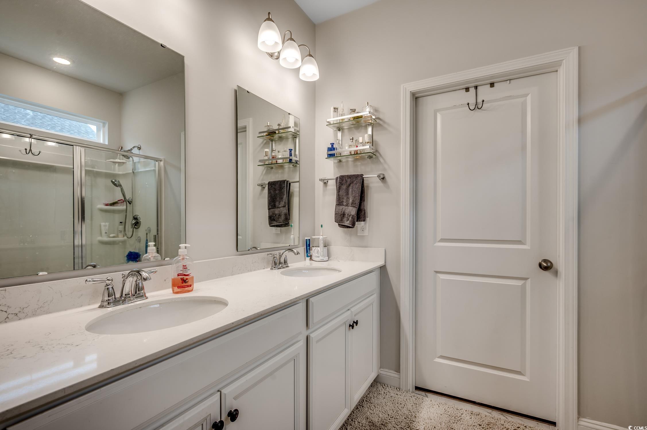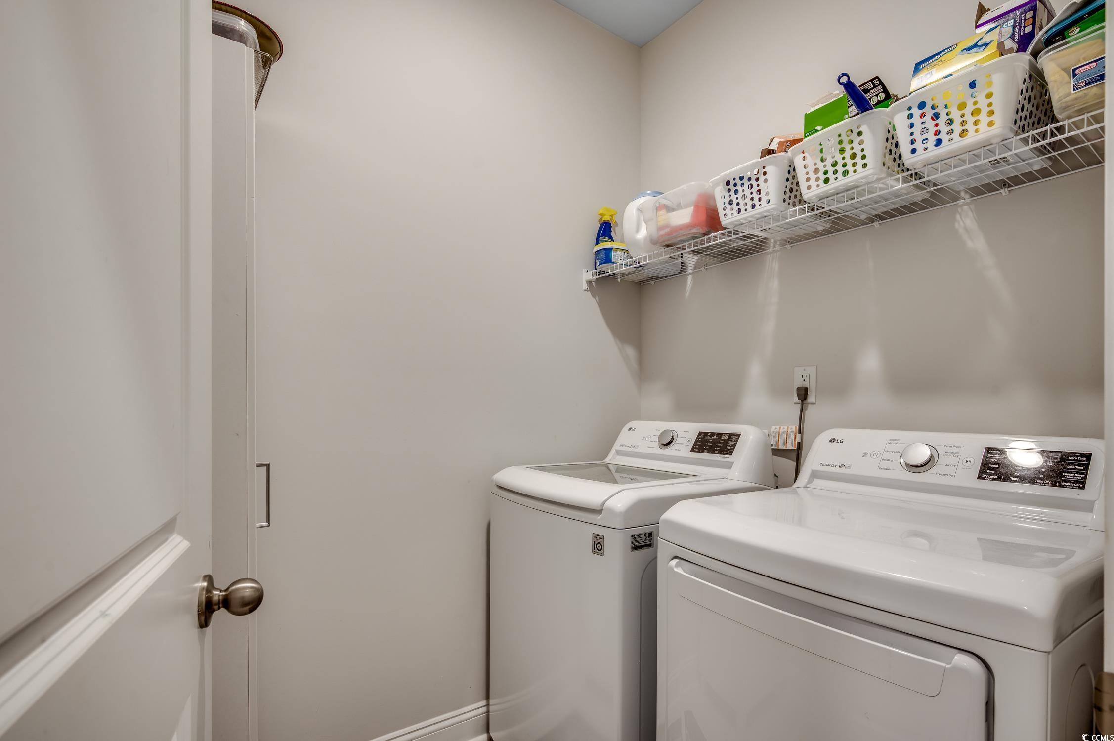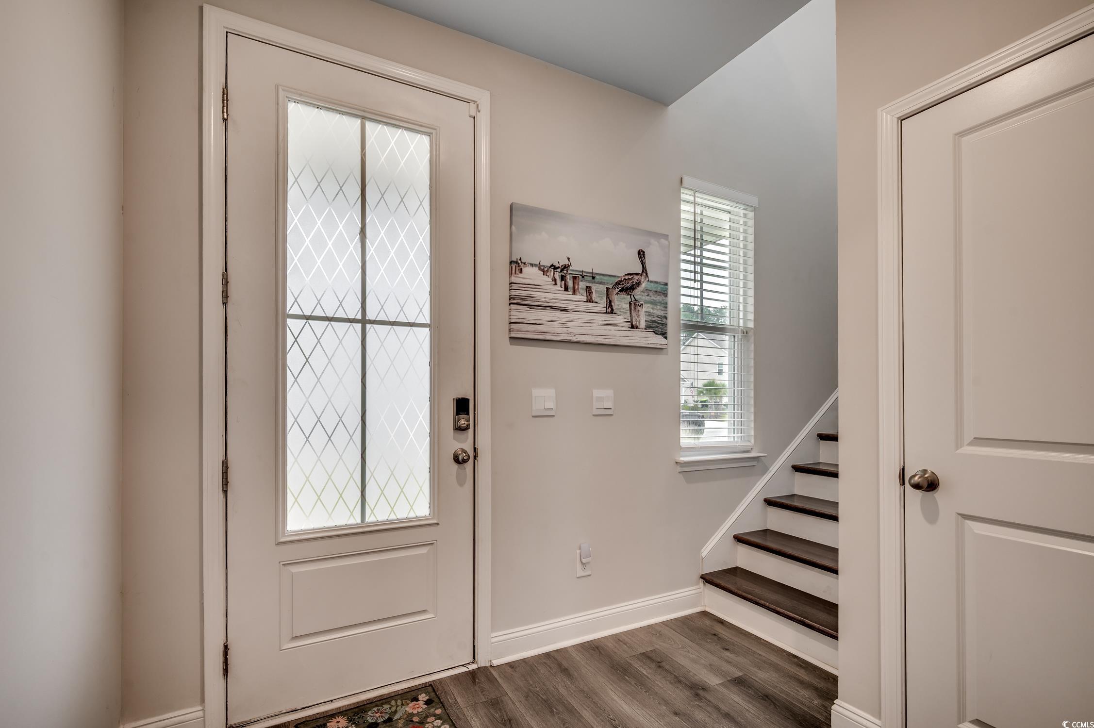 Welcome to this stunning 4-bedroom, 2.5-bath Belfort floorplan located in the highly desirable community of The Farm at Timberlake in Myrtle Beach. This thoughtfully designed home features a spacious first-floor primary suite complete with a walk-in closet and en-suite bath, offering both privacy and convenience. A first-floor laundry room adds to the home's functionality. The open-concept kitchen boasts modern appliances, abundant cabinetry, a breakfast bar, and flows seamlessly into the bright great room and dining area—perfect for everyday living and entertaining. Upstairs, you'll find three additional bedrooms, a full bath, and a versatile loft ideal for guests, a home office, or playroom. Enjoy outdoor living with a screened porch, private backyard, and patio—on a premium lot with a beautiful pond view, great for relaxing or hosting gatherings. The owner has added gutters and a sprinkler system enhancing exterior maintenance and protection. A two-car attached garage provides ample parking and storage. Located in the top-rated St. James school district and just minutes from shopping, dining, golf, the Intracoastal Waterway, and the beach. Community amenities include: Two outdoor pools, fitness center, open-air pavilion, playgrounds, fishing dock, walking trails, and an indoor pickleball court. The Farm at Timberlake offers a vibrant lifestyle with year-round events and activities.
