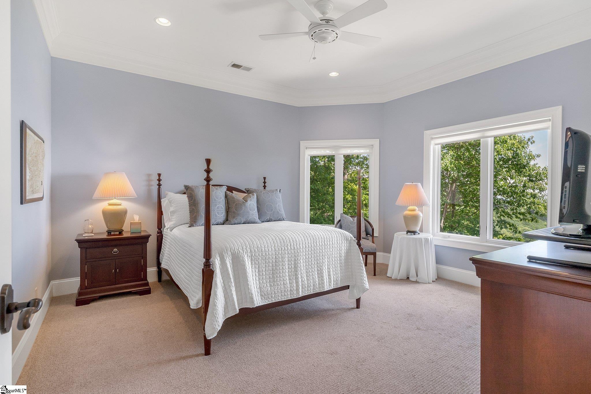 On a clear day this exceptional home, situated at an elevation of almost 2600 feet on Glassy Mountain, offers an inspiring view where each vista is unique and astonishing. Double rainbows are common. The acrobatics of courting peregrine falcons are worthy of applause and the nighttime panorama finds the Carolina Piedmont spangled with scintillating lights. Experience an optimum southeast-facing orientation in a convenient location that’s within easy walking distance to the Glassy clubhouse and golf course. Take a picnic to the nearby Pavilion. Want to catch a concert at the chapel? Enjoy the convenience of living just down the street. Custom crafted by Becklan Builders, this house boasts quality craftsmanship, engineering and design. It features a hardboard and stone exterior. Structural strength and window depth is enhanced by its 2x6 exterior walls. The landscape was planned with resident wildlife (particularly birds) in mind. The lot is mostly level and, as a result, the property boasts a flat and spacious driveway. One would be hard-pressed to find a better-maintained home, it’s immaculate! Step inside to discover a natural light-filled interior. Opening electronic blinds in the living room and primary bedroom creates windows that look like works of art. The doors are all solid core. Elberton, Georgia (famous for stone) provided the elegant granite counters in the guest bathrooms, utility room, and kitchen and the marble in the primary bedroom vanity rooms and on fireplace facades. The kitchen is a chef's delight – organized and well-equipped. Custom cabinetry includes soft-close hinges and drawers, large two-door spice racks and a mixer lifter. Among the appliances are a Thermador 5-burner gas cooktop and a Bosch dishwasher. The pantry offers ample storage for culinary essentials. A large utility room adjacent to the kitchen also features custom cabinetry and a workspace filled with possibilities. This hub provides a home office in addition to storage for party supplies and table linens. It also accepts overflow from the kitchen and gives a home base to helpers for “working a party.” And a pegboard wall even makes a gift-wrapping station possible. The primary bedroom is a tranquil retreat with a sitting area warmed on autumn and winter evenings by a cozy fireplace. The primary suite boasts “his and hers” separate vanity rooms (each with a heated floor); a spacious shower (with entry from each room); a luxurious soaking tub; and a large walk-in closet with custom cabinets and plenty of space to dress. The upper level features two guest bedrooms, each with full baths, a cedar closet, a bookcase and reading nook and plenty of attic storage. In addition, it contains a large multi-purpose room with skylights, a sink, built-in workstations and counters, and two large closets. This space would make an ideal craft room, workout center, or bunk room. Entertain and host family and friends on the lower level, which provides additional living space. This level features a TV/rec room, kitchenette/bar, office, large guest bedroom suite, and a workshop with heated storage. Additionally, there is an optional wine room with redwood paneling and electricity available for completion of this room. An encapsulated crawl space provides room for even more storage. Delight in the outdoor living on the flagstone screened porch, deck, or patio, where you can unwind and soak in the surrounding natural beauty. Other notable features include Mahogany front doors, Eagle (now Anderson) windows, Icynene insulation, whole-house water filtration, 2 tankless water heaters, whole-house backup generator, and 3 HVAC units replaced for optimal efficiency. With its stunning views, impeccable craftsmanship, and amenities, this mountain retreat offers the perfect balance of elegance with nature and comfort for luxurious living. A Club membership at The Cliffs is available for purchase with this property.