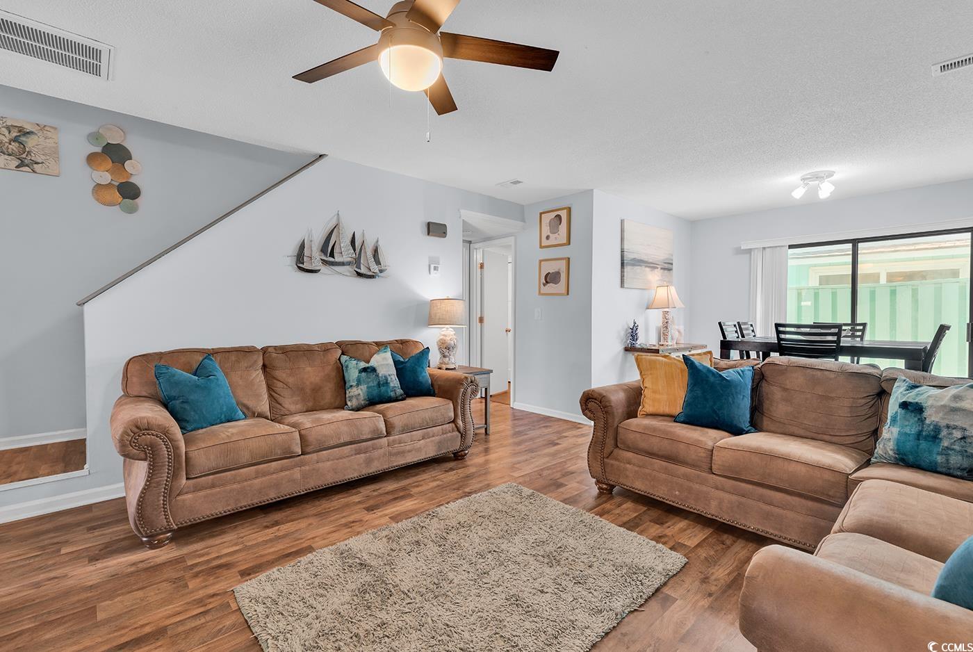 Located just three blocks from the beach in the desirable Windy Hill section of North Myrtle Beach, this well-maintained three-bedroom, two-bath home sits on a corner lot with no HOA—a rare opportunity this close to the ocean. Carefully updated in 2022, the home features luxury vinyl plank flooring, LED lighting, updated bathrooms, and remodeled kitchen with new stainless steel appliances creating a bright, modern coastal feel. The primary bedroom is conveniently located on the first floor. Upstairs, the second and third bedrooms feature large walk-in closets, with the third bedroom currently set up with six bunks, ideal for maximizing guest accommodations. The home is being sold fully furnished, making it truly turn key. Currently operating as a successful Airbnb with Superhost status, the property is located in an area that allows short-term rentals, offering excellent flexibility for a primary residence, second home, or income-producing investment. Upstairs living continues outdoors through a slider to the spacious roof deck, which features Trex decking, vinyl railing, and coastal-friendly Poly furniture. Additional exterior highlights include a cement patio, a good-sized yard, ample parking for up to four vehicles, and a carport. With its prime location so close to the public beach access, thoughtful updates, rental potential, and no HOA restrictions, this home delivers the best of North Myrtle Beach coastal living.
