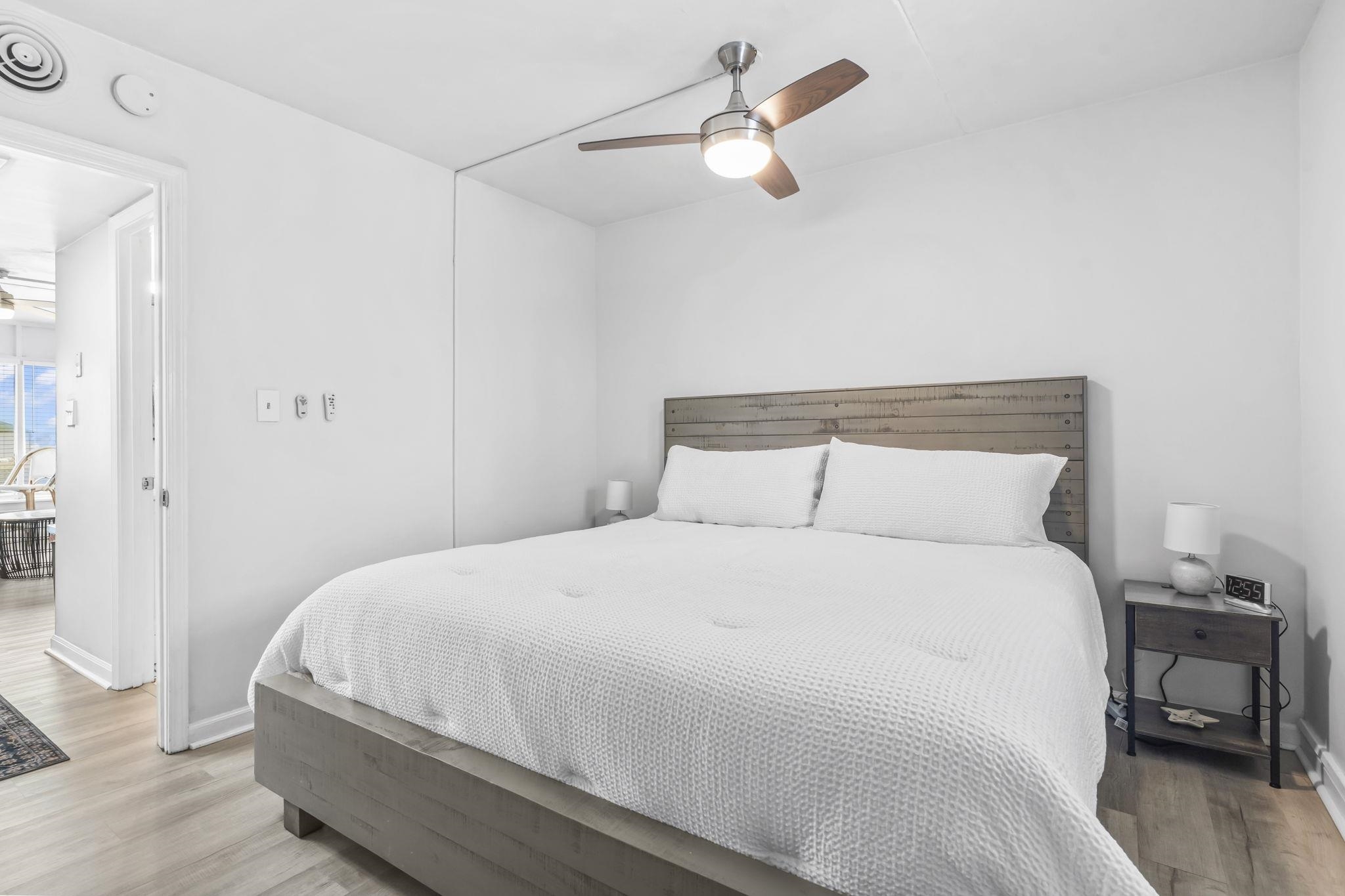 Experience beach living at its finest in this beautifully updated 1-bedroom, ocean-view condo. Perched on the top floor as a desirable end unit, this home offers the best views in the building along with an abundance of natural light throughout. The interior features a bright, open layout with a renovated kitchen with stainless appliances, white cabinets and butcher block countertops, modern finishes throughout, and durable laminate flooring. Offered fully furnished, this property is truly move-in ready, perfect as a primary residence, vacation getaway, or investment opportunity. Located in a charming, smaller building, residents enjoy a peaceful atmosphere along with access to a gorgeous pool and inviting patio area. Ample parking adds convenience, while the unbeatable location, just across the street from the ocean, puts you steps from the beach. Close to shops, dining, and local attractions, this condo combines comfort, style, and an exceptional coastal lifestyle.