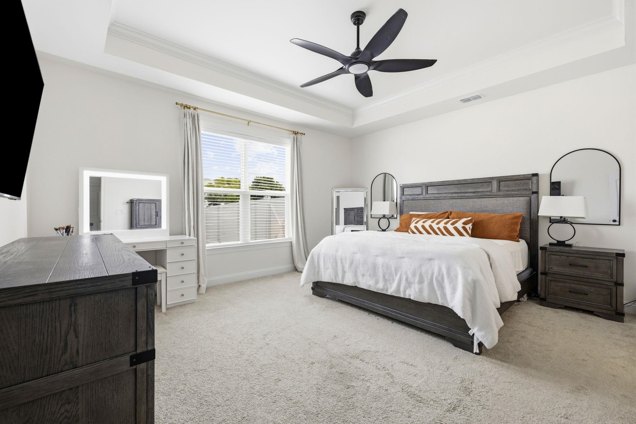 Location, location, location! Nestled in the desirable Belle Mer community, this home is just a short bike ride to the beach and minutes from top shopping, dining, and coastal attractions, along with resort-style amenities including a community pool, clubhouse, fitness center, sidewalks, fishing lakes, and non-motorized boating lakes. This beautifully upgraded Reynolds floor plan offers an open and split layout, perfect for both entertaining and privacy. Upon entering, you’re welcomed by a formal dining room featuring upgraded lighting fixtures and elegant wainscoting. The spacious great room boasts a vaulted ceiling and flows seamlessly into the main living areas, highlighted by Mohawk Rev Wood laminate flooring and designer finishes throughout. The kitchen is well-appointed with Whirlpool stainless steel appliances, including a natural gas range, double oven, exterior-vented microwave, and dishwasher, complemented by granite countertops and Level 2 Aristokraft cabinetry. The primary suite features a tray ceiling and a luxurious en-suite bath with a 5-foot walk-in tiled spa shower. Additional highlights include an upgraded powder room with vanity and sink, custom closets, a spacious pantry, and a designer trim package with wainscoting and beadboard accents. Enjoy outdoor living on the large screened-in back patio—complete with a mounted TV—overlooking a fully fenced backyard with vinyl fencing, irrigation system, and beautifully maintained landscaping with curbing. This Energy Star Certified and Indoor AirPlus Qualified home includes a Broan Energy Recovery Ventilator (ERV) system, tankless Rinnai natural gas water heater, gutters, garage door opener, brick entry thresholds, attic stairs with floored storage, and a fully sodded homesite with foundation plantings. This home truly has all the bells and whistles—experience the best of Belle Mer living!