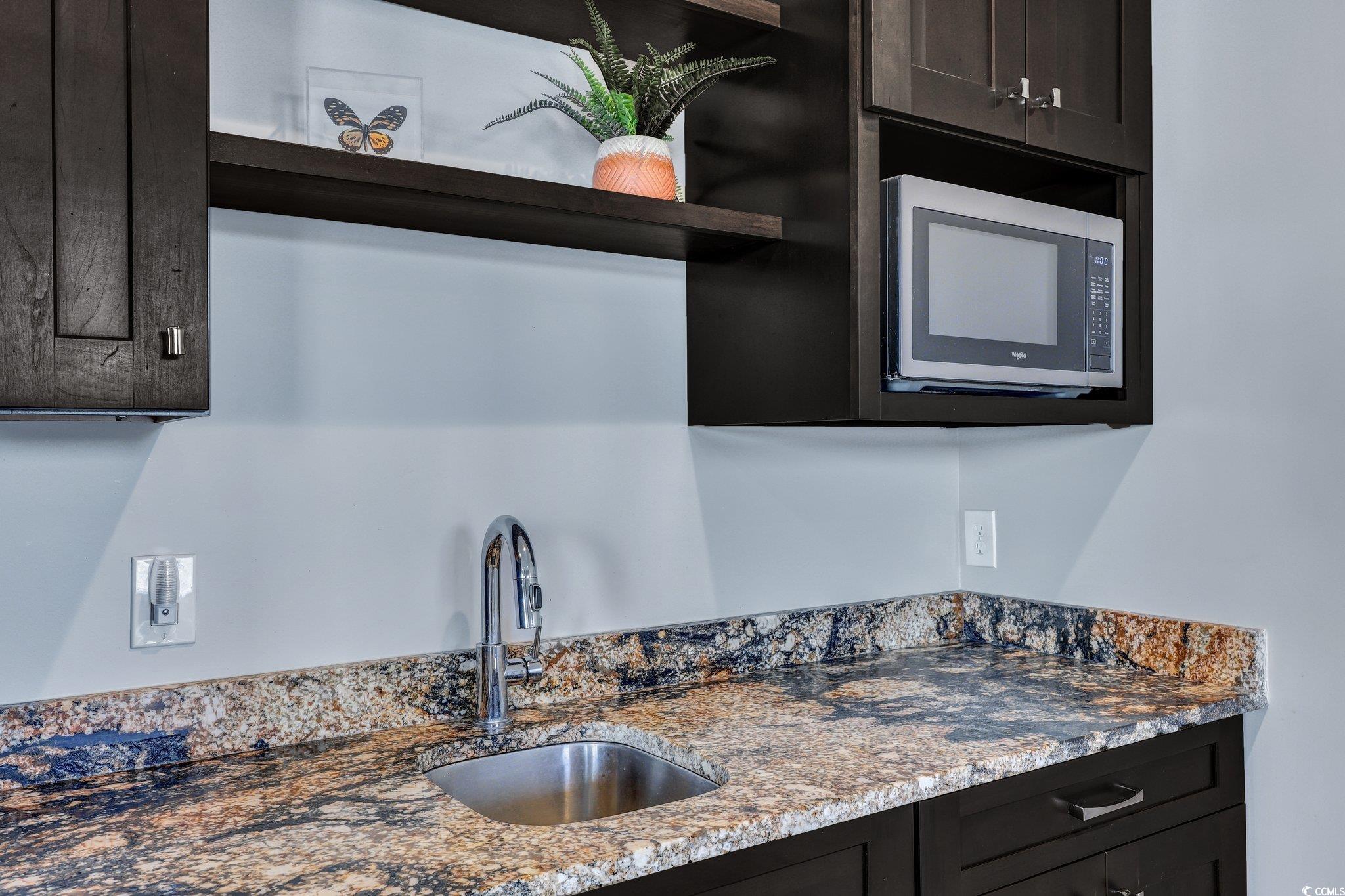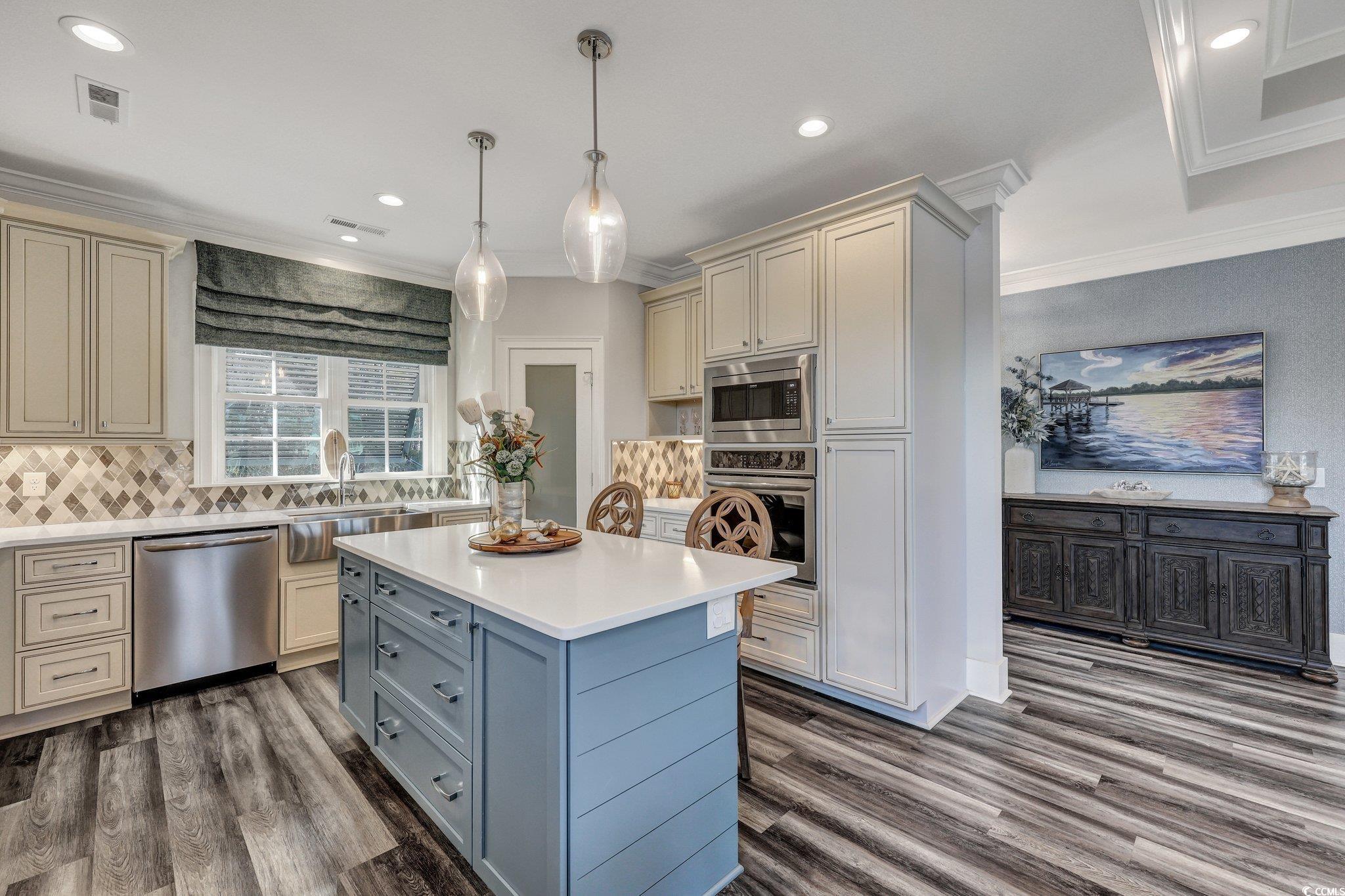 Welcome to this extraordinary lakefront retreat, a modern coastal oasis nestled on a pristine 20-acre, spring-fed lake within an exclusive gated community. This residence represents a rare opportunity to enjoy sophisticated waterfront living just minutes from Murrells Inlet's renowned Marshwalk, Huntington Beach State Park, and the cultural treasure of Brookgreen Gardens. Meticulously maintained, this show-stopping property perfectly balances elevated beach style with mid-century modern design elements. The owner has crafted an entertainer's paradise, featuring high-end furnishings and exceptional attention to detail throughout. The upper level captivates with breathtaking lake views from the stunning kitchen, elegant great room, and inviting screened porch. Nine-foot ceilings and crown molding create an atmosphere of refined luxury, while the great room's dual tray ceiling, luxury vinyl flooring, and custom shiplap accent wall add distinctive character. The gourmet kitchen dazzles with premium quartz countertops, stainless steel appliances, and custom cabinetry. A dedicated propane tank serves both the kitchen's professional cooktop and the outdoor grill. The custom laundry room stands as a testament to thoughtful design, combining maximum utility with aesthetic appeal. The lower level offers versatile living spaces, including two thoughtfully designed guest bedrooms – one featuring a built-in Murphy bed with integrated workspace. The second guest bedroom and expansive flex space with kitchenette provide direct access to the lower porch and magnificent lake views. Outdoor living reaches its pinnacle with a private dock, sparkling salt-water in-ground pool, relaxing hot tub, and multiple entertainment areas capable of accommodating 28 guests comfortably. The large, finished two-car garage includes additional space for a golf cart or extra storage. Built for longevity and efficiency, this remarkable home features durable HardiePlank siding and an energy-efficient metal roof. This property presents an unparalleled opportunity to embrace the ultimate lakefront lifestyle. Schedule your private showing today and experience this rare waterfront gem firsthand!