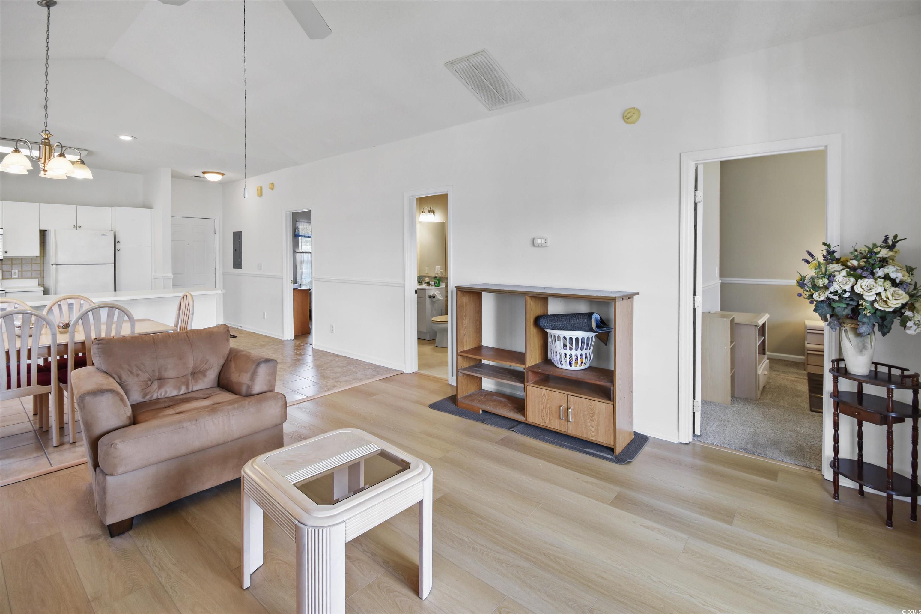 Welcome to this inviting 2-bedroom, 2-bathroom condo located on the third floor of the desirable Azalea Lakes community. This well-maintained home boasts vaulted ceilings, a full kitchen, and an open, airy layout. The primary suite features its own ensuite bathroom and two closets, while the second bedroom is conveniently connected to a guest bath that also houses the washer and dryer. Recent updates include a new HVAC system, refreshed bathroom flooring, and fresh paint throughout. From your private balcony, relax with peaceful pond views, and enjoy the rare bonus of a private garage—hard to find in this community. Azalea Lakes offers fantastic amenities, including both indoor and outdoor pools, a fitness center, and beautifully landscaped grounds with plenty of room to enjoy the outdoors. Perfectly situated just minutes from restaurants, shopping, entertainment, and all the best of the Grand Strand, this condo makes an excellent primary residence, vacation getaway, or investment opportunity.