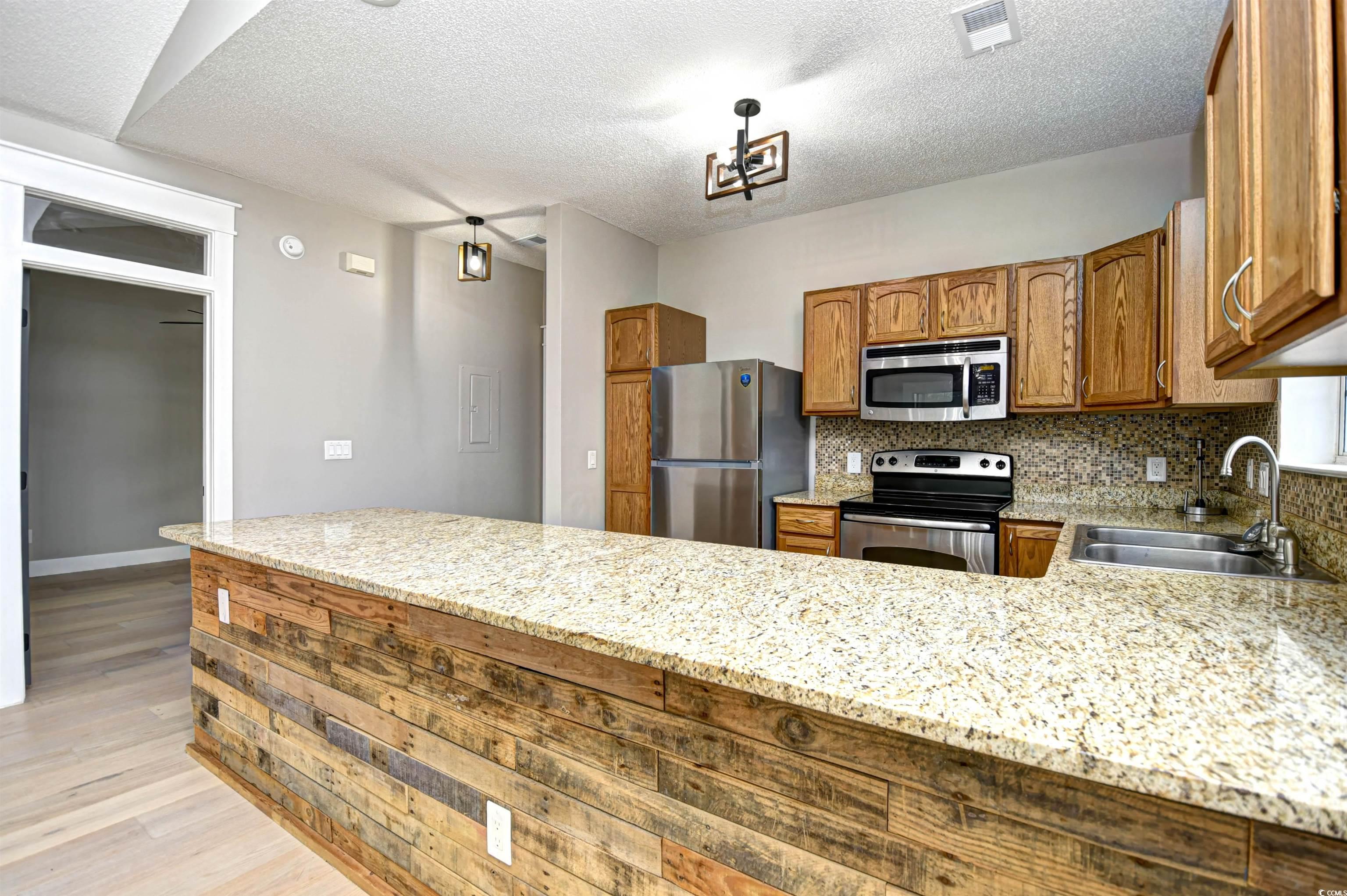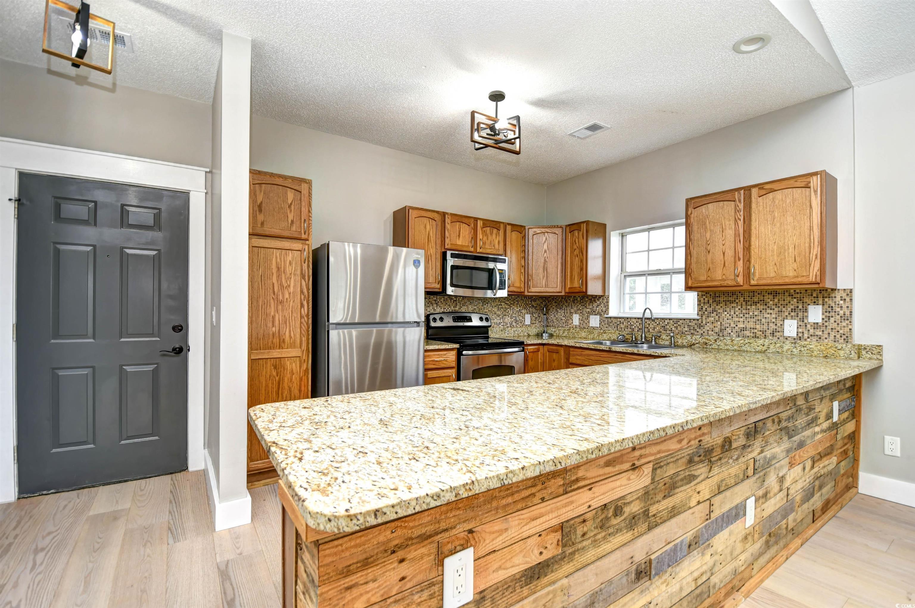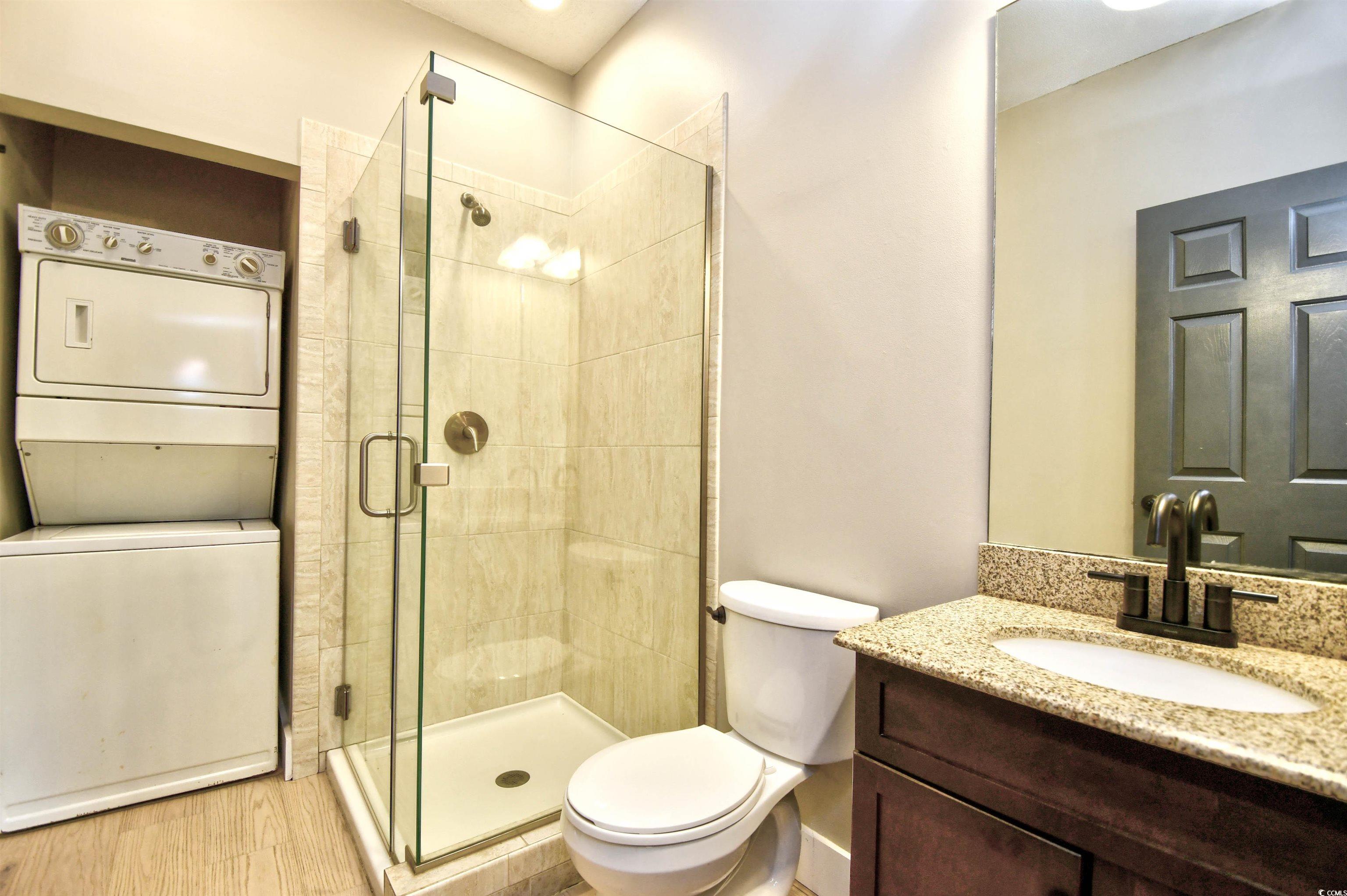 Welcome to your third-floor retreat in the desirable Azalea Lakes community! This 2 bed / 2 bath condo features vaulted ceilings, an open floor plan, and abundant natural light. The primary suite includes its own ensuite. The guest bedroom is conveniently adjacent to a full bath that also houses the in-unit washer/dryer. Step out onto your private balcony overlooking peaceful pond views a perfect place to relax with morning coffee or evening breezes. Rare for this community. Updates include: new flooring, all new base boards, fresh paint on ceilings and walls, all new fixtures, brand new refrigerator, transom windows above the inside doors. Azalea Lakes offers resort-style amenities: indoor and outdoor pools, fitness center, and beautifully landscaped grounds. Ideally located just minutes from shopping, dining, entertainment, and all that the Grand Strand has to offer. Whether you're seeking a primary residence, vacation getaway, or investment property, this condo delivers comfort, convenience, and value.