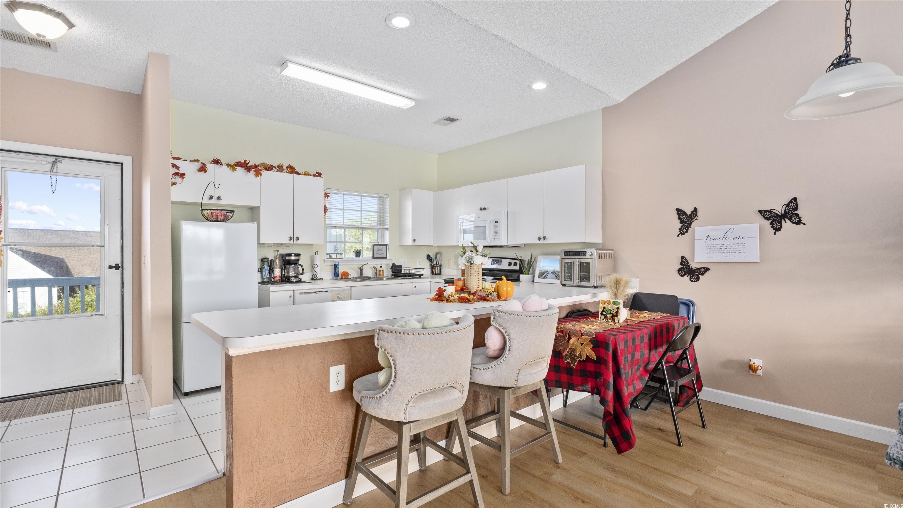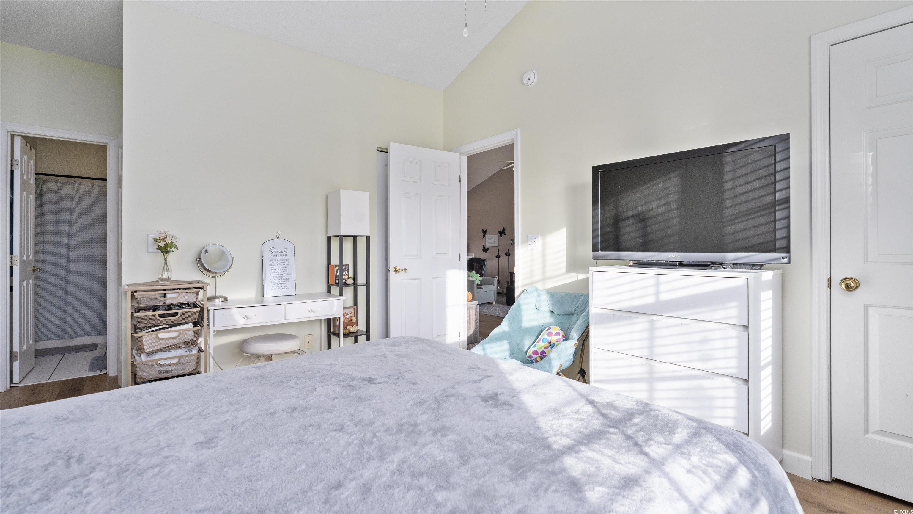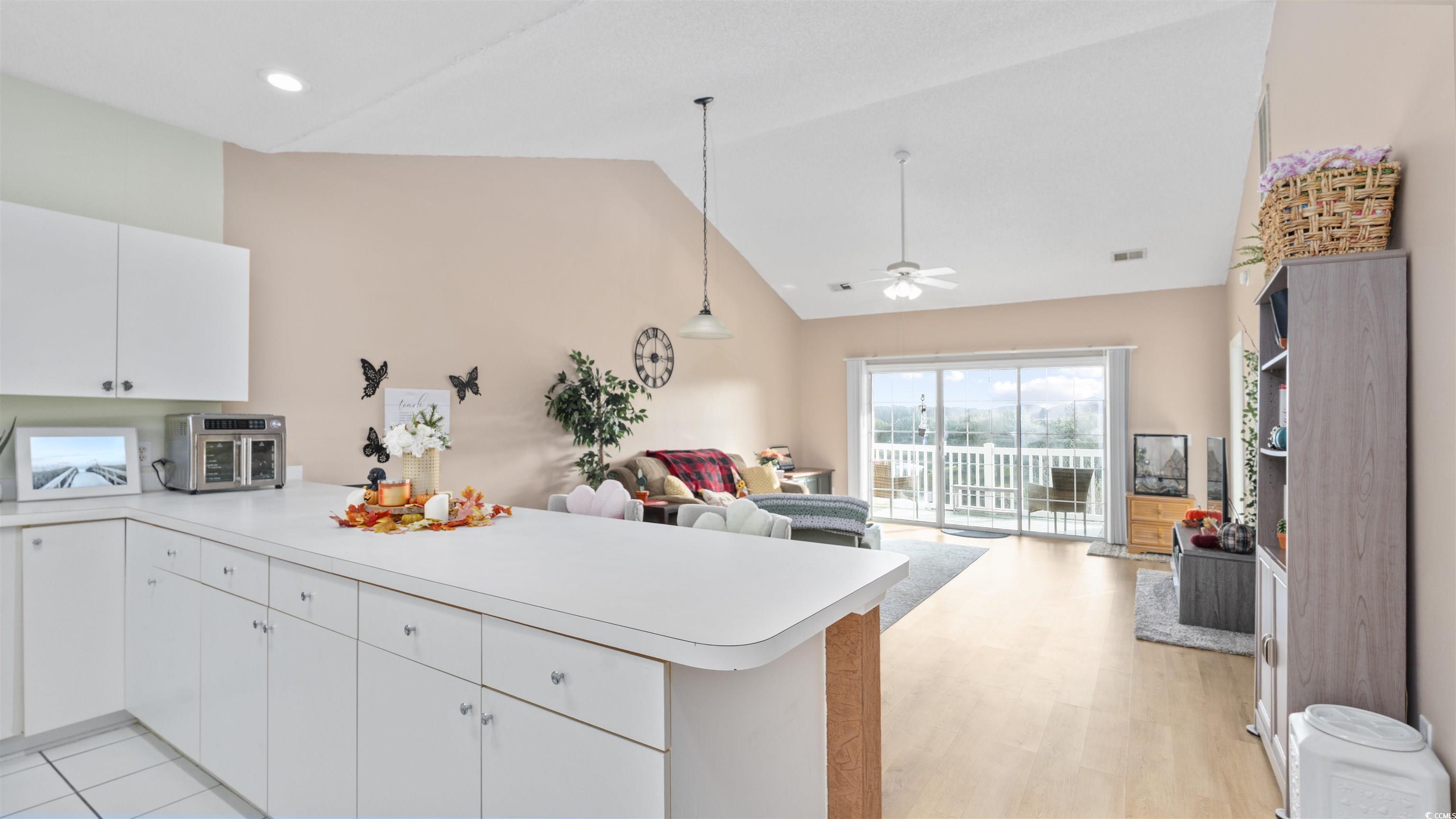 As you step into this third floor condo you will immediately notice the vaulted ceilings that create a spacious yet cozy feeling. Your eyes will immediately be drawn to the window that looks onto a balcony with a beautiful lake view. The nicely appointed kitchen has generous counter space that flows nicely into the living room and is perfect for entertaining. The living room is very spacious and flooded with natural light. The guest bedroom is off of the living room, in the front of the house and has a full bathroom attached to it with an in-unit washer and dryer. The Master bedroom is in the back of the house offering privacy and quiet from the rest of the house. The master bedroom also has vaulted ceilings, a generous sized closet and its own bathroom. This condo has newly replaced flooring and has recently been painted. This condo is in a great location close to good food, shopping and the beautiful beaches of the Grand Strand! Book your showing today.