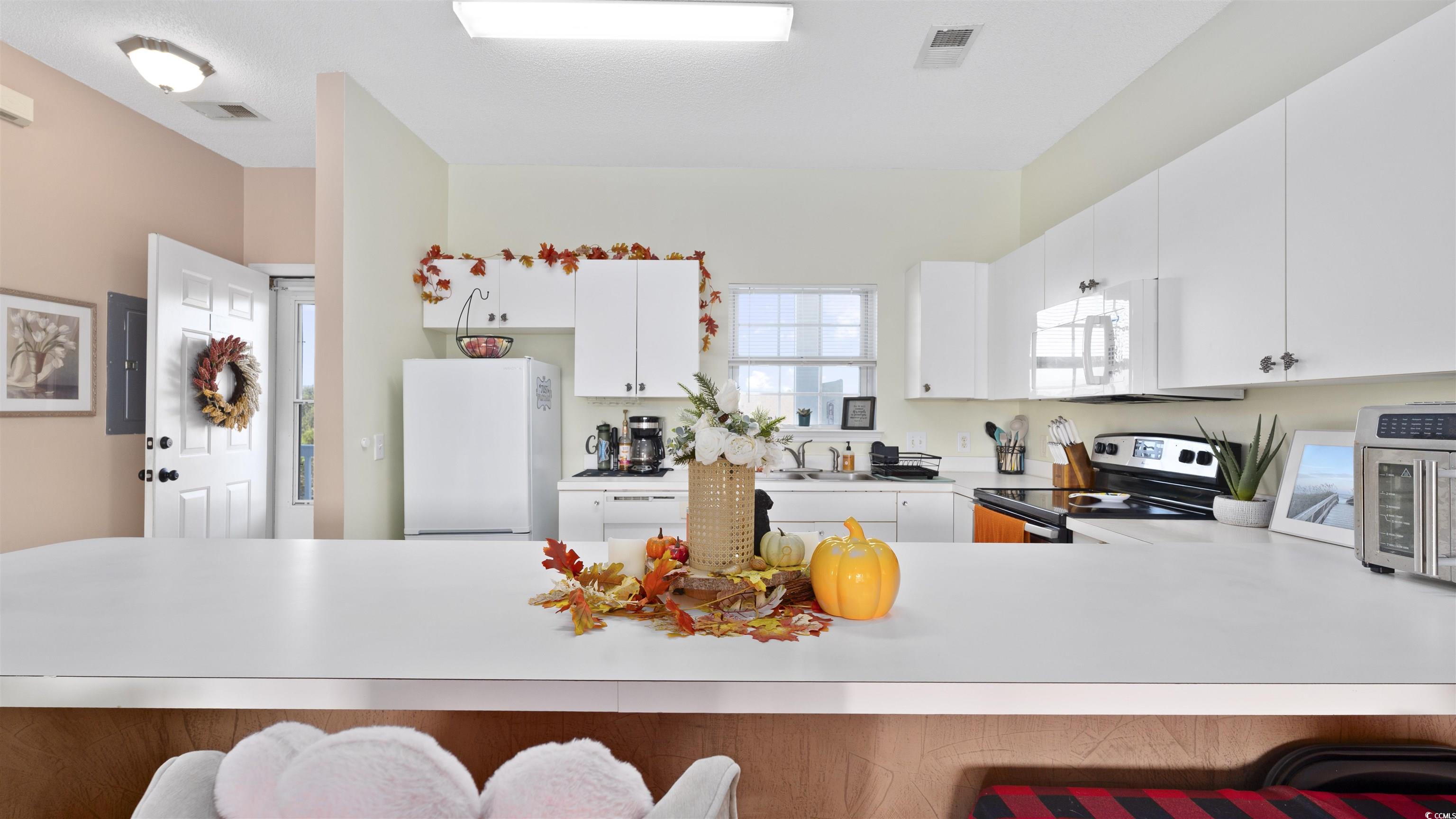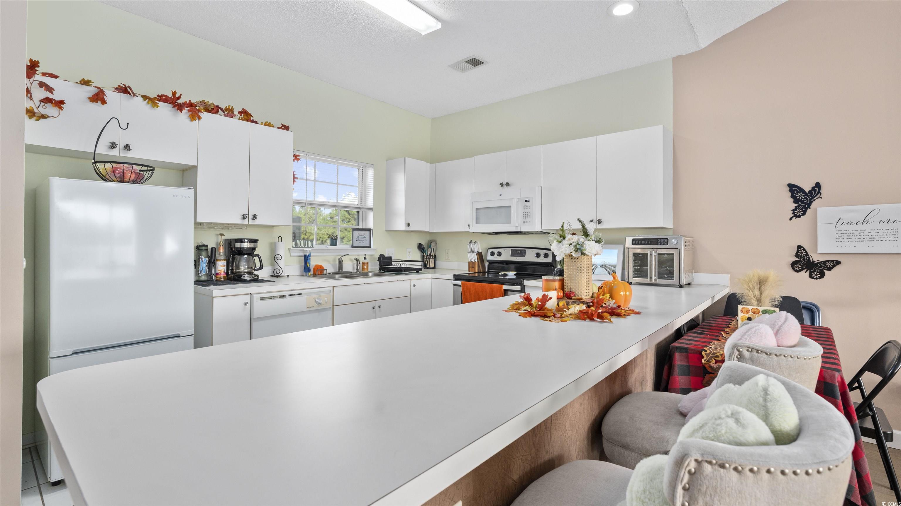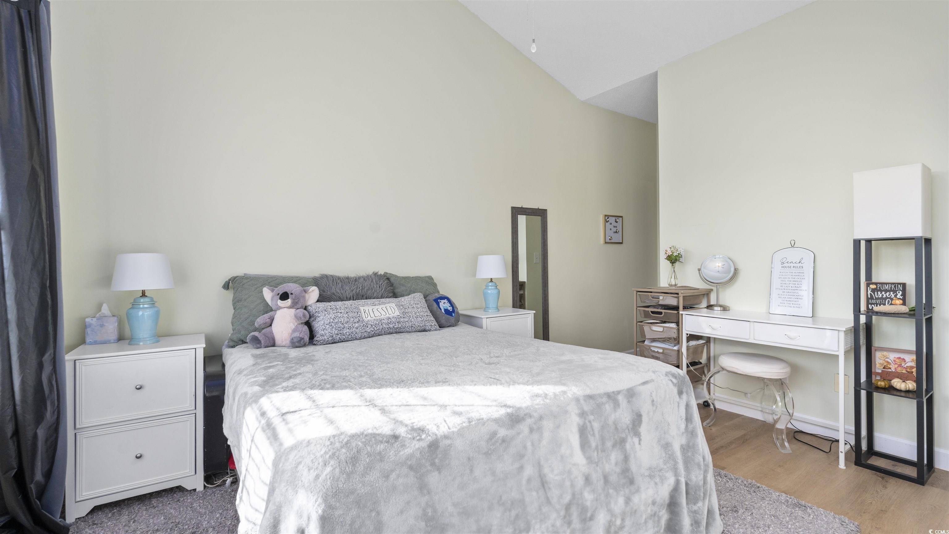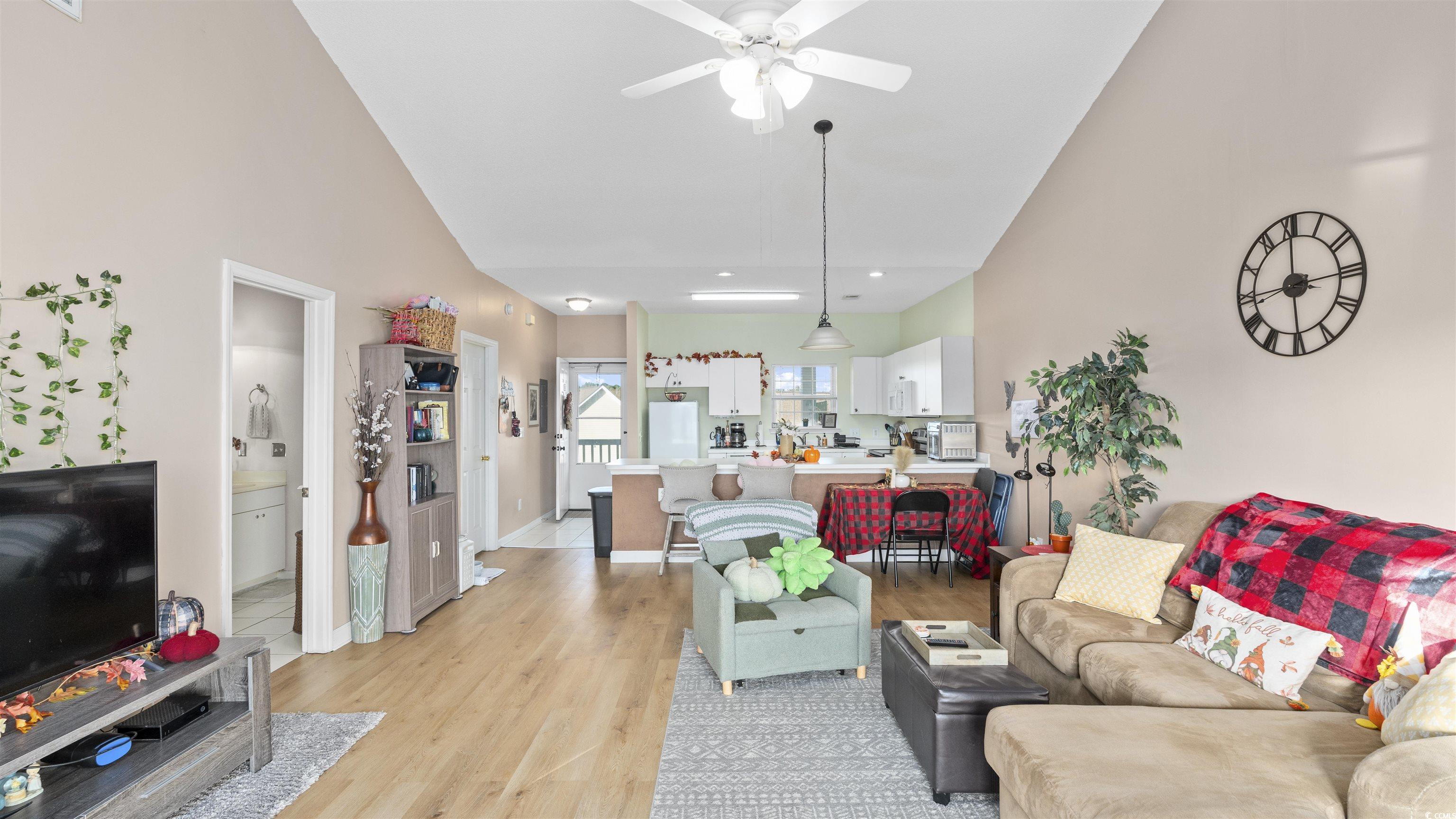 As you step into this third floor condo you will immediately notice the vaulted ceilings that create a spacious yet cozy feeling. Your eyes will immediately be drawn to the window that looks onto a balcony with a beautiful lake view. The nicely appointed kitchen has generous counter space that flows nicely into the living room and is perfect for entertaining. The living room is very spacious and flooded with natural light. The guest bedroom is off of the living room, in the front of the house and has a full bathroom attached to it with an in-unit washer and dryer. The Master bedroom is in the back of the house offering privacy and quiet from the rest of the house. The master bedroom also has vaulted ceilings, a generous sized closet and its own bathroom. This condo has newly replaced flooring and has recently been painted. This condo is in a great location close to good food, shopping and the beautiful beaches of the Grand Strand! Book your showing today.