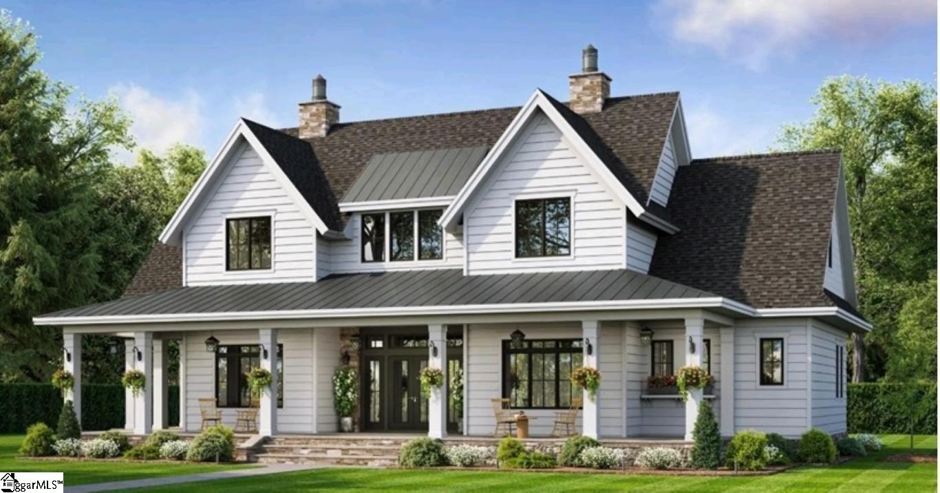 Come build your custom stunning Modern Farmhouse on a private 1-acre homesite in sought-after Greer—where timeless design meets everyday functionality. Built by local custom builder, this thoughtfully designed 4BR/4.5BA home (approx. 2,814 sq ft) offers elevated finishes, flexible living spaces, and exceptional indoor-outdoor living. A grand wraparound front porch with stately columns and multiple seating areas creates a true first impression. Step through double French doors into a bright, open interior featuring an impressive 11’6” step ceiling in the great room, anchored by a cozy fireplace and framed by expansive rear sliding doors that flood the home with natural light. The open-concept layout flows seamlessly into a chef-inspired kitchen complete with a large center island (seating for 4), abundant cabinetry, and an oversized walk-in pantry. The adjacent dining area is perfectly positioned for gatherings, while direct access to the rear porch enhances everyday living and entertaining. The main-level primary suite is a private retreat featuring direct porch access, a spa-like bath with dual vanities, soaking tub, and separate shower, plus a spacious walk-in closet with convenient laundry connection—a highly desirable layout feature. Additional main floor highlights include a dedicated office, mudroom and walk-in storage, and a functional connection to the 3-car garage—complete with pool bath access. Upstairs, three generously sized bedrooms offer custom details and ample closet space. A central loft provides flexible living—perfect as a media room, playroom, or secondary living area. Future expansion potential includes an additional room and unfinished storage space to fit your needs. Enjoy year-round outdoor living with expansive covered front and rear porches overlooking your private backyard oasis—complete with an inground pool and fence included. Situated on a rare 1-acre homesite, this property offers space, privacy, and the opportunity to personalize selections with a trusted local builder known for quality craftsmanship. Truly a standout opportunity to own a custom home with timeless appeal, functional design, and exceptional lifestyle features.