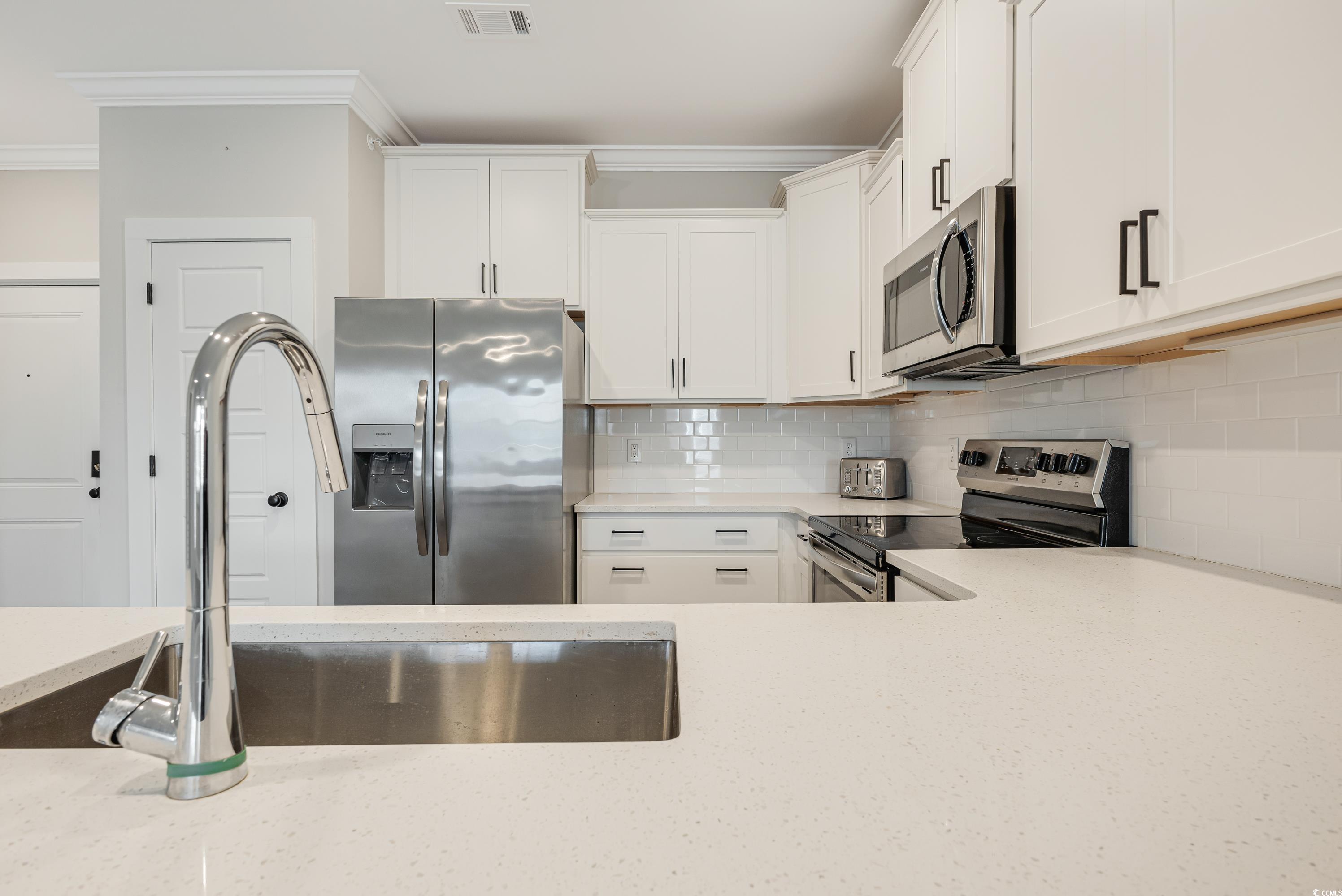 Welcome to your place at the beach!! This "Super 2" unit is in great condition and is ready for new owners. Enjoy top-floor living with tranquil pond and fountain views in this beautifully maintained condo located in the sought-after golf course community of Crow Creek! This 2-bedroom, 2-bath unit also features a flexible third space—perfect for a home office, den, or guest room. Inside, you'll love the stylish quartz countertops, stainless steel appliances, plenty of of staggered kitchen cabinetry, LVP flooring in the main areas, and cozy carpeted bedrooms. The full-size laundry room includes a washer and dryer for added convenience. Relax on the screened porch with serene water views, or take advantage of the community’s first-class amenities. An elevator provides easy access, and the location puts you just minutes from the stunning beaches of North Carolina and all the dining, shopping, and golf the Grand Strand has to offer! Location is across from the wonderful amenity center with a huge workout room and indoor and outdoor pools. The condos also have another amenity center with a fantastic party/gathering space.